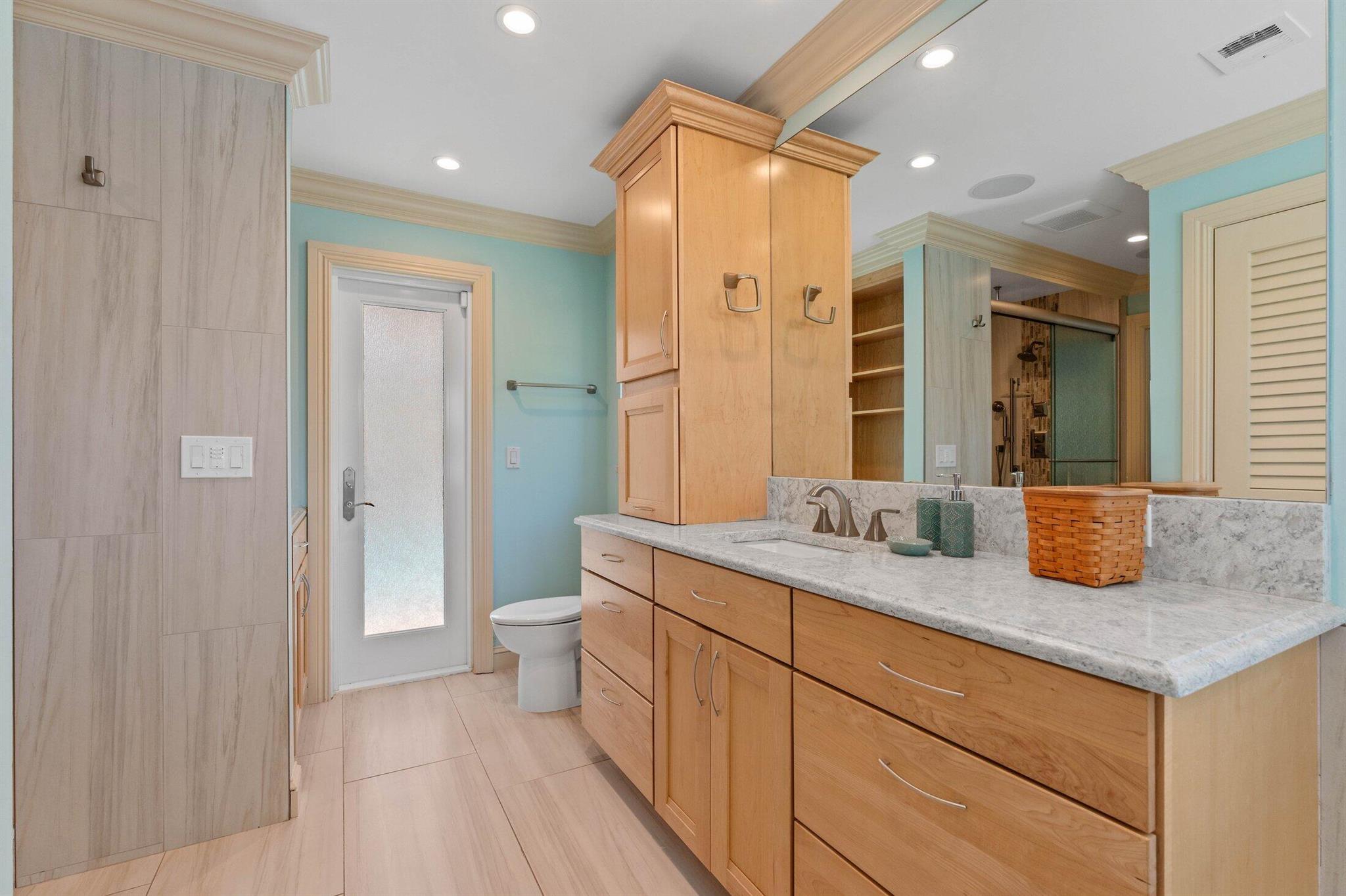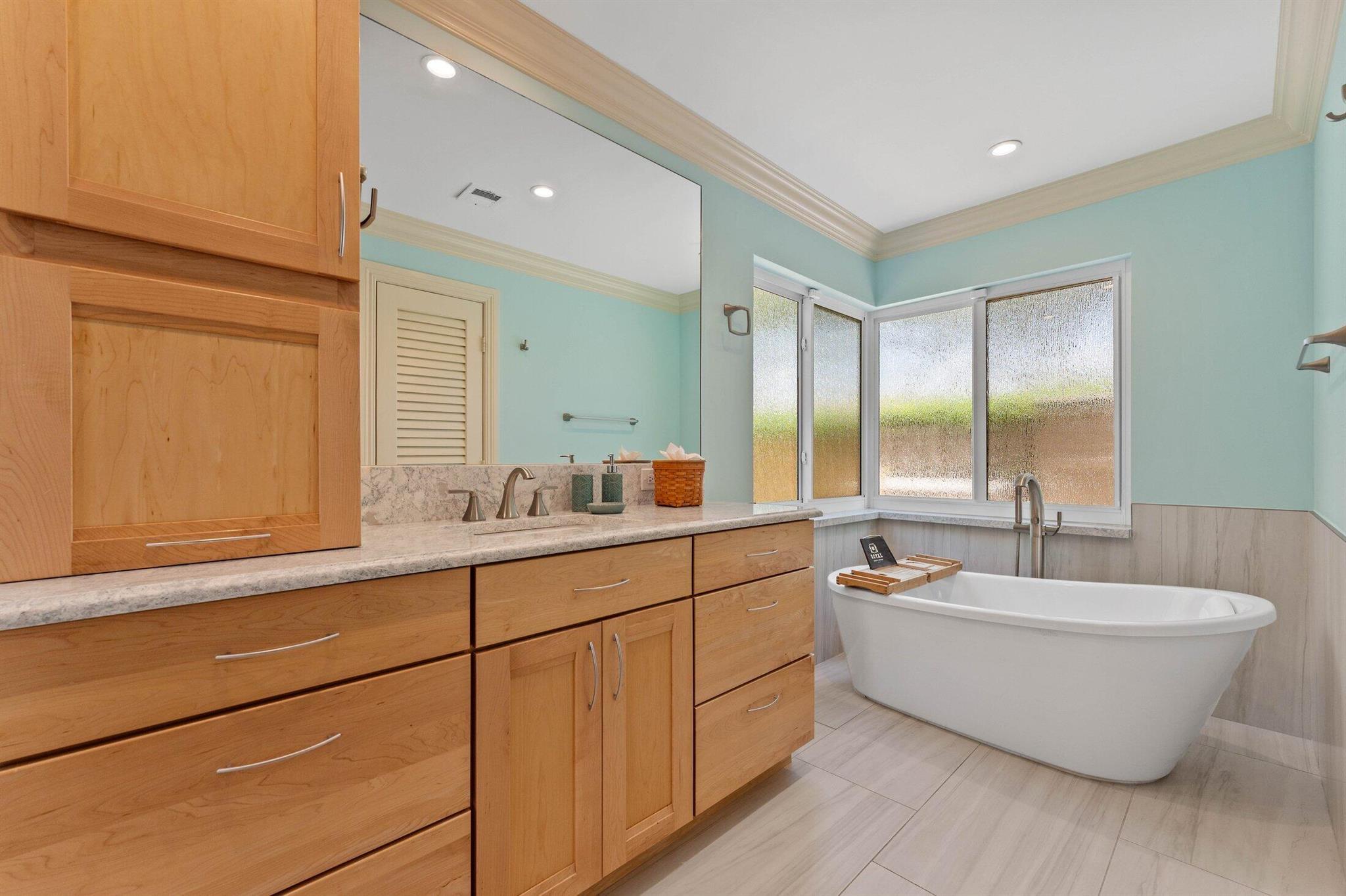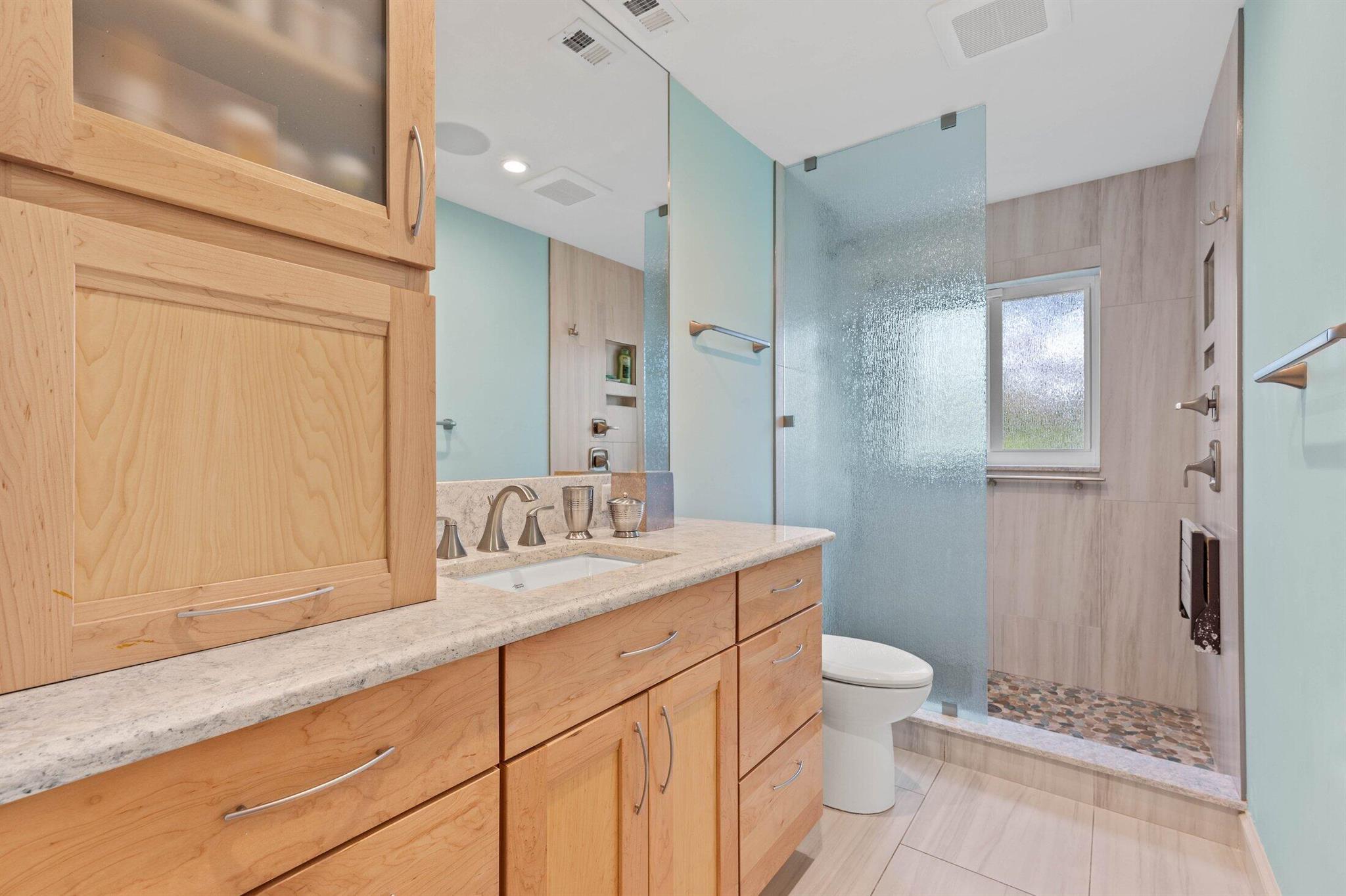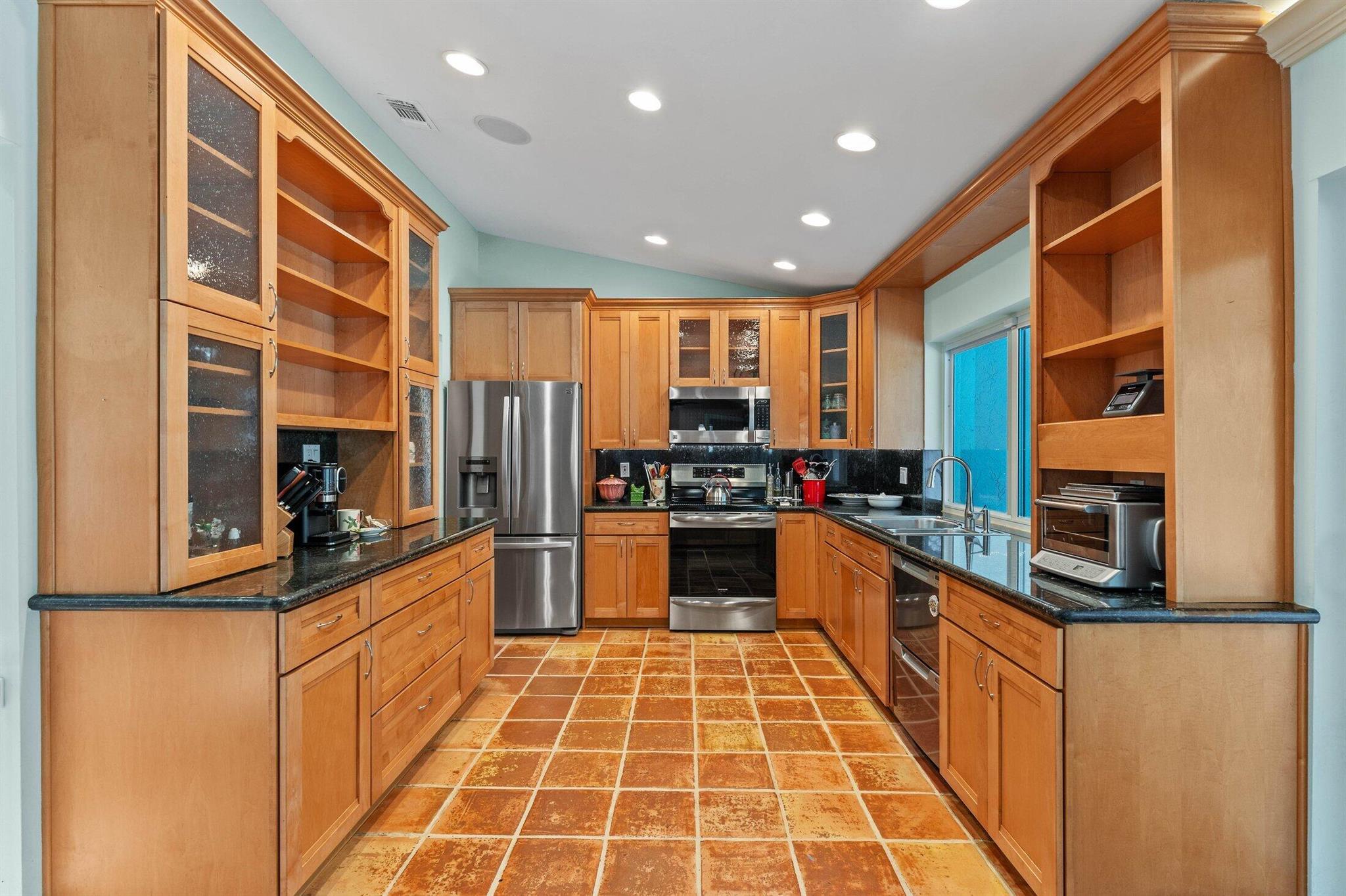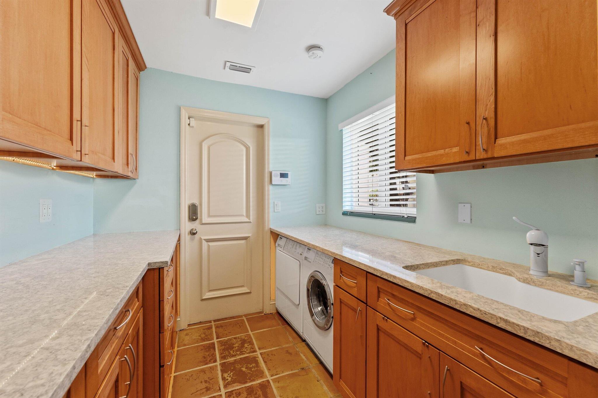 Welcome to your dream home nestled in the picturesque neighborhood of Lakewood Oaks in Boca Raton! This charming single-family residence boasts four spacious bedrooms and two beautifully renovated bathrooms, a family room, separate living room and dining room with skylights, a large kitchen with Pantry and laundry room.Step inside through the front wrought iron entry and open garden into the foyer. You will discover an open concept home with tall ceilings, beautiful Mexican Tile, and a floor plan that can easily accommodate many different living options. The kitchen gleams with stainless steel appliances, a sink overlooking your pool & yard, plus plenty of cabinets, some with glass fronts, granite countertops and breakfast bar area.