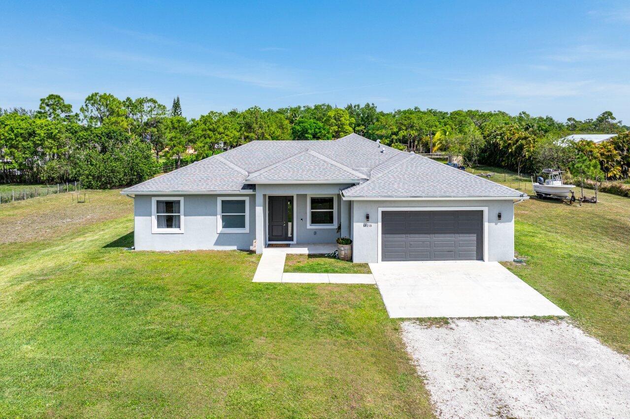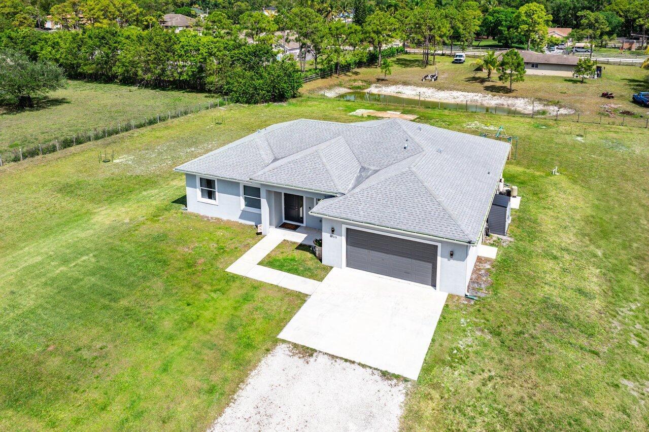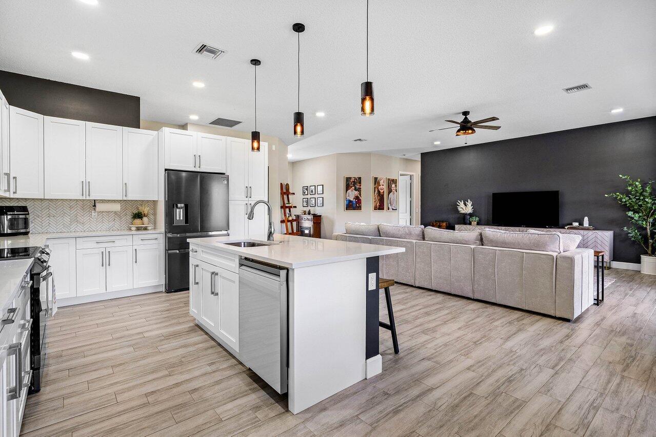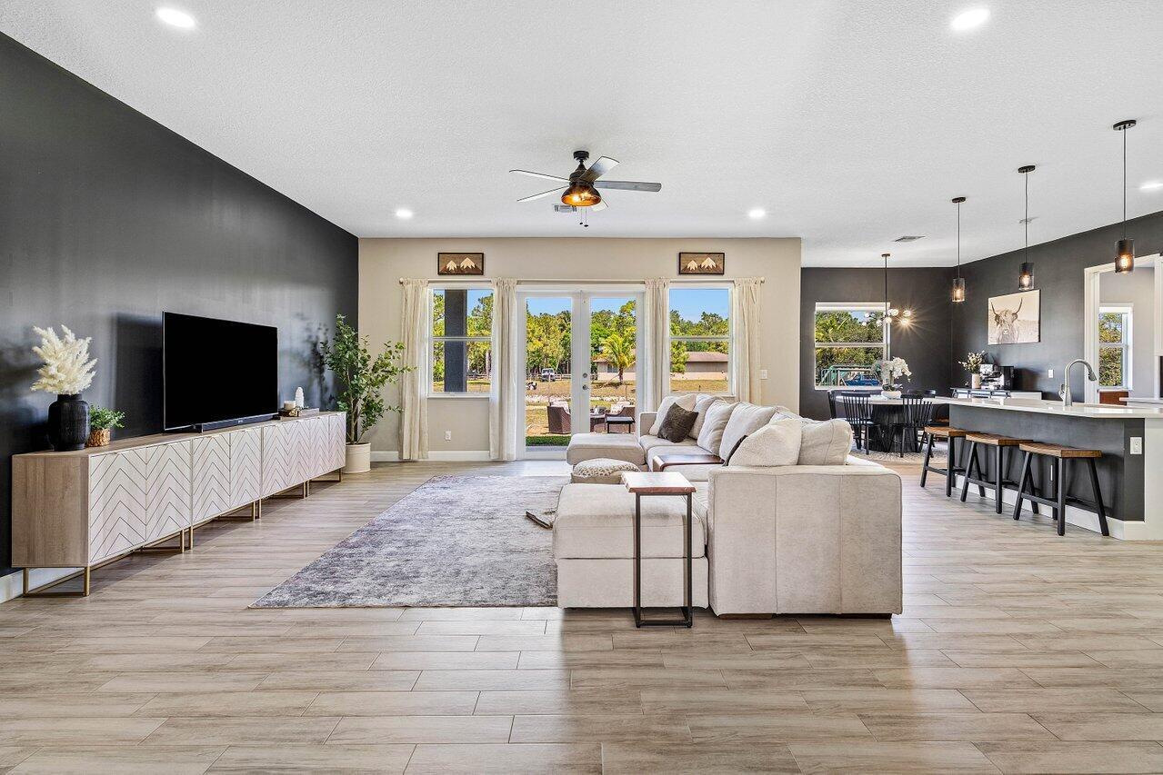 WELCOME HOME This well appointed 2021 built gem is resting on a premium 1.15 acre lot and boasting 4 true bedrooms, PLUS den, 2 full baths, 2 car garage, upgrades galore, hurricane impact windows and doors throughout and this beauty is in a superb location! ENTERING you will discover that this home is on a fully fenced high and dry lot with no pond and a covered entry that brings you inside where you are greeted by a 12' x 6' foyer, volume ceilings, abundance of natural lighting and gorgeous kitchen that features; smart Samsung stainless steel appliance package, white Carrara quartz counter tops, herringbone granite backsplash, spacious island with bar, 42 inch shaker style and soft close cabinetry, pantry and overlooks the abundant green space. PASSING THROUGH you will find (CLICK)