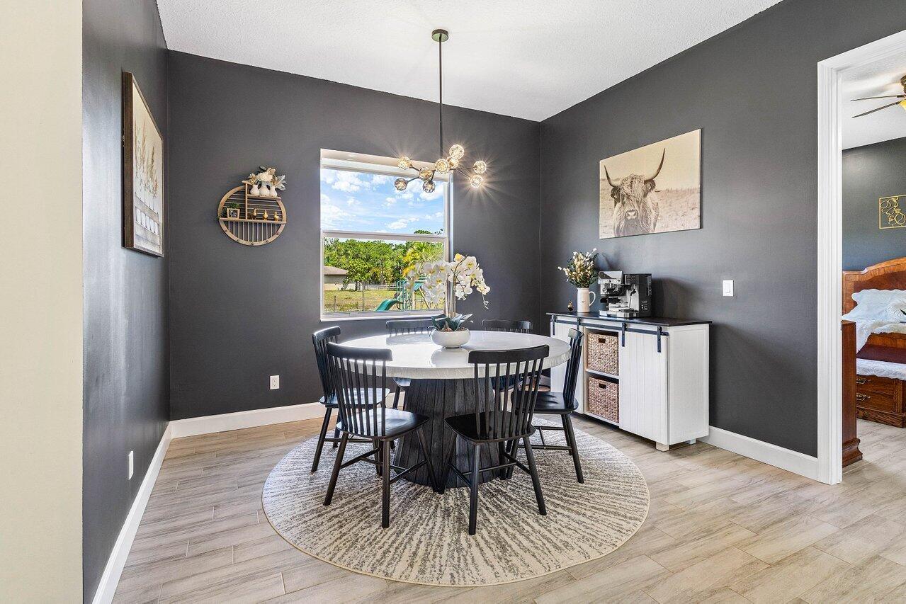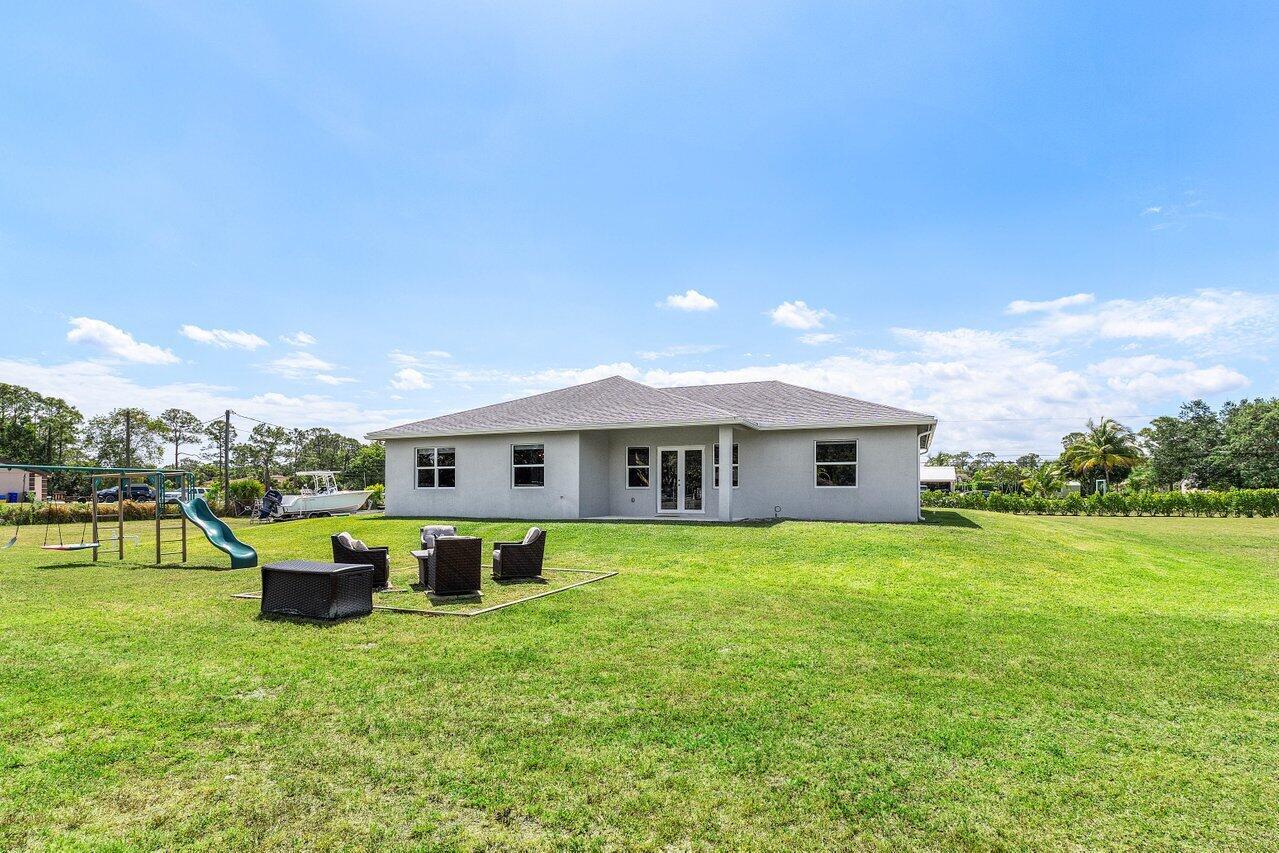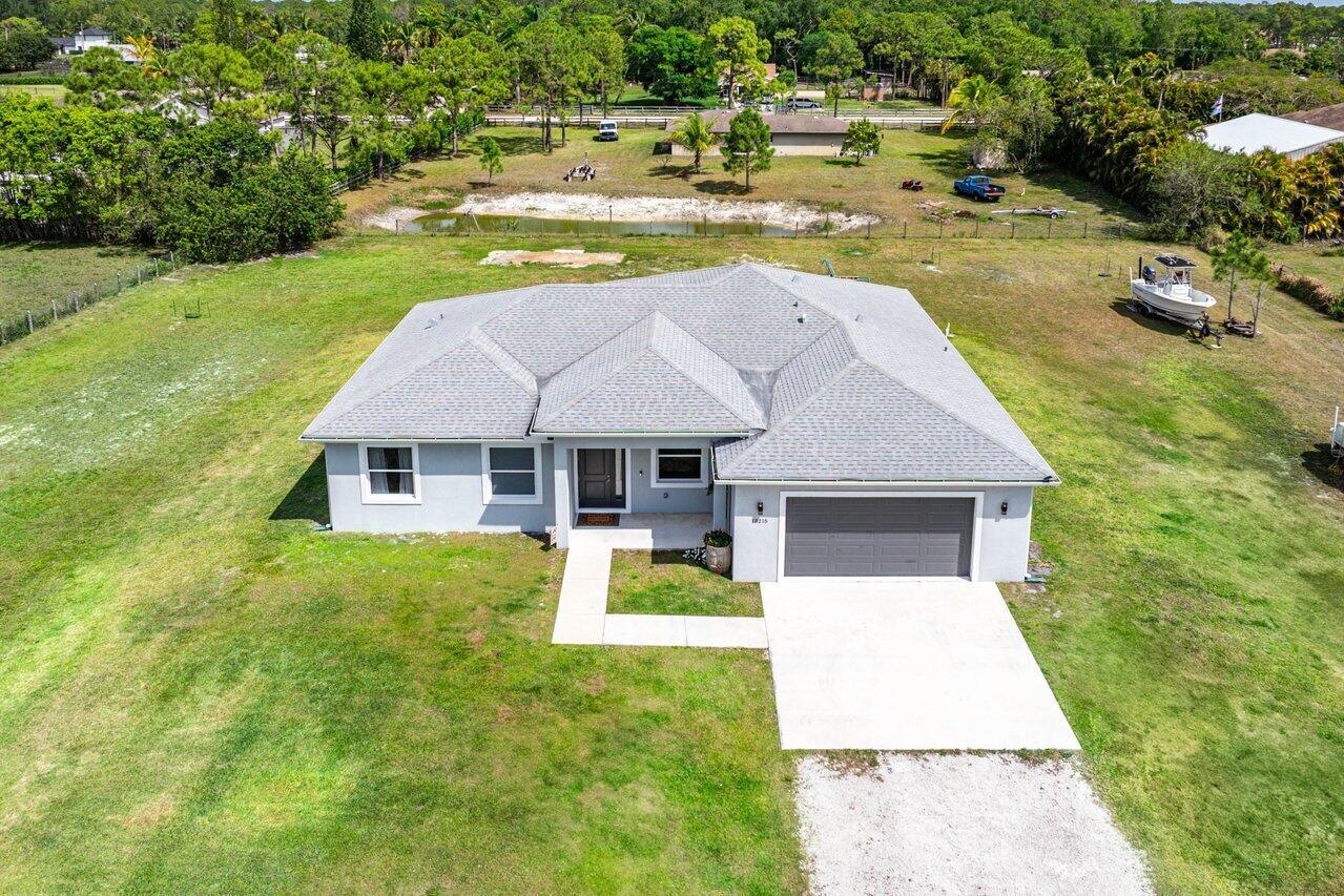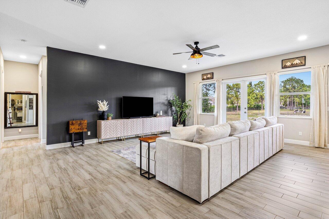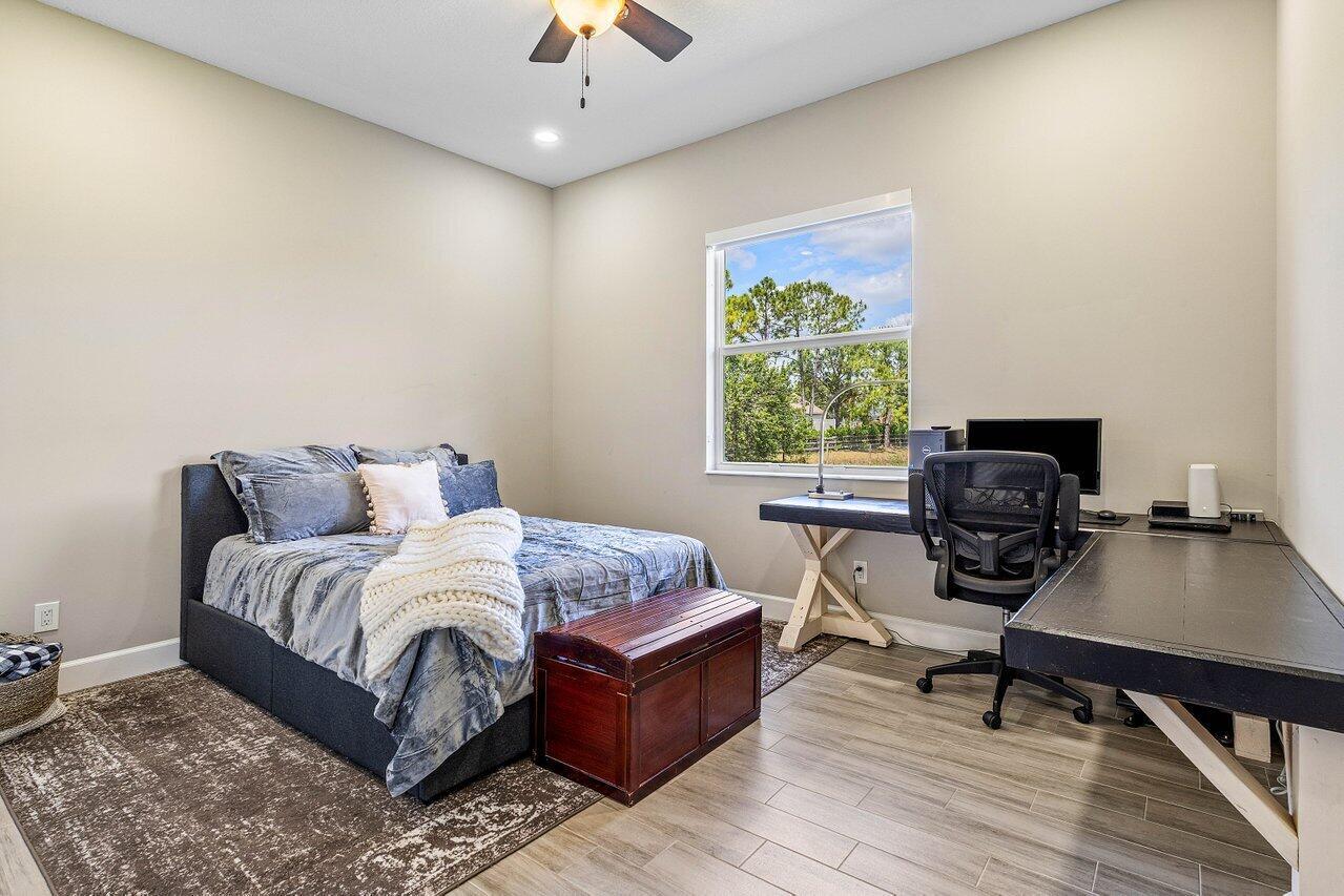 WELCOME HOME This well appointed 2021 built gem is resting on a premium 1.15 acre lot and boasting 4 true bedrooms, PLUS den, 2 full baths, 2 car garage, upgrades galore, hurricane impact windows and doors throughout and this beauty is in a superb location! ENTERING you will discover that this home is on a fully fenced high and dry lot with no pond and a covered entry that brings you inside where you are greeted by a 12' x 6' foyer, volume ceilings, abundance of natural lighting and gorgeous kitchen that features; smart Samsung stainless steel appliance package, white Carrara quartz counter tops, herringbone granite backsplash, spacious island with bar, 42 inch shaker style and soft close cabinetry, pantry and overlooks the abundant green space. PASSING THROUGH you will find (CLICK)