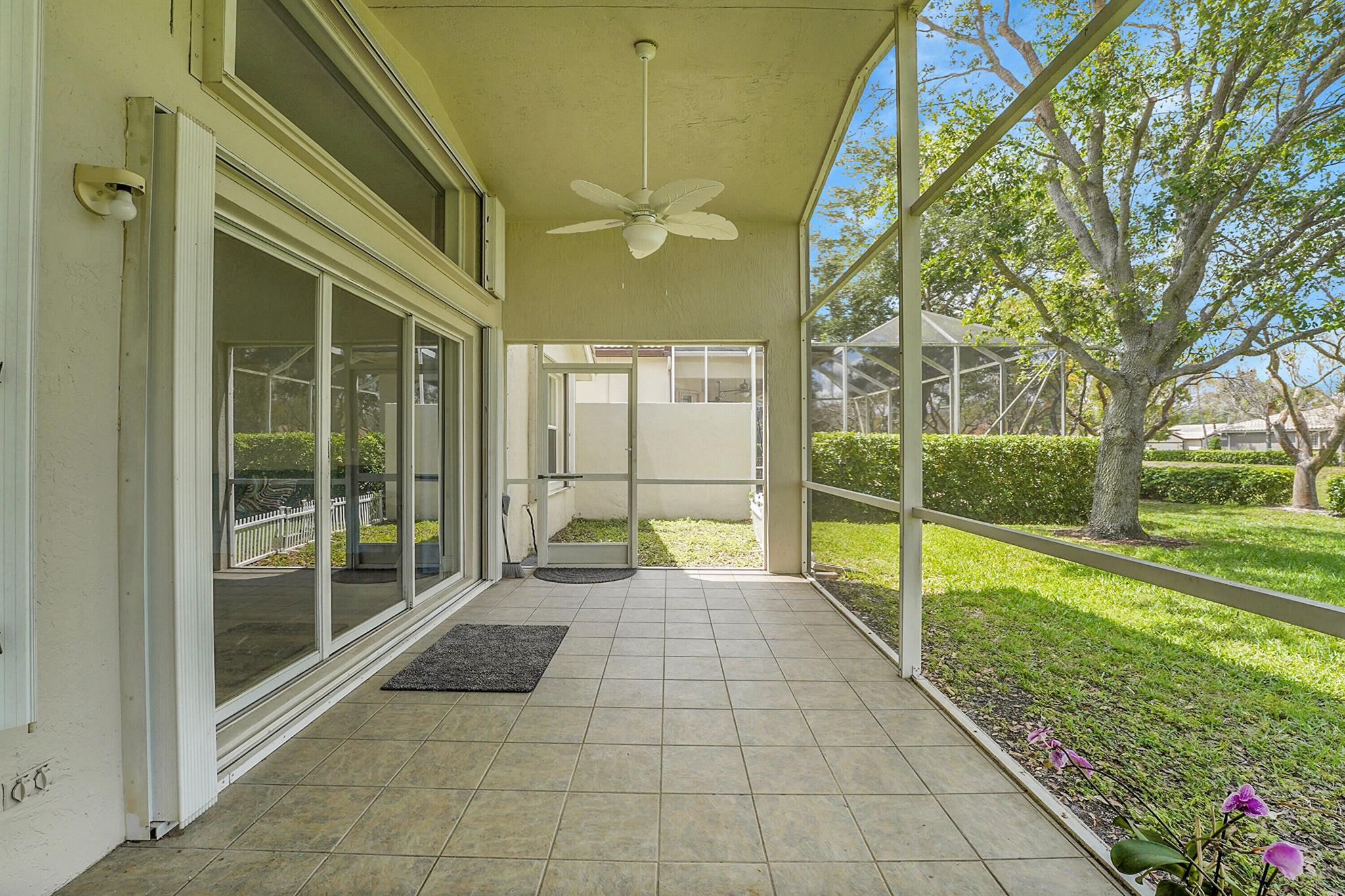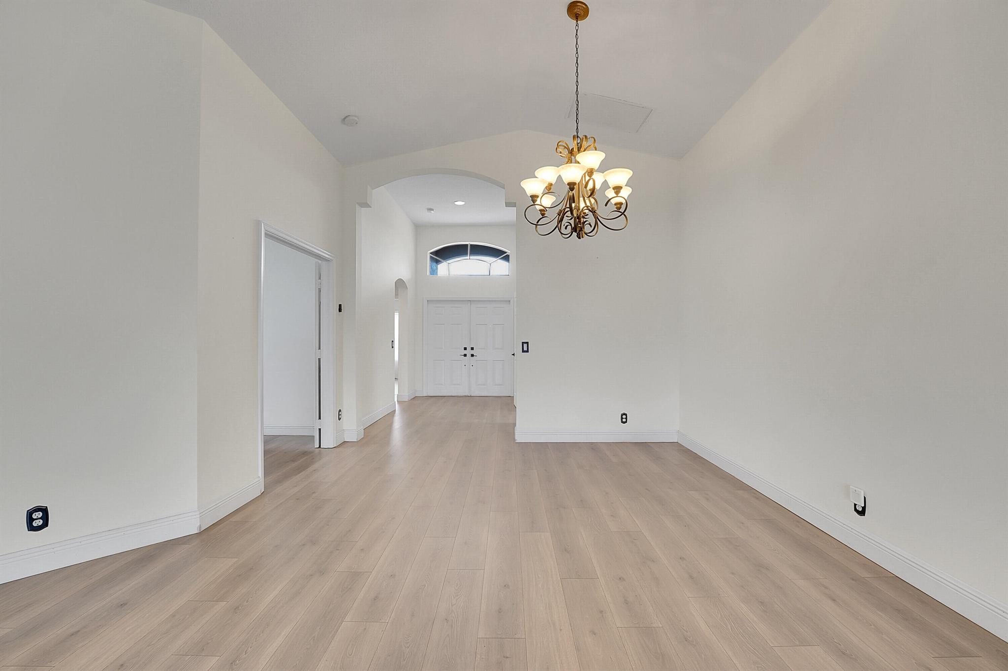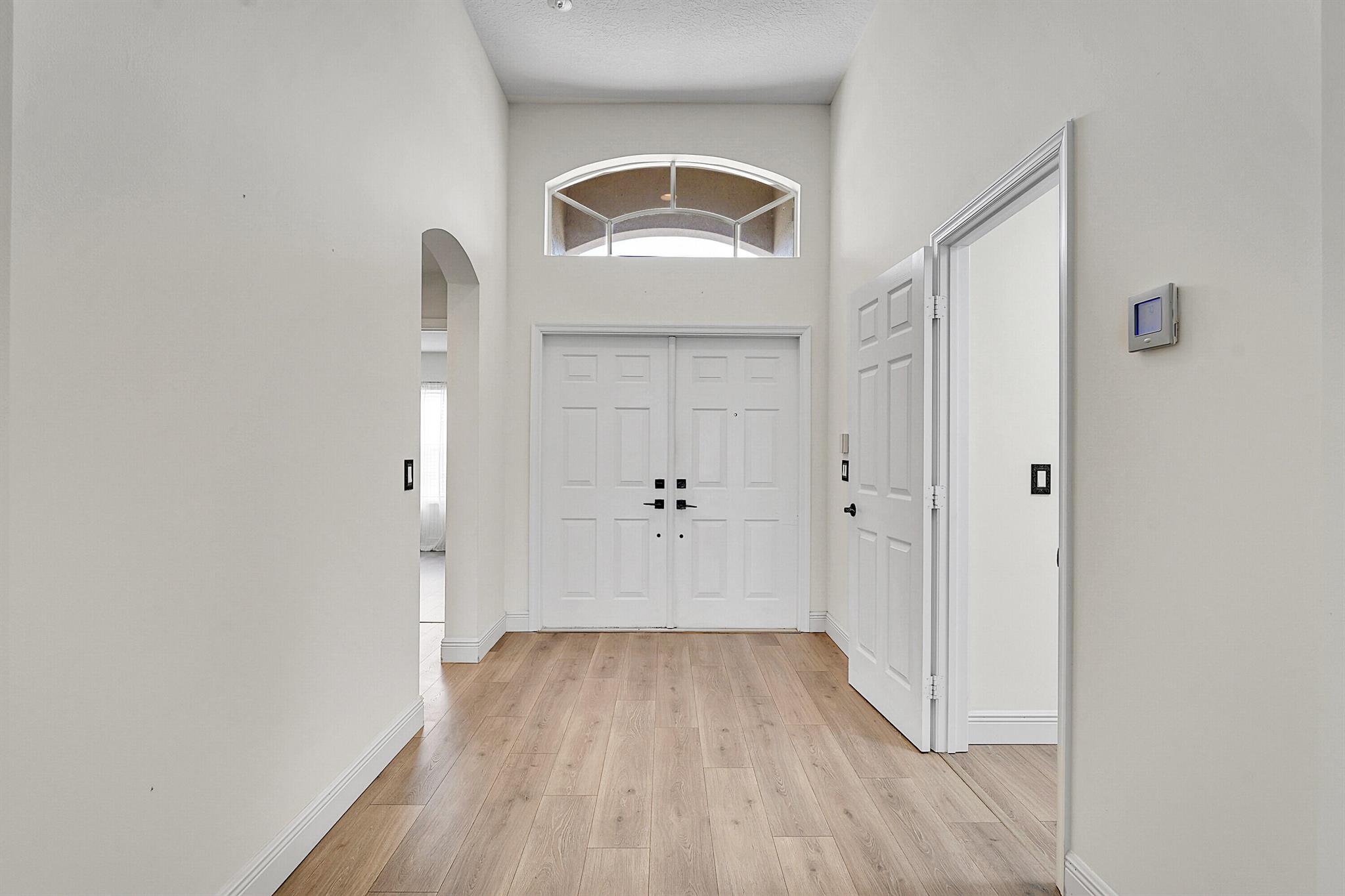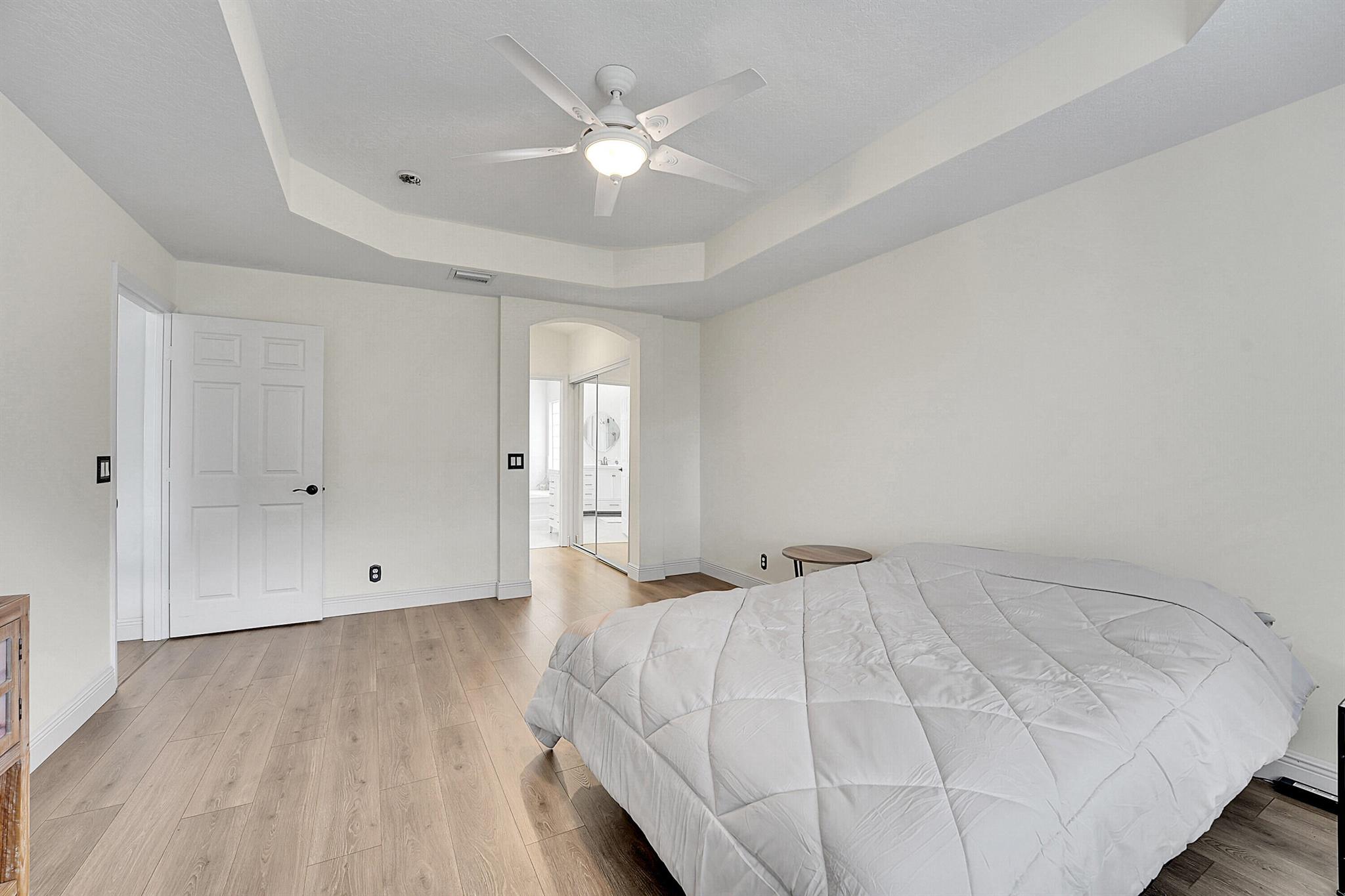 Beautifully upgraded 3BR/2BA - Ferrera model offers a spacious open-concept design enhanced by vaulted cathedral ceilings, creating a dramatic flow and stunning views of the tree-lined, private backyard. The kitchen features crisp white cabinetry, granite countertops, stainless steel appliances, and modern fixtures. New grey-toned wood-style laminate flooring runs throughout the main living areas and bedrooms, accented by upgraded extended base moldings. The owner's suite includes a tray ceiling, two walk-in closets (one with a custom California-style organizer), and a recently renovated en-suite bath with an oversized step-in shower and dual vanities. Relax and unwind on the covered and screened patio, which spans the back of the home and offers peaceful views of the lush private yard.