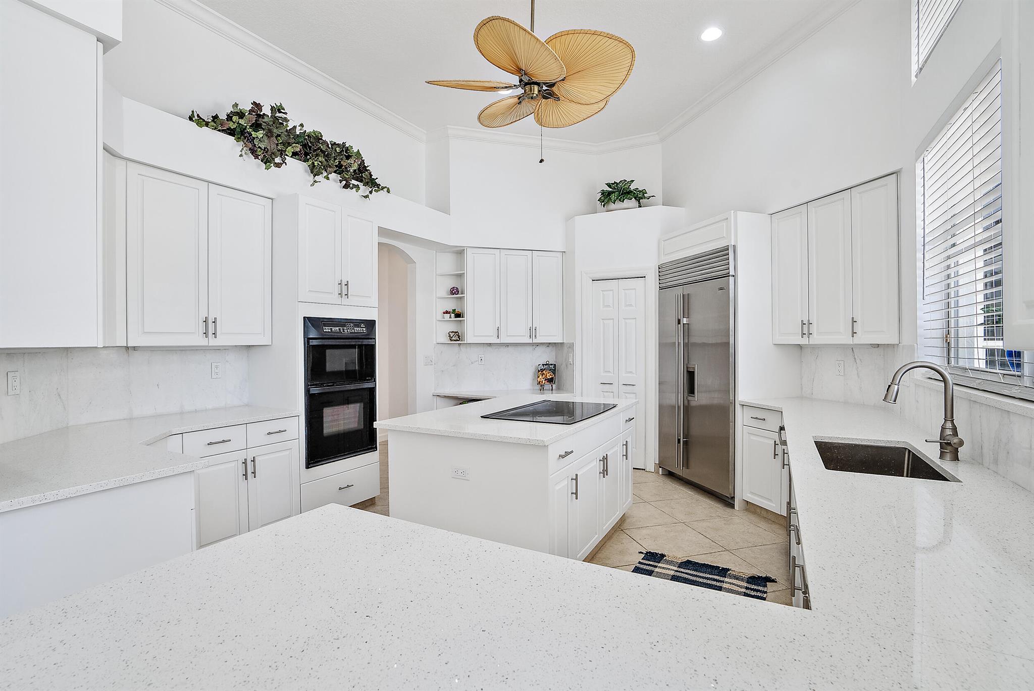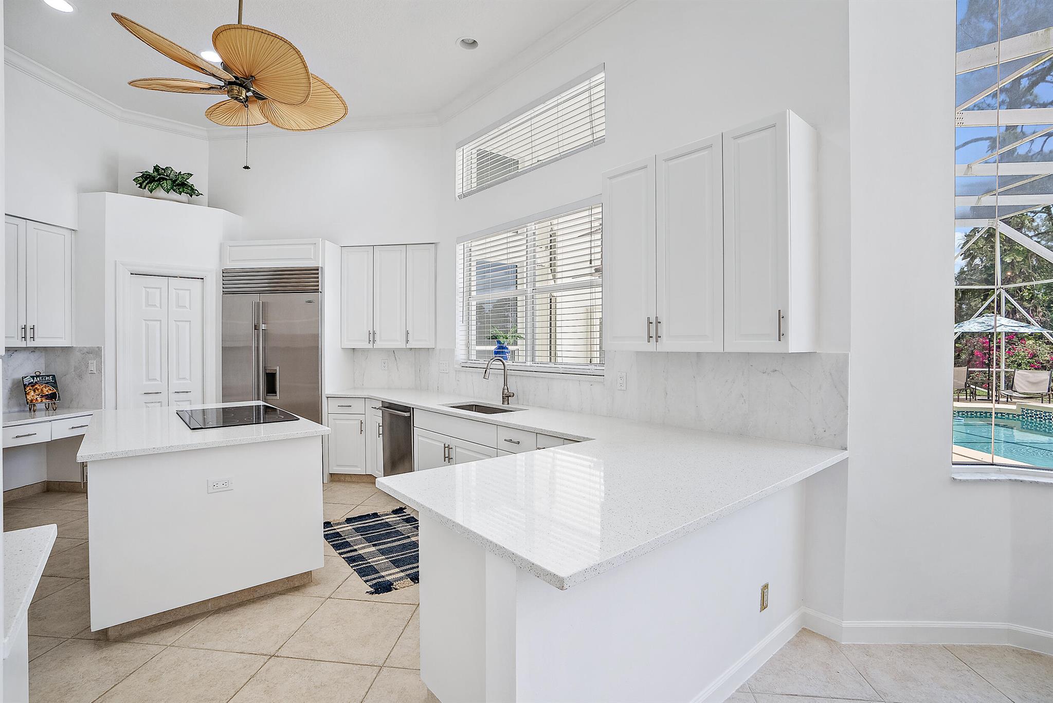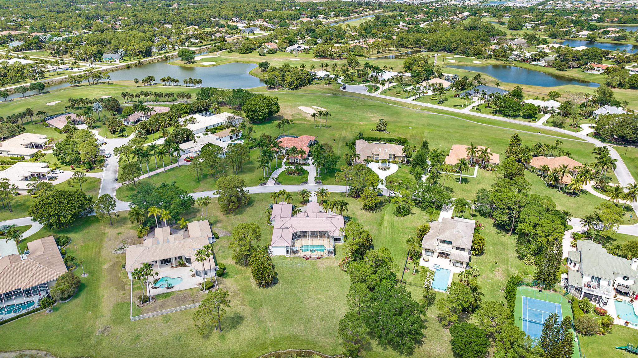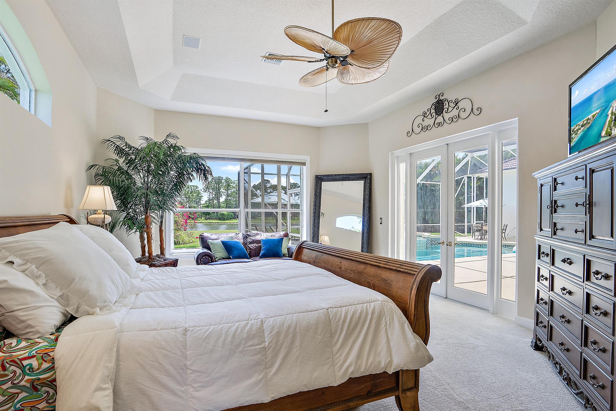 Welcome to your own 1.05 ACRE ESTATE located in the sought-after Bay Hill Estates neighborhood of Palm Beach Gardens. From the moment you approach the magnificent property, you'll be wowed by the dramatic circular driveway and regal Porte Cochere entry, flanked by lion statues. Perfect for entertaining and casual living, the open floor plan has expansive views of the lake from most of the windows in the home. Soaring 18-foot ceilings in the living room provide major architectural drama, while the outdoor pool and open patio draws one's eye outside to the tropically landscaped property. Enjoy immense privacy as you're secluded from neighbors. Three full bedrooms, including a spacious 15ft x 24ft Primary Bedroom, plus a convertible bedroom/den/office. Both secondary bedrooms are en suite.