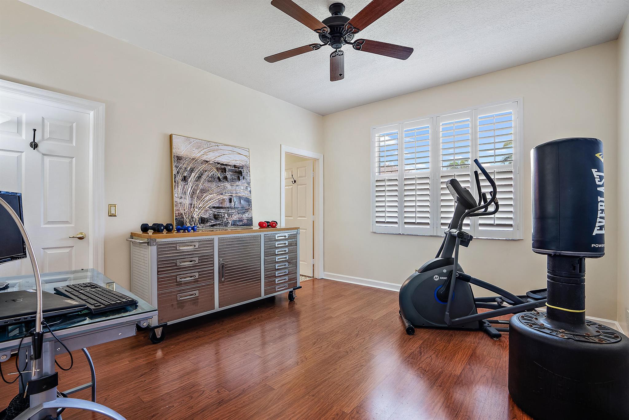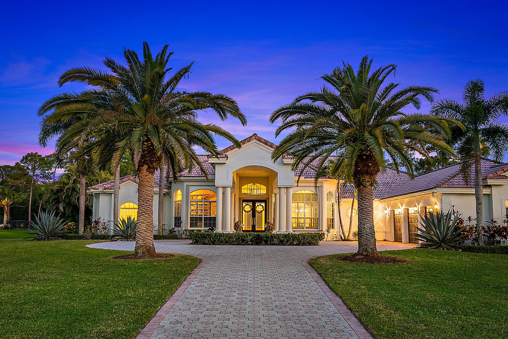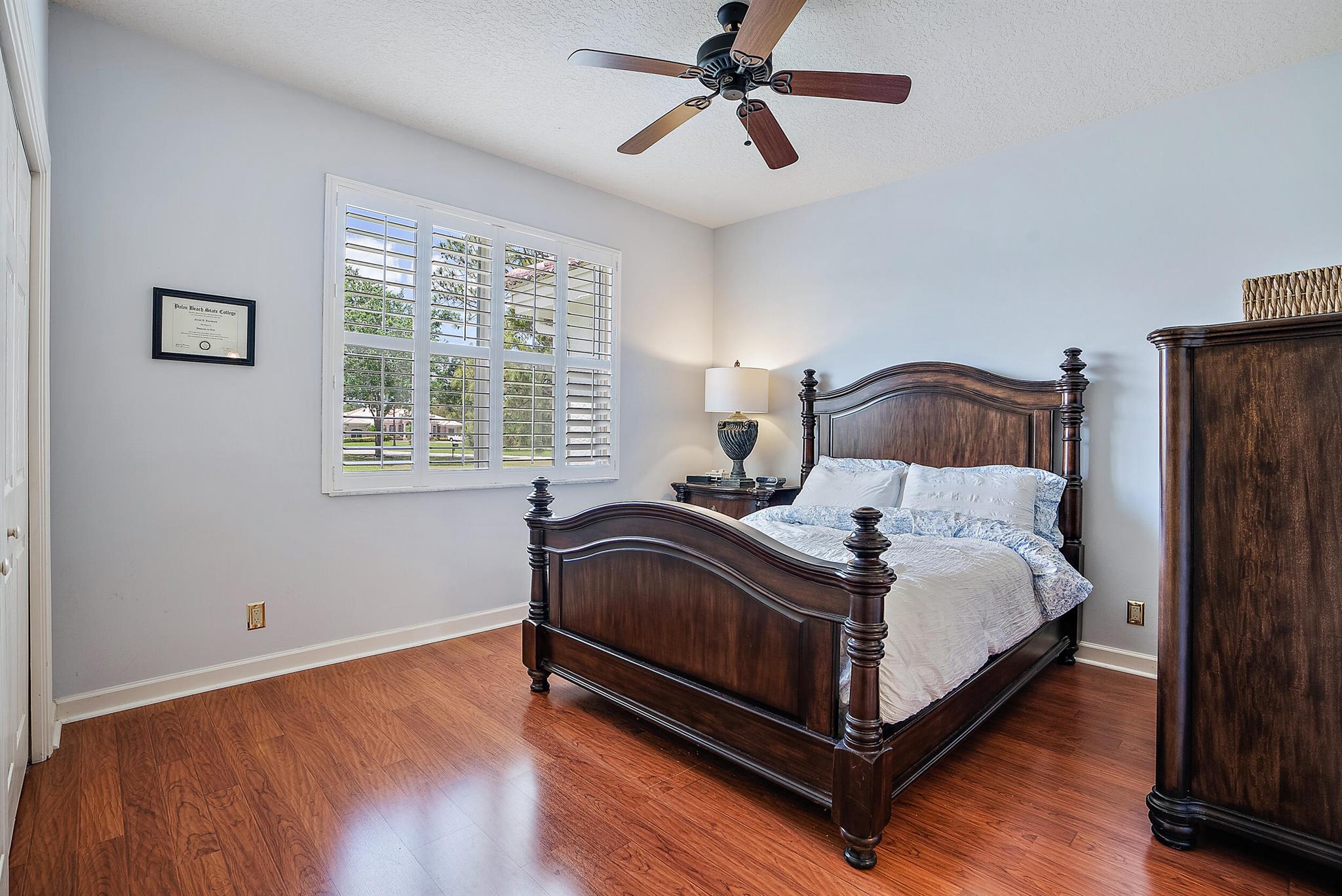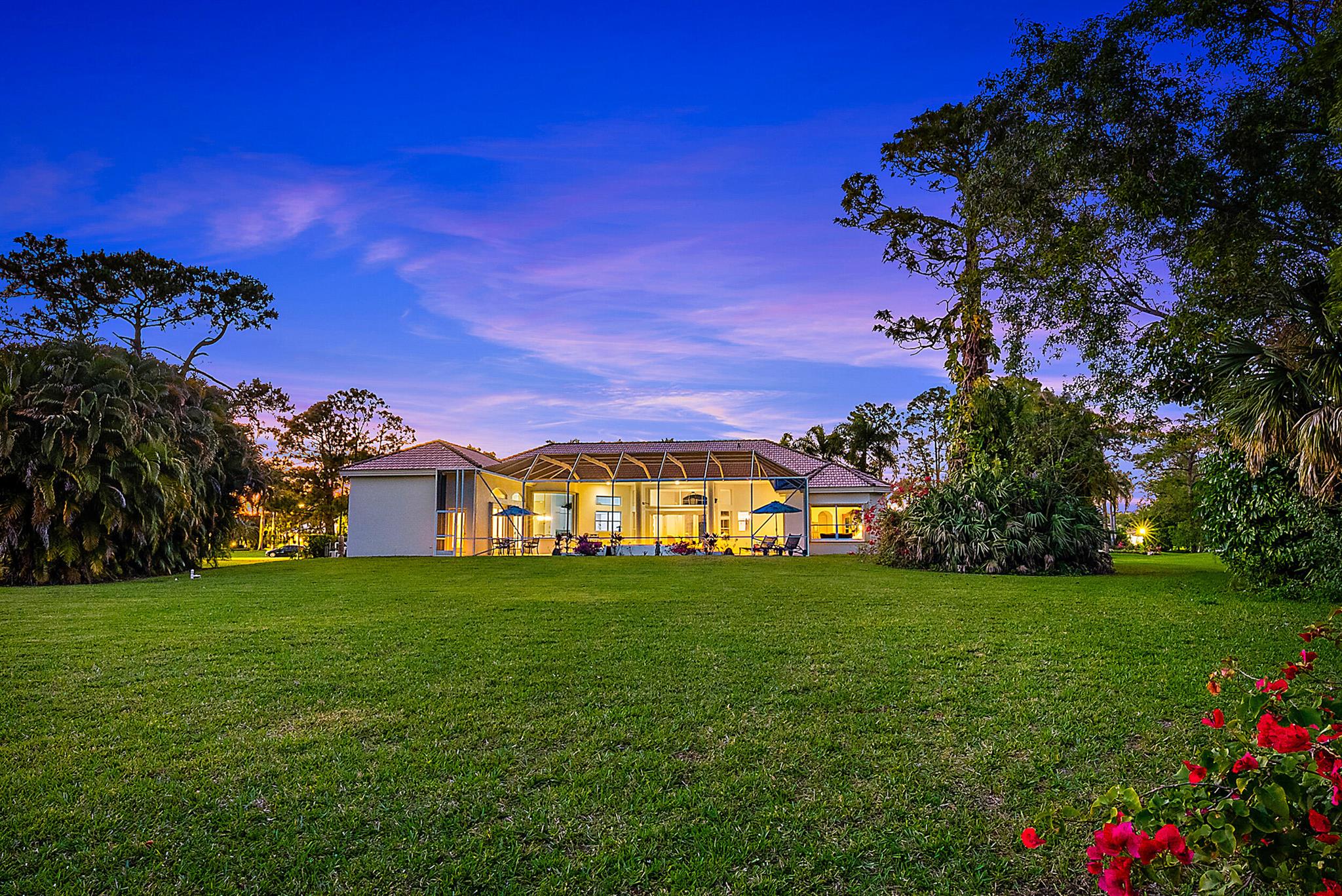 Welcome to your own 1.05 ACRE ESTATE located in the sought-after Bay Hill Estates neighborhood of Palm Beach Gardens. From the moment you approach the magnificent property, you'll be wowed by the dramatic circular driveway and regal Porte Cochere entry, flanked by lion statues. Perfect for entertaining and casual living, the open floor plan has expansive views of the lake from most of the windows in the home. Soaring 18-foot ceilings in the living room provide major architectural drama, while the outdoor pool and open patio draws one's eye outside to the tropically landscaped property. Enjoy immense privacy as you're secluded from neighbors. Three full bedrooms, including a spacious 15ft x 24ft Primary Bedroom, plus a convertible bedroom/den/office. Both secondary bedrooms are en suite.