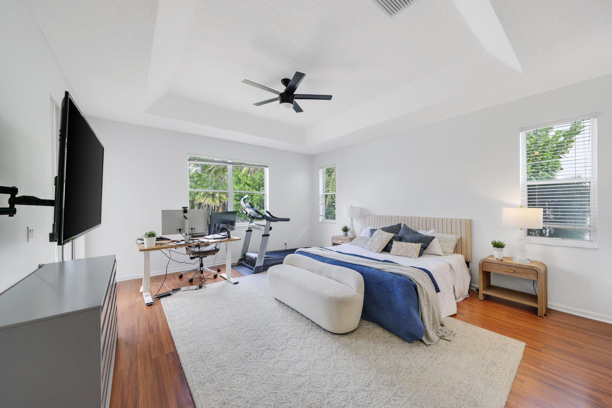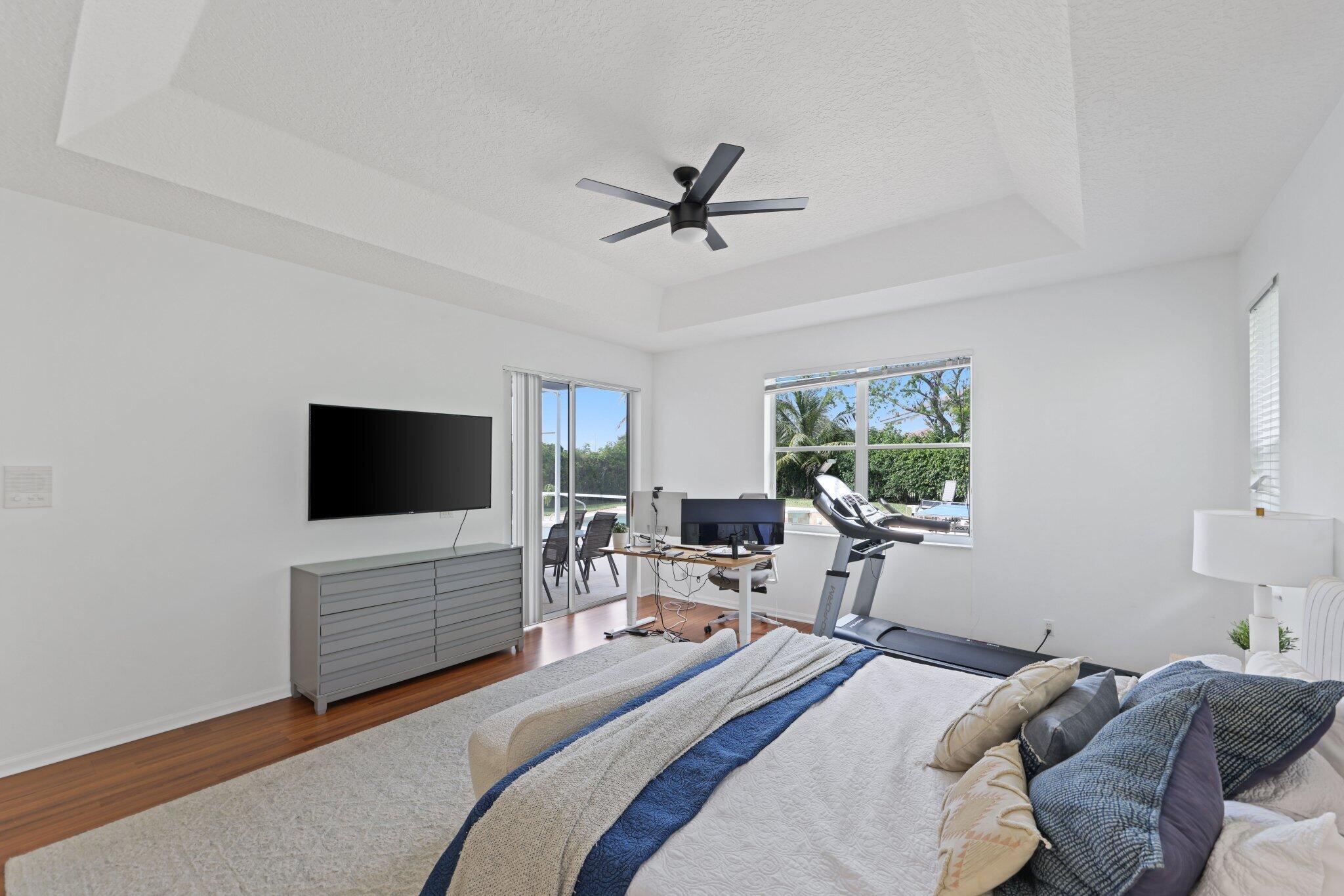 Welcome to this beautiful home located in the highly sought-after Boca Falls community, where luxury meets convenience. BRAND NEW ROOF. Situated in a safe and peaceful cul-de-sac, this property is nestled on a spacious lot, offering the trifecta of outdoor living: a screened-in patio, expansive pool deck with a pool, and a generous backyard perfect for entertaining family and friends.As you step inside, you'll be greeted by a light-filled, open floor plan with soaring high ceilings and an abundance of natural light. The split floor plan provides both privacy and functionality, with dual living and family rooms, as well as a formal dining area - ideal for hosting gatherings or quiet evenings at home.