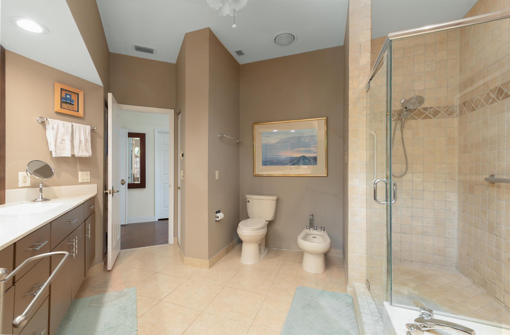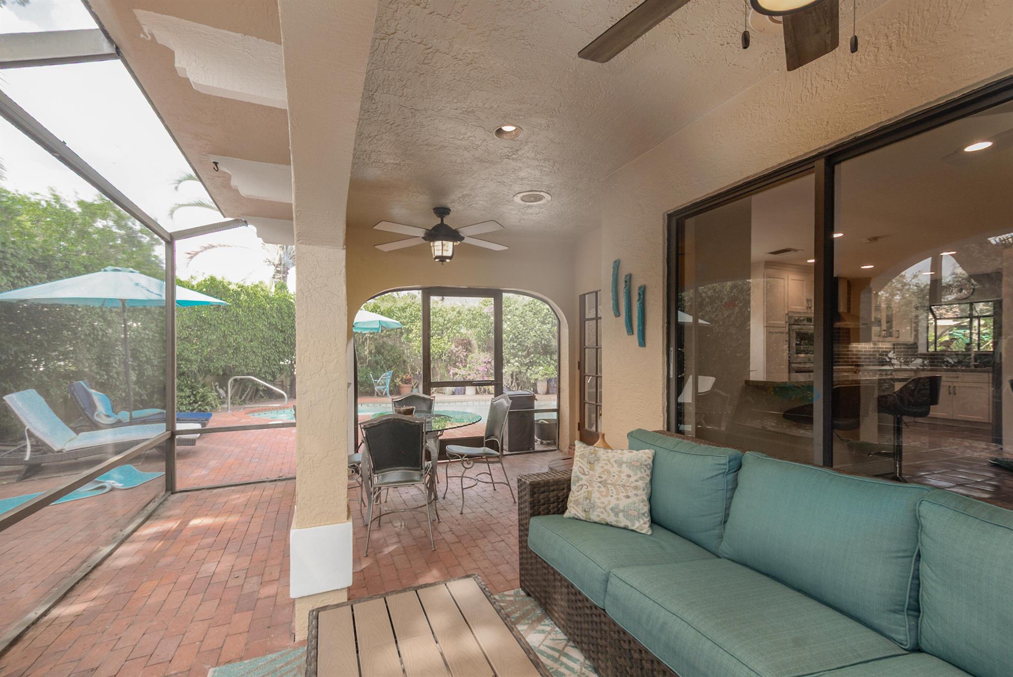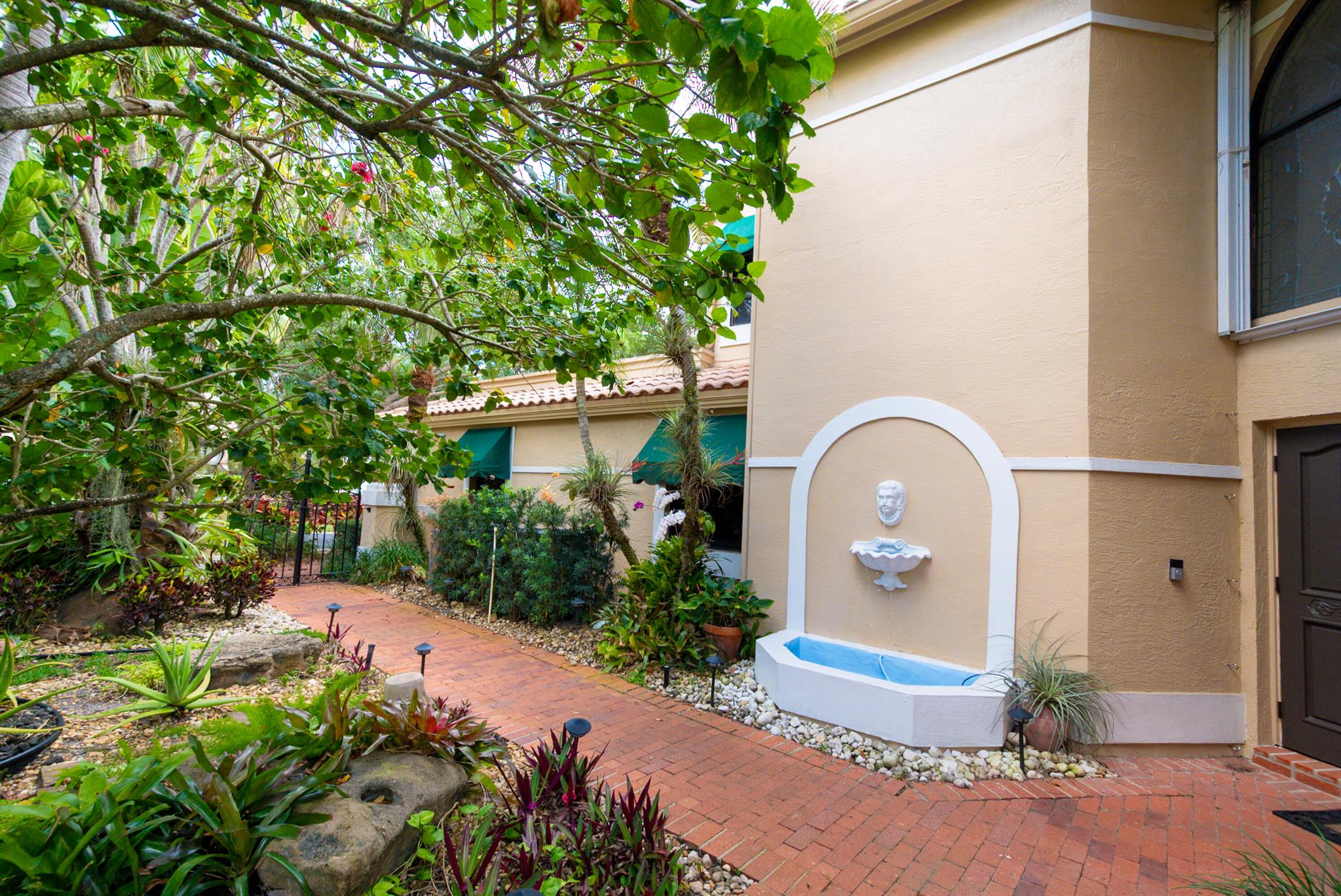 Tucked behind lush landscaping in a private gated setting, this elegant residence offers spacious living with timeless charm. Enjoy a gourmet kitchen with quartzite counters, double ovens, and cooktop, opening to airy indoor-outdoor living spaces. The serene master suite features Italian imported engeneered wood floors, dual walk-in closets, and a spa-like bath, separate shower, and bidet. Outdoors, relax by your tropical private pool, surrounded by colorful gardens and covered patios. The 3rd bedroom is used as TV lounge. The house is hurricane protected, the A/Cs are 2022 & 23. Community pool, clubhouse, and walkable location complete the picture! Caravelle is always a most desirable Boca Pointe subdivision.