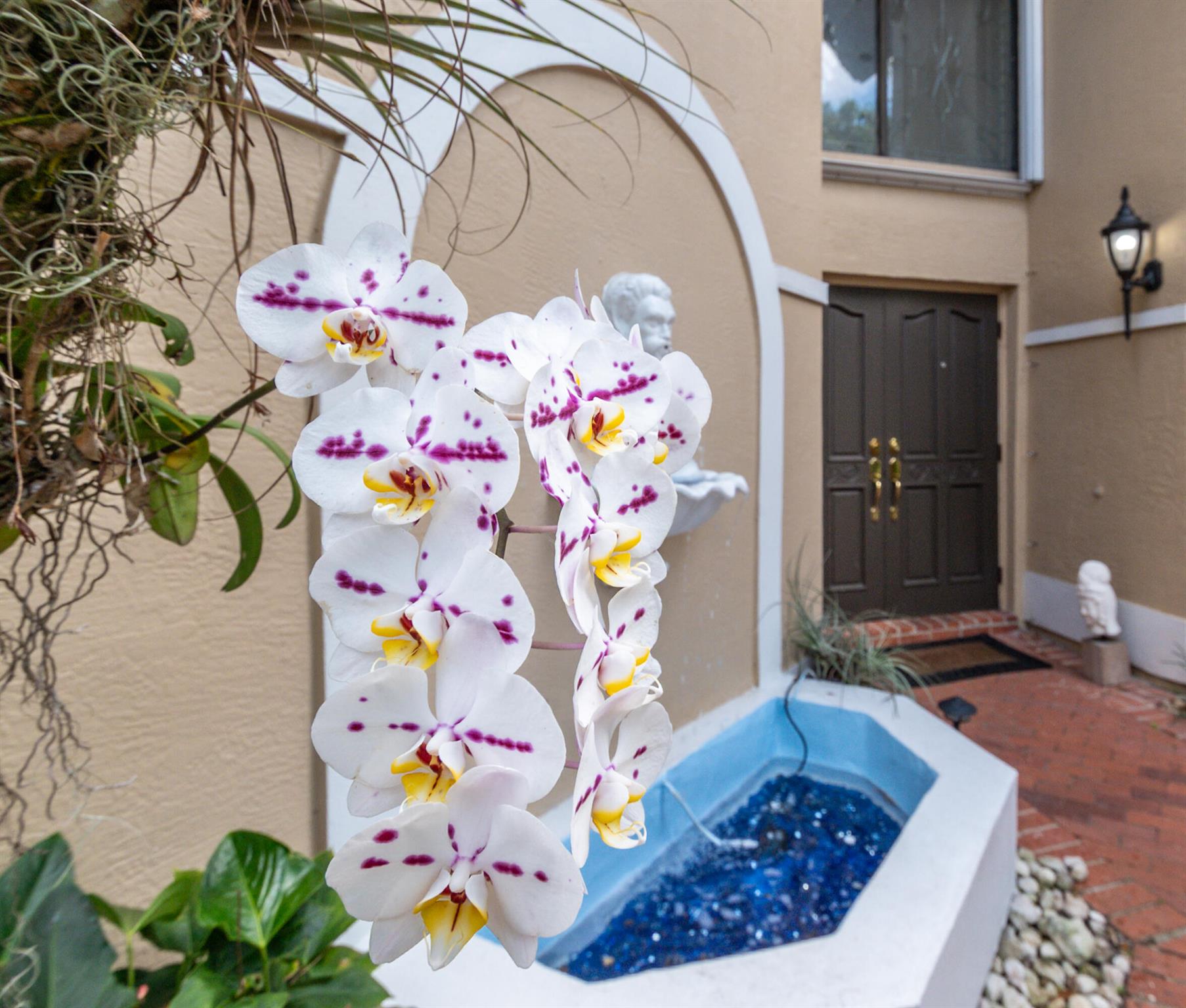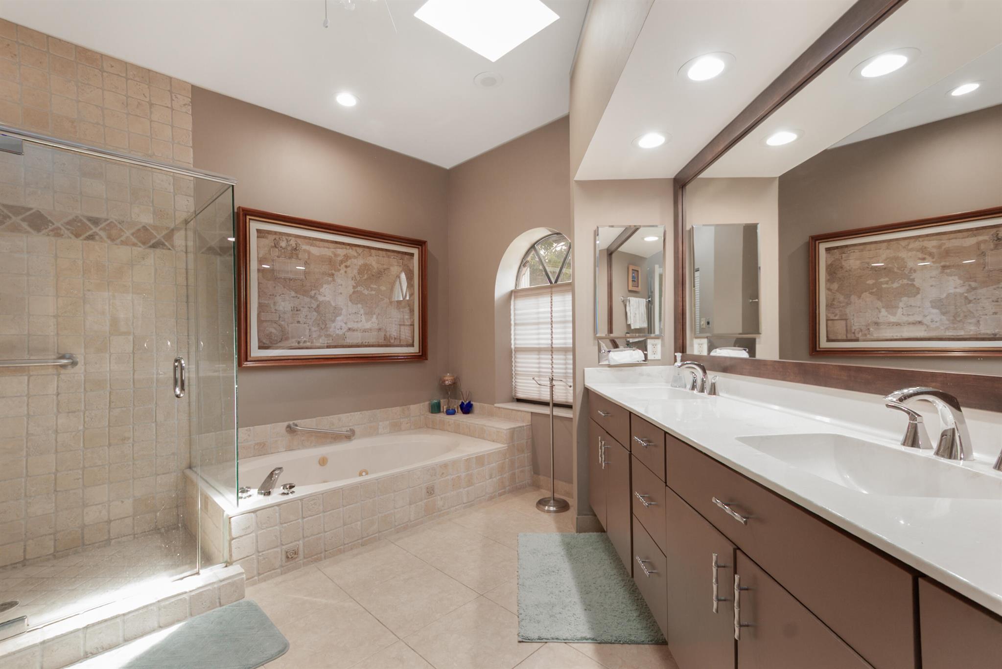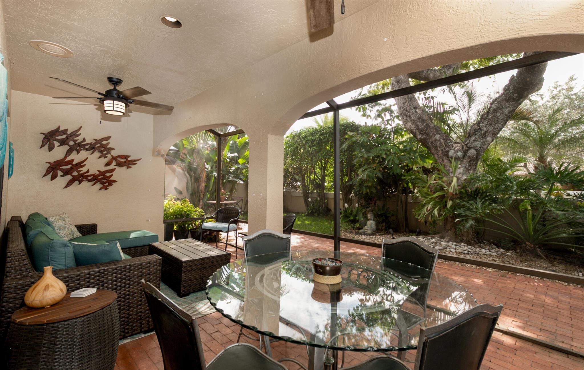 Tucked behind lush landscaping in a private gated setting, this elegant residence offers spacious living with timeless charm. Enjoy a gourmet kitchen with quartzite counters, double ovens, and cooktop, opening to airy indoor-outdoor living spaces. The serene master suite features Italian imported engeneered wood floors, dual walk-in closets, and a spa-like bath, separate shower, and bidet. Outdoors, relax by your tropical private pool, surrounded by colorful gardens and covered patios. The 3rd bedroom is used as TV lounge. The house is hurricane protected, the A/Cs are 2022 & 23. Community pool, clubhouse, and walkable location complete the picture! Caravelle is always a most desirable Boca Pointe subdivision.