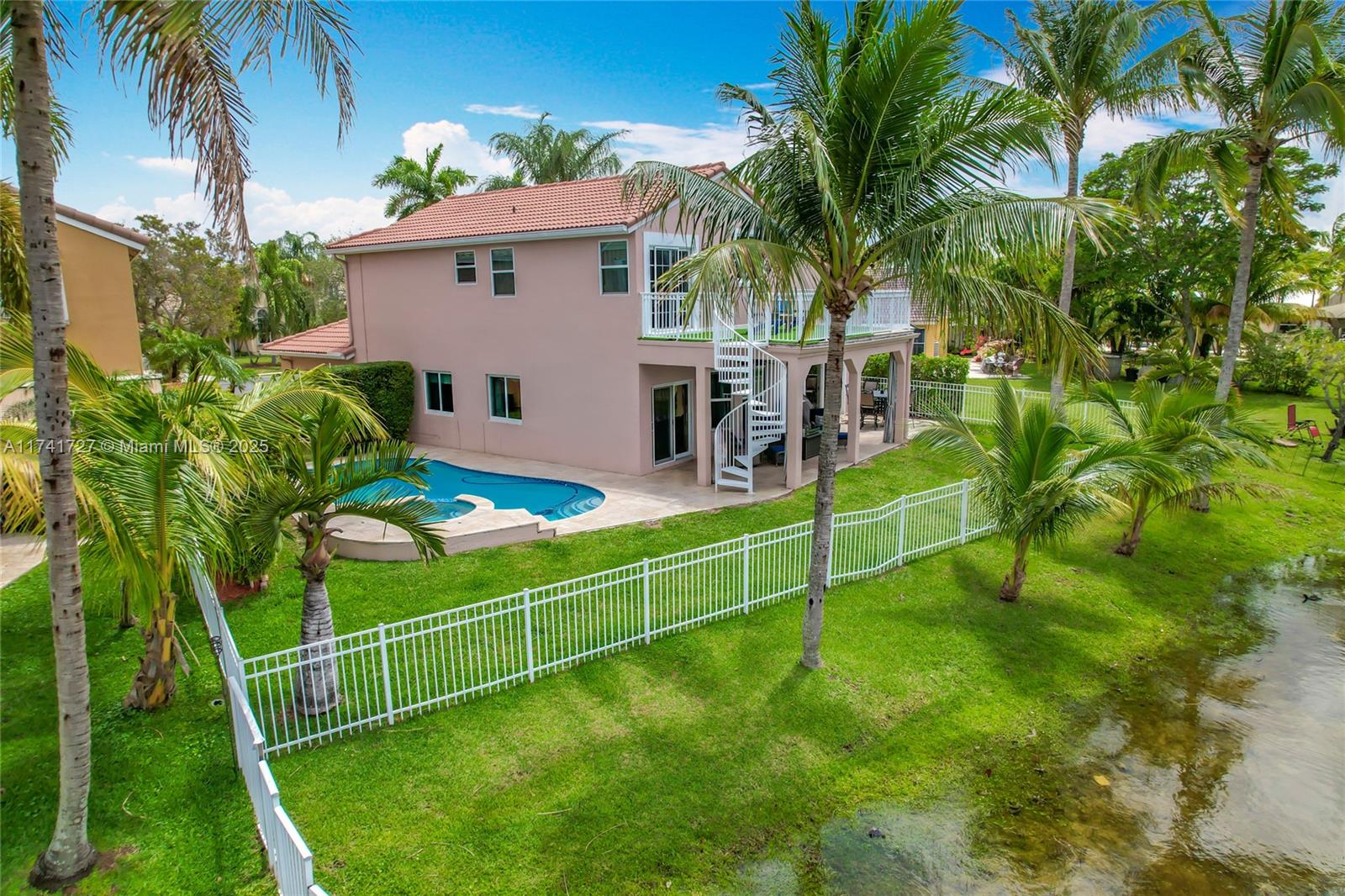 Unveiling a dazzling 4-bed, 3-bath lakefront treasure in Chapel Trail-Kensington, Pembroke Pines! This two-story beauty gleams with a modern open layout and fresh finishes. One bedroom and bathroom located downstairs, ideal for an office or in-laws suite. The sleek kitchen sparkles with quartz counters, ENERGY EFFICIENT stainless steel appliances, and vast cabinetry. The primary suite stuns with lake views from balcony sliders, a walk-in california closet, and a spa-like bath. Savor sunsets by your private pool and patio, perfect for entertaining. With a two-car garage, HURRICANE IMPACT WINDOWS AND DOORS throughout, and top-rated schools nearby, this move-in-ready gem offers prime lakefront living near parks, shopping, and dining! The garage, living rm, and 2 bedrooms are virtually staged.