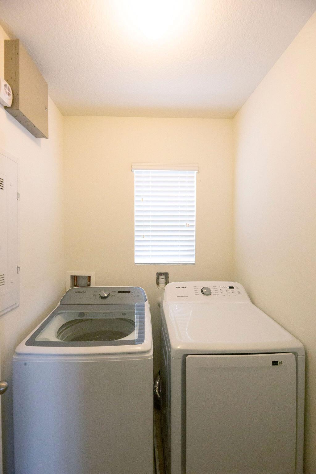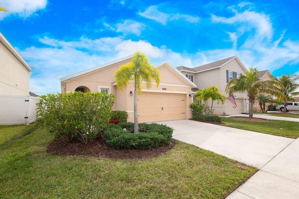 Discover this beautiful Allex Model home in the desirable Victoria Parc Manors! This 3-bedroom, 2-bath residence with a 2-car garage offers modern living with plank tile floors throughout. The kitchen features elegant dark cabinetry and sleek stainless-steel appliances. The spacious master suite includes a walk-in closet and an ensuite bathroom with double sinks and a walk-in shower. Two additional bedrooms provide plenty of space, and the second bathroom features a convenient shower/tub combination. A dedicated laundry room comes complete with a washer and dryer for added convenience. Located in the heart of Tradition, you'll love the proximity to shopping, dining, and entertainment. HOA includes perks like cable, internet, lawn care, and exterior pest control.