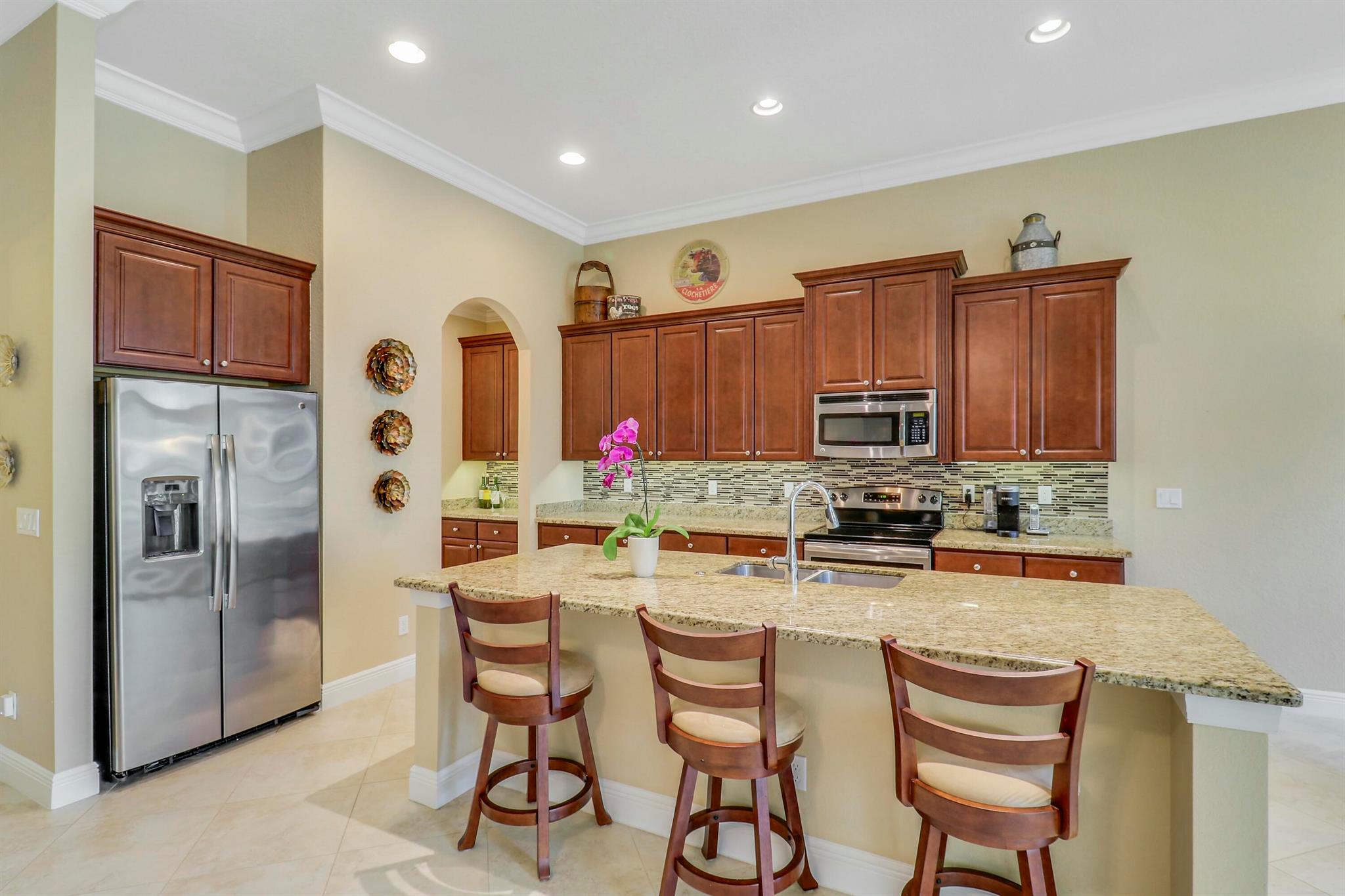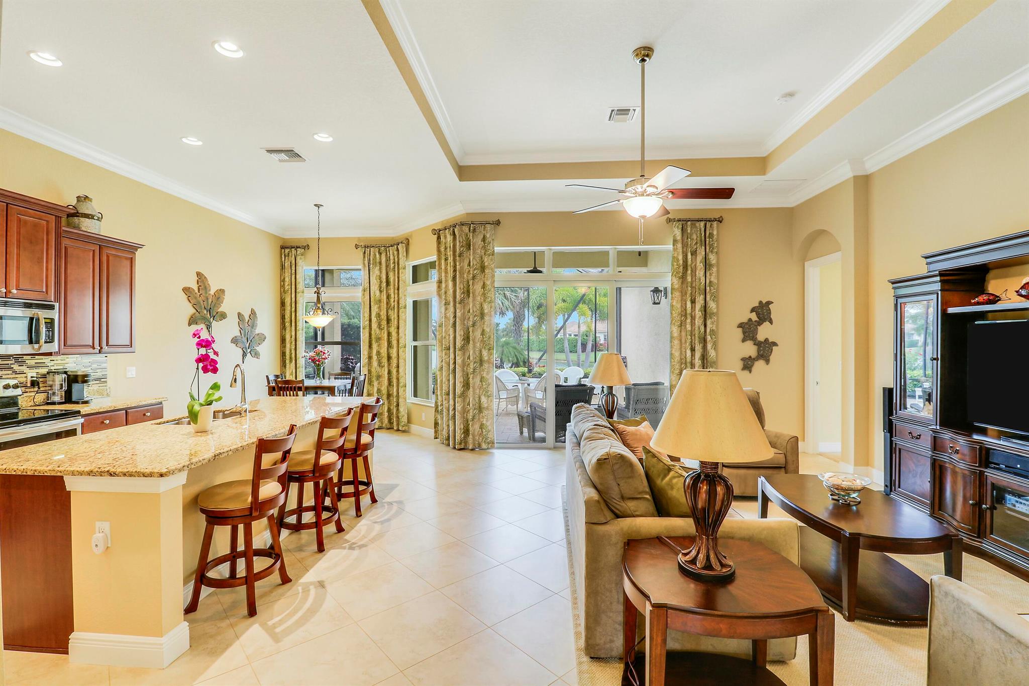AMAZING LOT LOCATION on side street w/PEACEFUL LAKE VIEWS FRONT & BACK in the resort style community of PGA VERANO. This 3BR/2.5BA/2CG home has many upgrades t/o including neutral tile in main living areas, custom draperies, impact glass windows & doors, newer AC (2024) and spacious screened & expanded lanai overlooking the serene lake views! The kitchen features SS appliances, granite counters, butlers pantry, an abundance of cabinetry and a charming breakfast nook. Master suite overlooks the lake view, has dual closets, a spacious ensuite w/ dual vanities and a soaker tub & shower. Guest bedrooms have access to the hallway bathroom. The highlight of this property is the expanded, screened lanai w/ outdoor grill area! A perfect spot to enjoy your morning coffee or dine al fresco.
