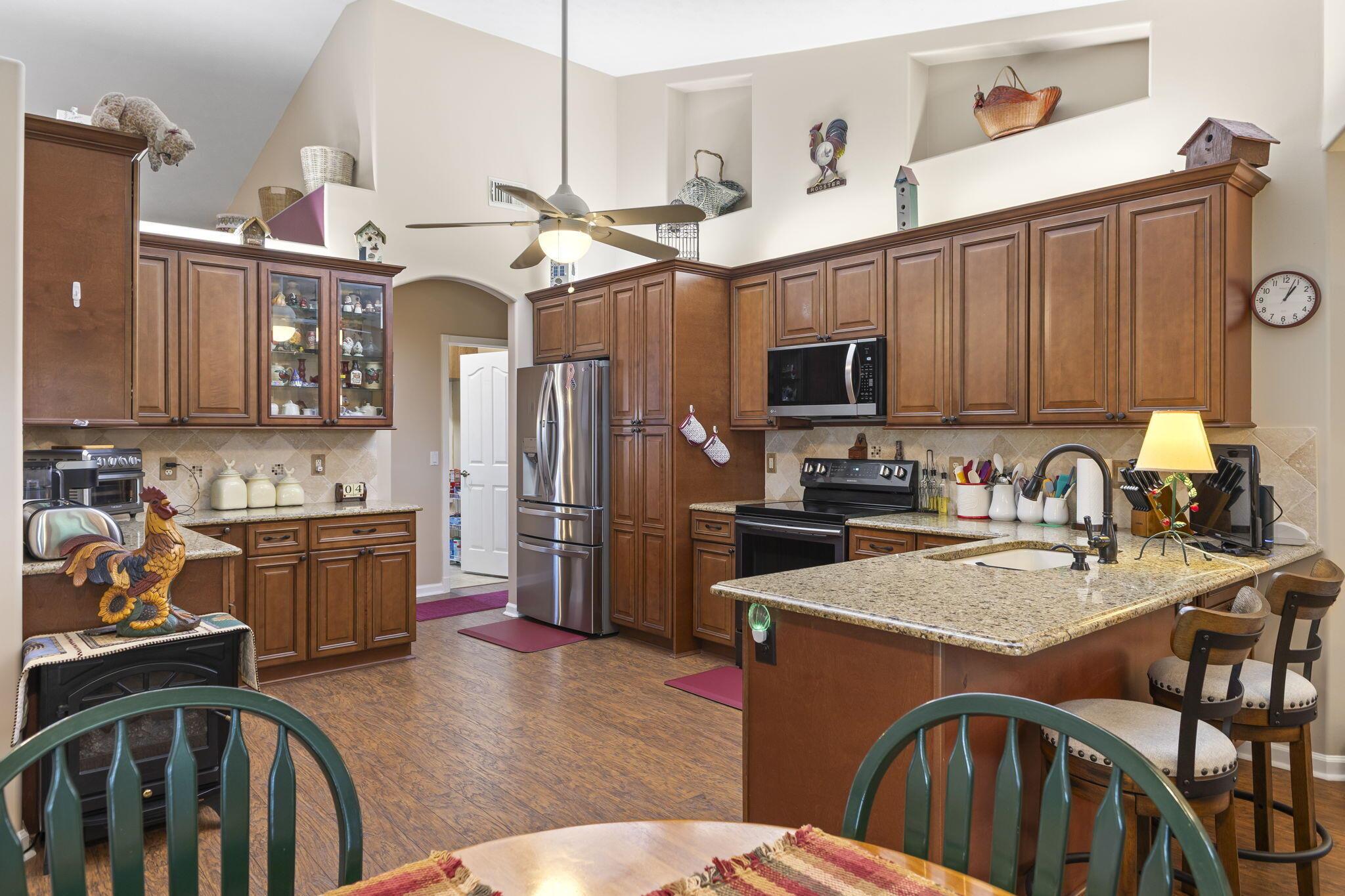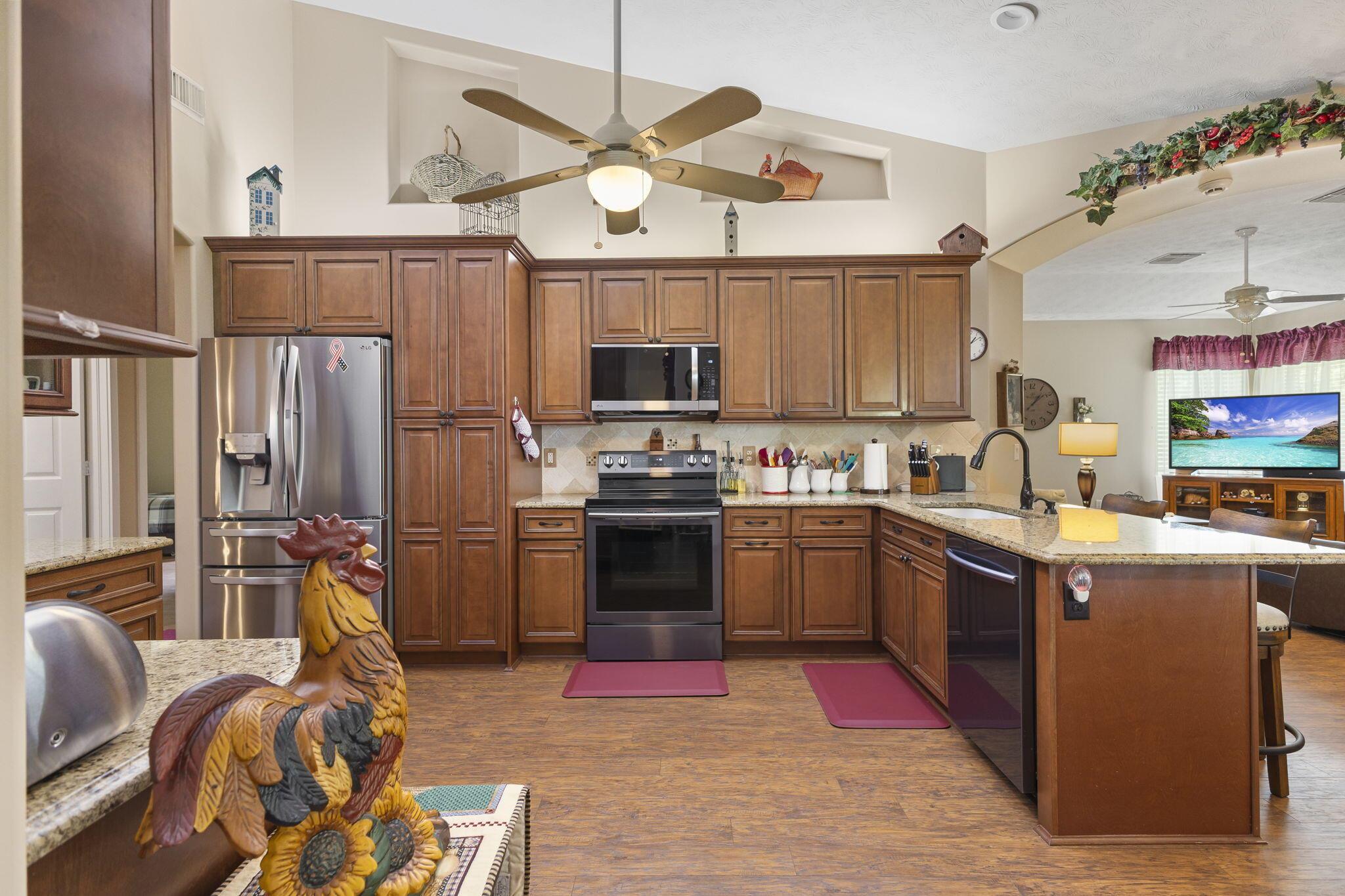 This beautifully maintained 3-bedroom, 2.5-bathroom home with a 2-car garage is nestled in a quiet and serene neighborhood that backs up to a peaceful preserve, while offering a perfect blend of comfort, character, and modern updates. Step inside to find hardwood and tile flooring throughout, vaulted ceilings, and an abundance of storage space. The spacious master suite features walk-in closets and a garden tub, perfect for relaxing at the end of the day. The heart of the home boasts a renovated kitchen with granite countertops, brand new cabinets, and new stainless steel appliances. Adjacent to the main living area is a second living room, providing flexible space for a media room, home office, or additional entertaining. Not to mention, there is a cozy fireplace that adds warmth and