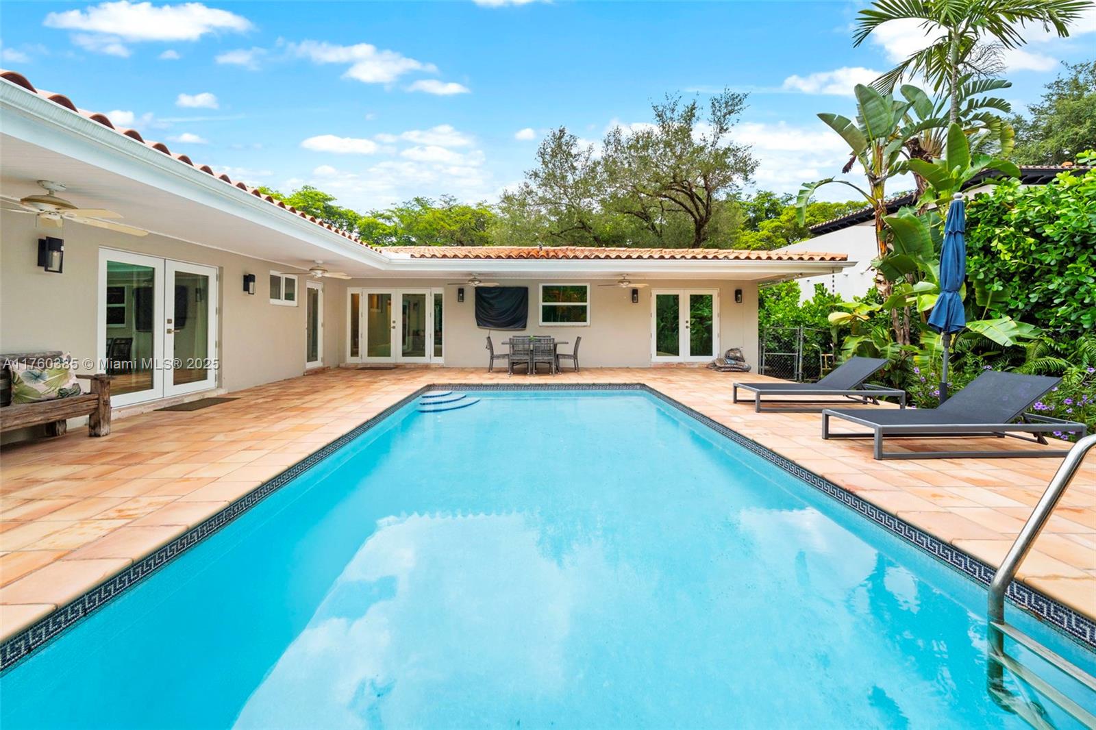 Ideally located on a quiet, tree-lined street in North Coral Gables, this impeccably maintained 4-bed, 3-bath home offers comfort and versatility. Features include a sparkling pool, oversized 2-car garage, and impact windows/doors. The flexible layout allows the formal dining, family, den, and living rooms to adapt to your needs. The foyer opens to rear French doors with views of the spacious pool/patio area. All bedrooms are situated along a private hallway, with the primary suite at the rear featuring pool access, dual closets, and a large en-suite bath. Minutes from Downtown Coral Gables, Granada Golf Course, Country Club Prado, Biltmore Hotel, and Miami International airport.