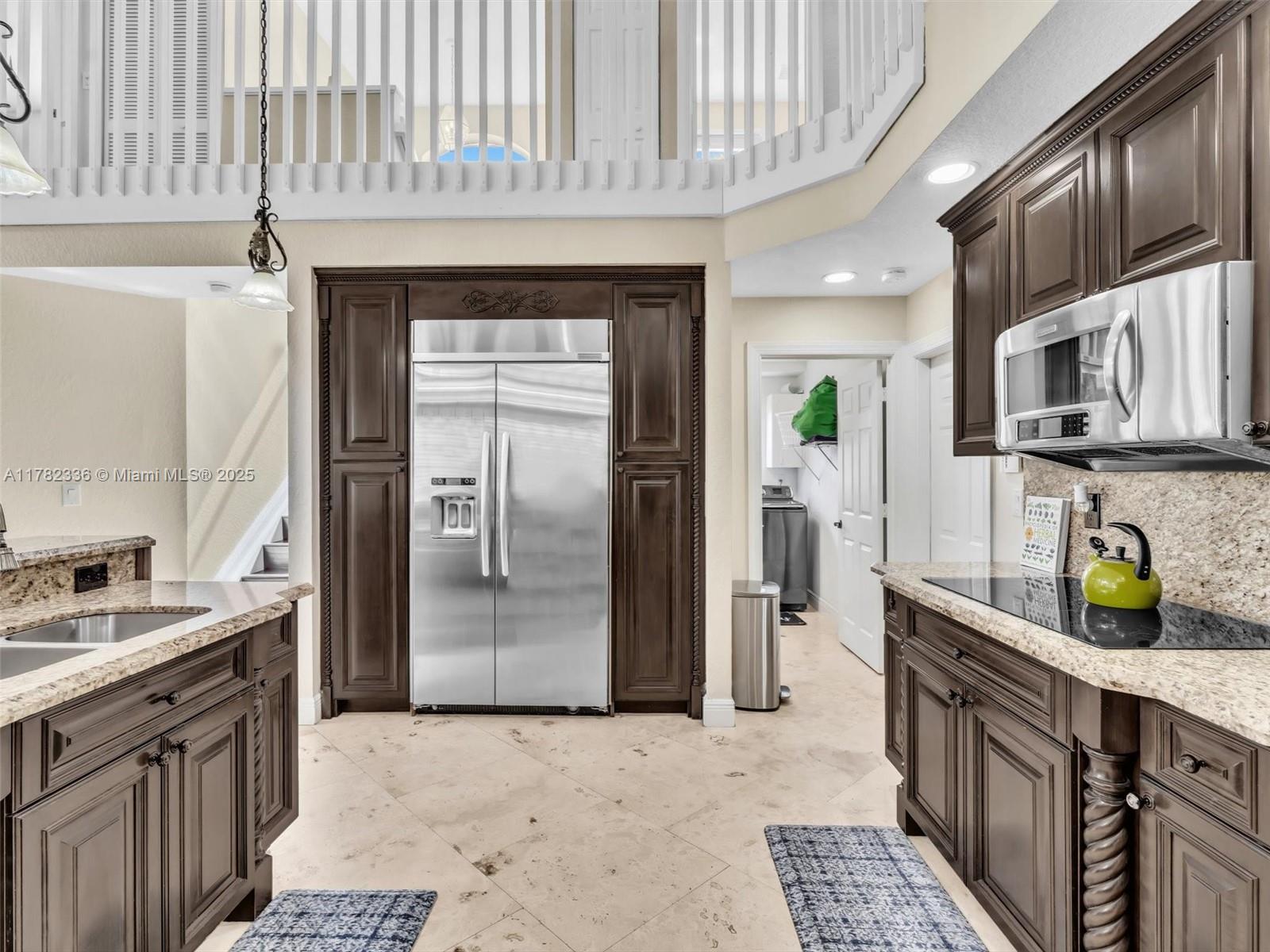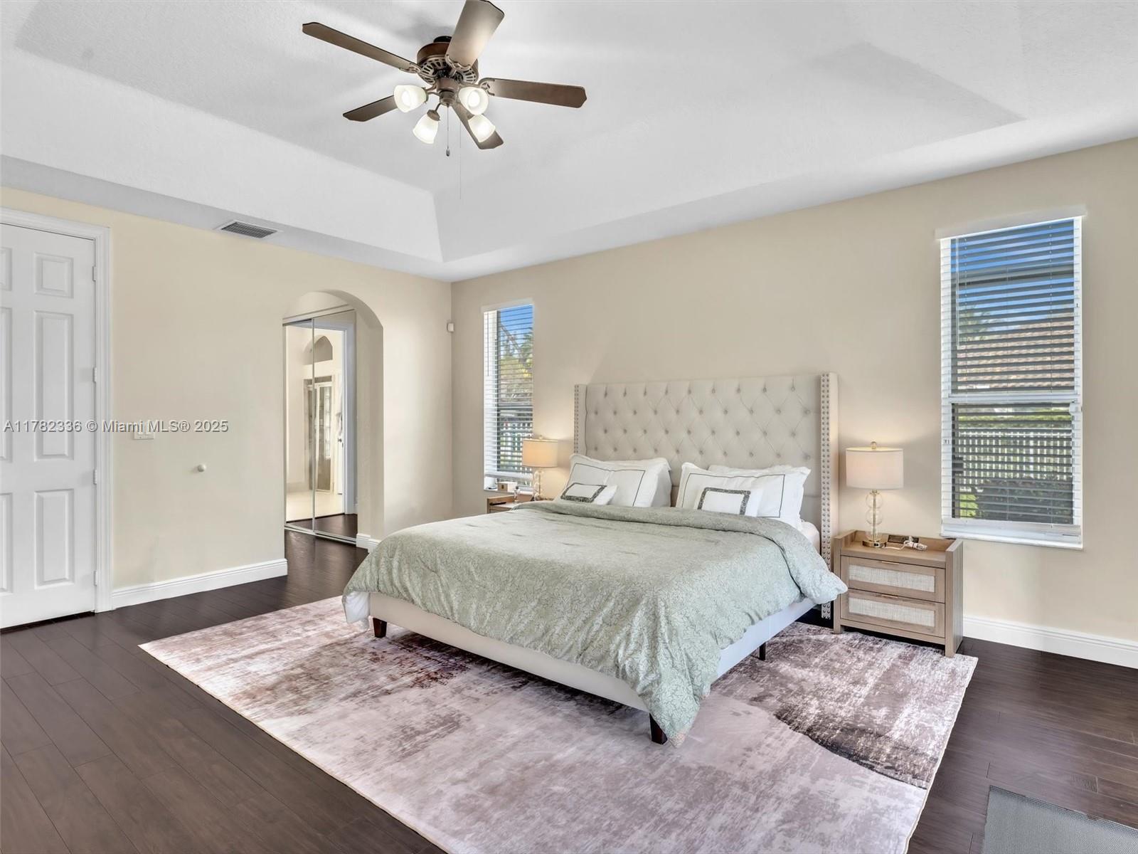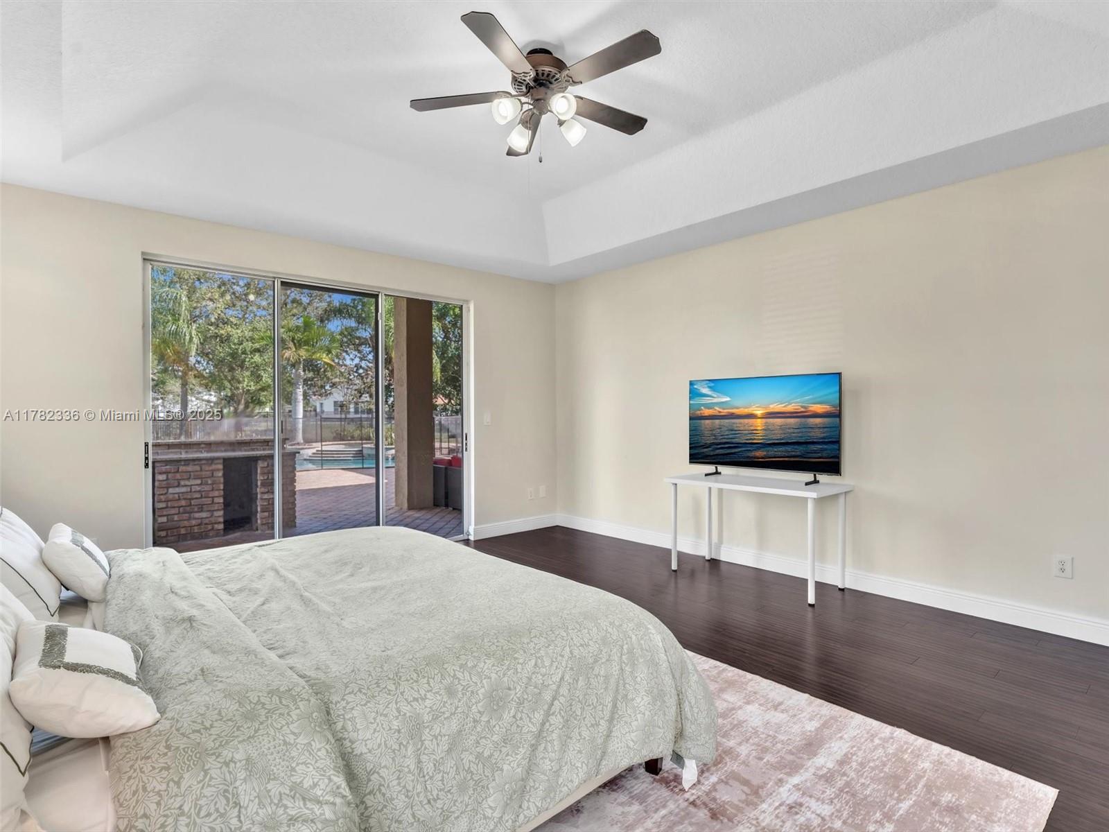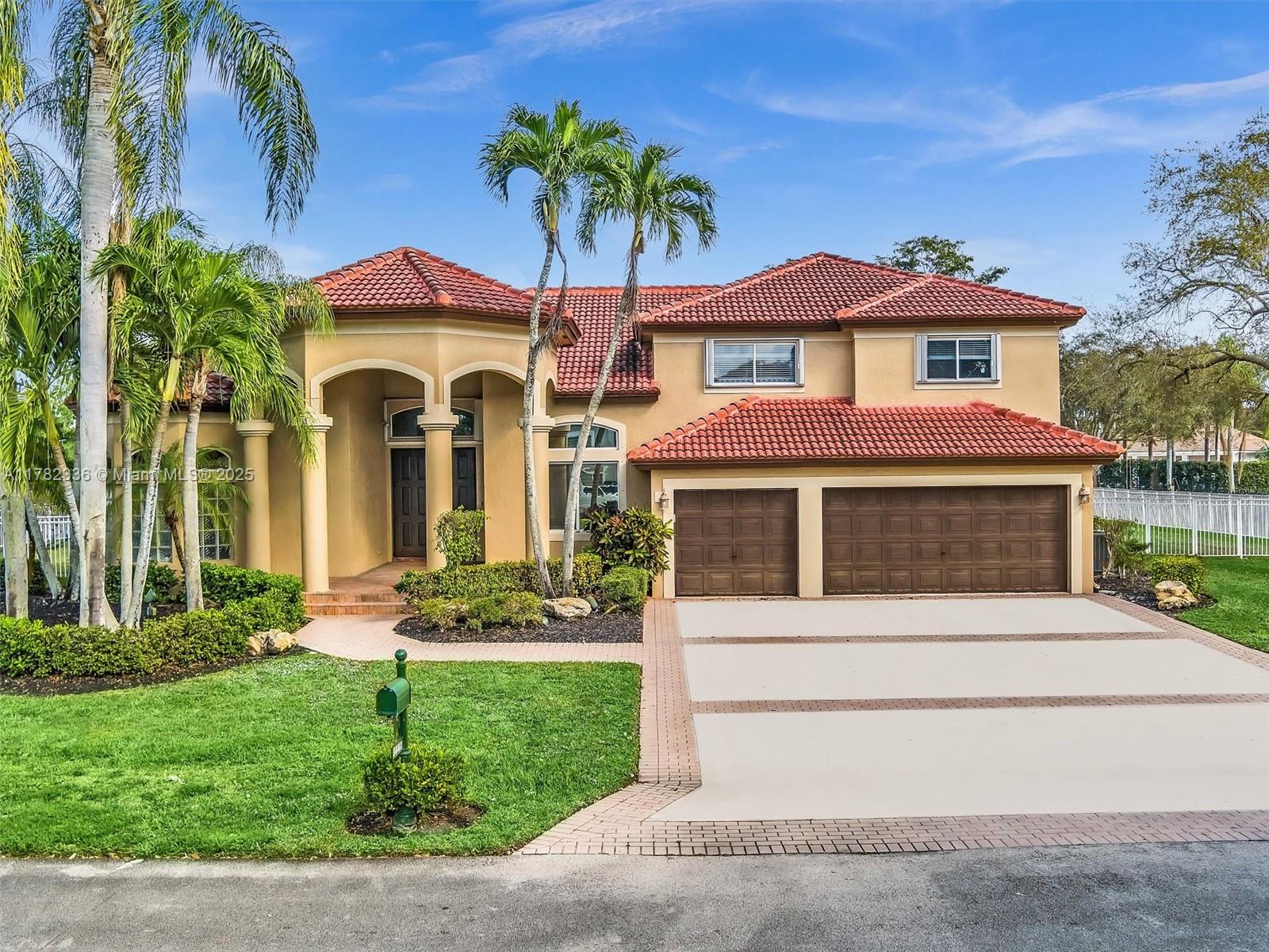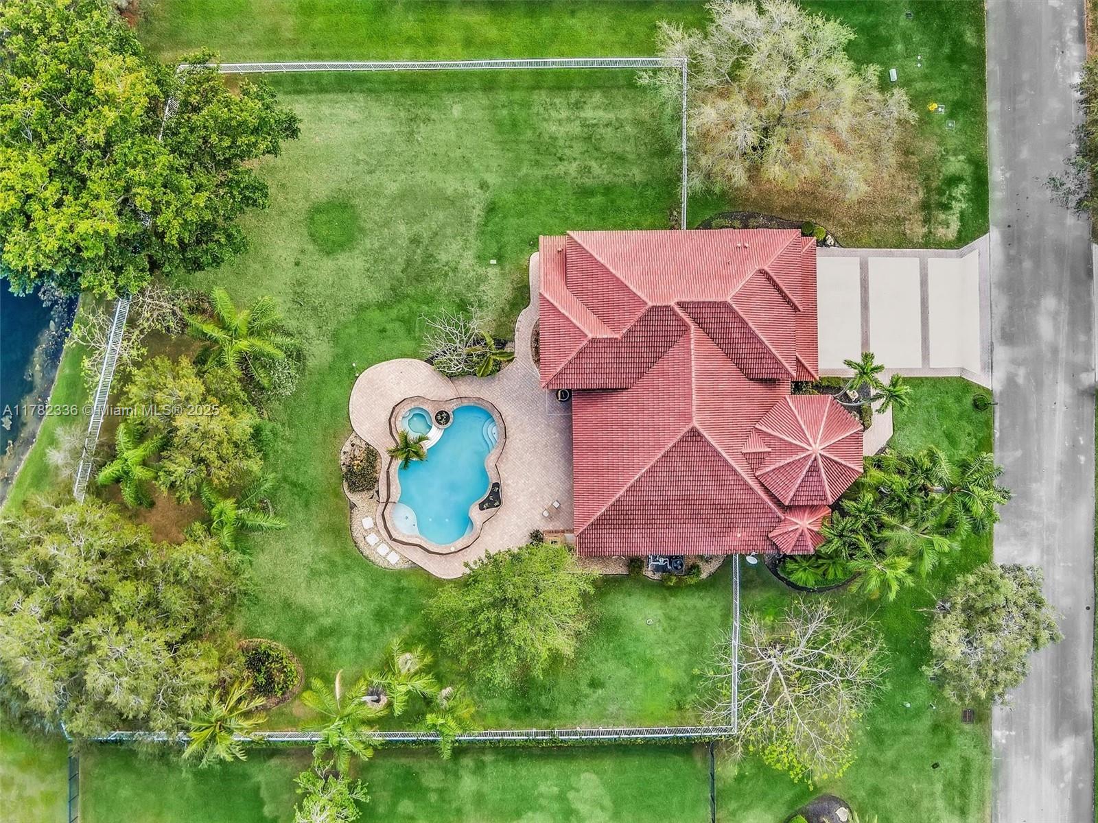 Welcome home to stunning resort-style living! Experience a world of elegance and comfort in this fantastic 5 bedroom, 3-bathroom home, with a cozy den or formal dining room in a gated Davie community. This property sits on a spacious builder's acre and features a newer roof. The bedrooms are adorned with cherry parquet floors, while the fabulous spa boasts beautiful travertine tiles and a soothing waterfall feature. Brand New Pool Water Heater & Pump. Two bedrooms are conveniently located on the ground floor. If you enjoy cooking, the inviting kitchen will delight any chef. Charming plantation shutters and a stunning mature garden. The fenced-in pool, outdoor mini-kitchen, cozy fireplace make this space perfect for entertaining friends & family while enjoying breathtaking lake vistas.
