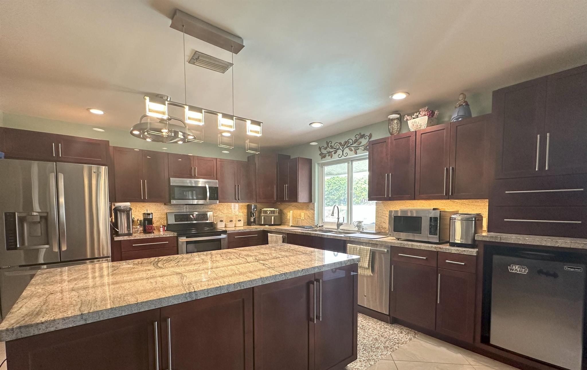 Complete Hurricane Impact Windows & Doors, Newer Roof (2019), Renovated Dream Kitchen and Stunning Baths plus a Quiet, Waterfront Totally Private backyard retreat! Close to many houses of worship & schools too! What more do you need? Make this home your own. Delightful haven combines comfort with convenience features a 4-bedroom, 2-bathroom single-story pool home in the heart of Central Boca Raton. Peaceful & serene AND close to everything! The large gourmet chef's kitchen is a MUST-SEE with double stainless sinks, TWO dishwashers, extra freezer and oversized island with extra storage for your seasonal dishes. Renovated bathrooms, porcelain tiled living area with new carpet in bedrooms. Backyard is a true retreat tranquil patio with a large pool & total privacy!