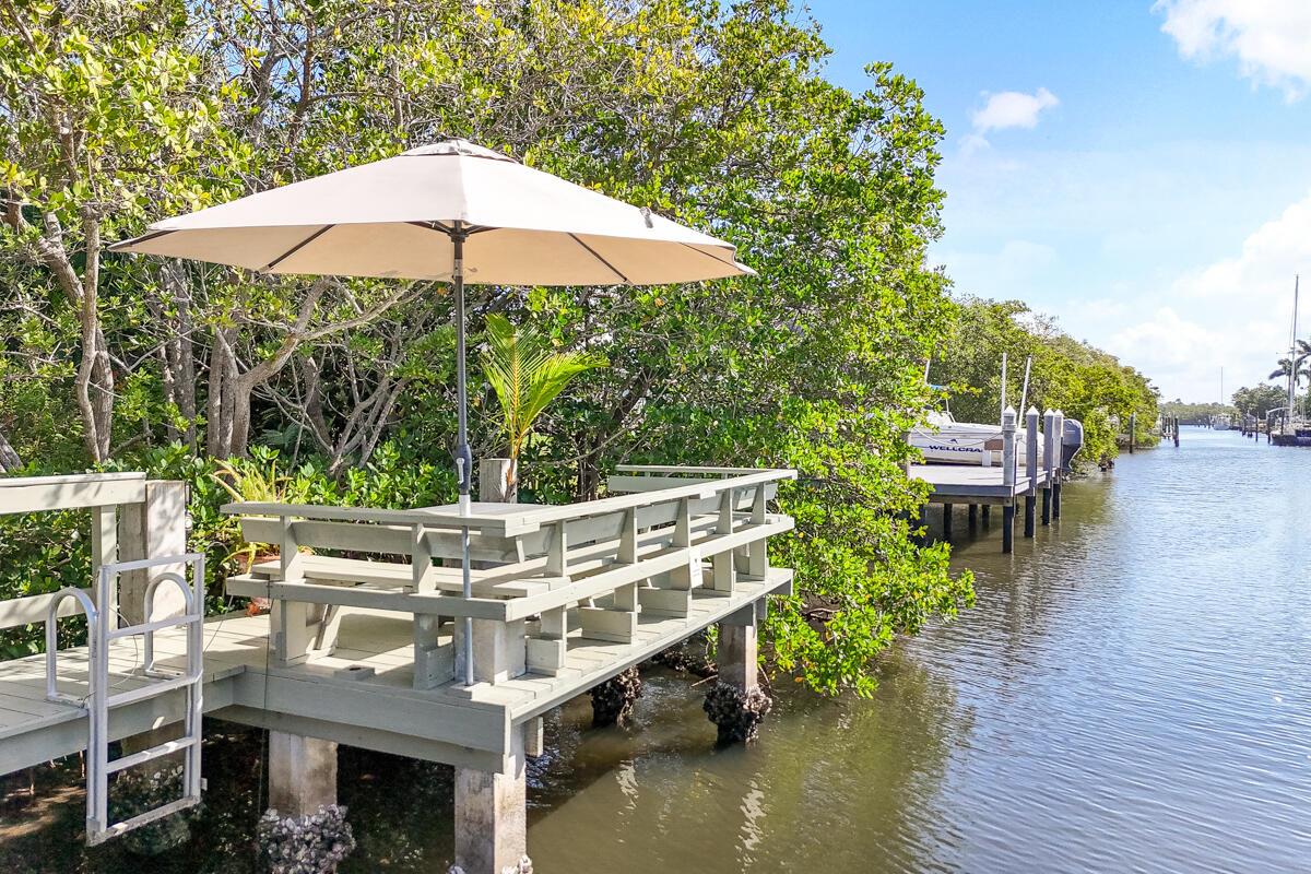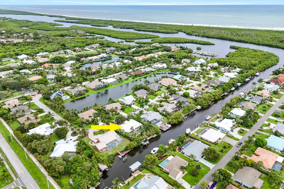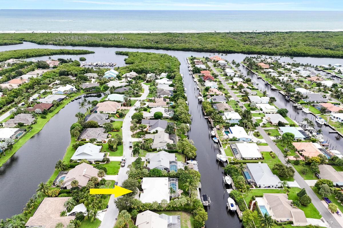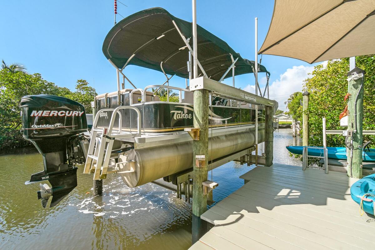 Located on a spacious .39-acre lot in a highly sought-after GATED community with only 37 homes, this beautiful WATERFRONT property offers unparalleled access to the Intracoastal Waterway with NO FIXED BRIDGES. The home boasts a private DOCK complete with a 13k lbs. boat LIFT, a 50-amp 120/240V service, aerator, fish cleaning table, and built-in seating--ideal for boating enthusiasts. Enjoy resort-style living with a private, screened-in heated POOL, a cabana bath, and a covered lanai that is perfect for outdoor gatherings. The floor plan seamlessly blends indoor and outdoor living, with the UPDATED KITCHEN featuring a new convection cooktop stove, stylish glass tile backsplash, breakfast bar, and ample dining space with direct access to the pool area.
