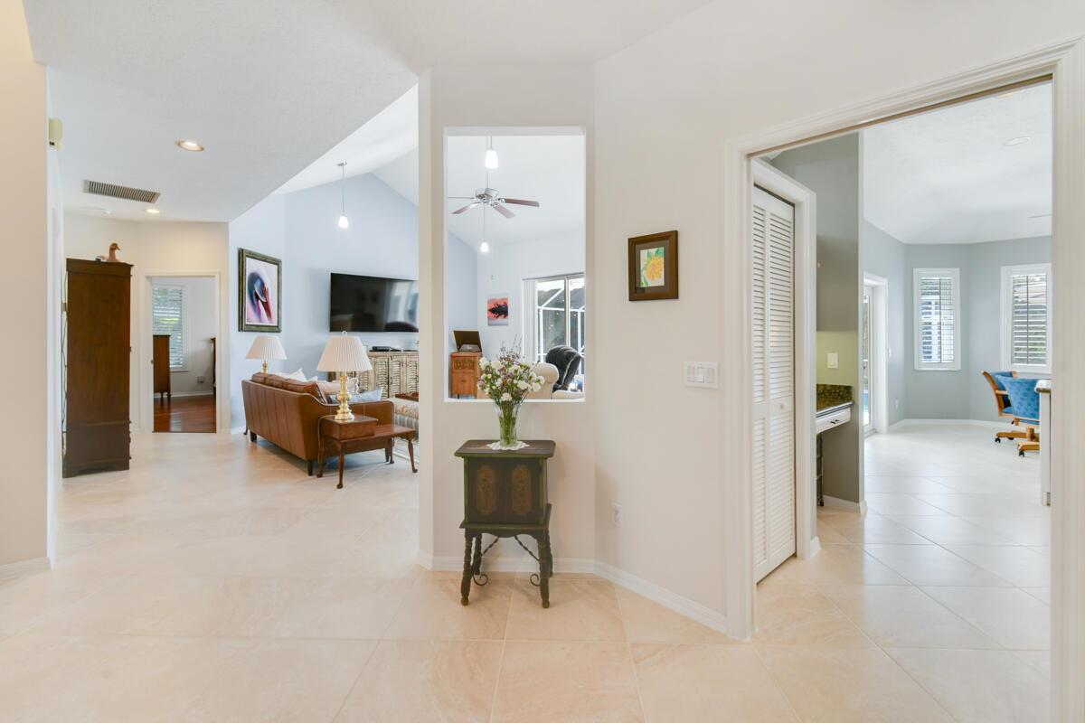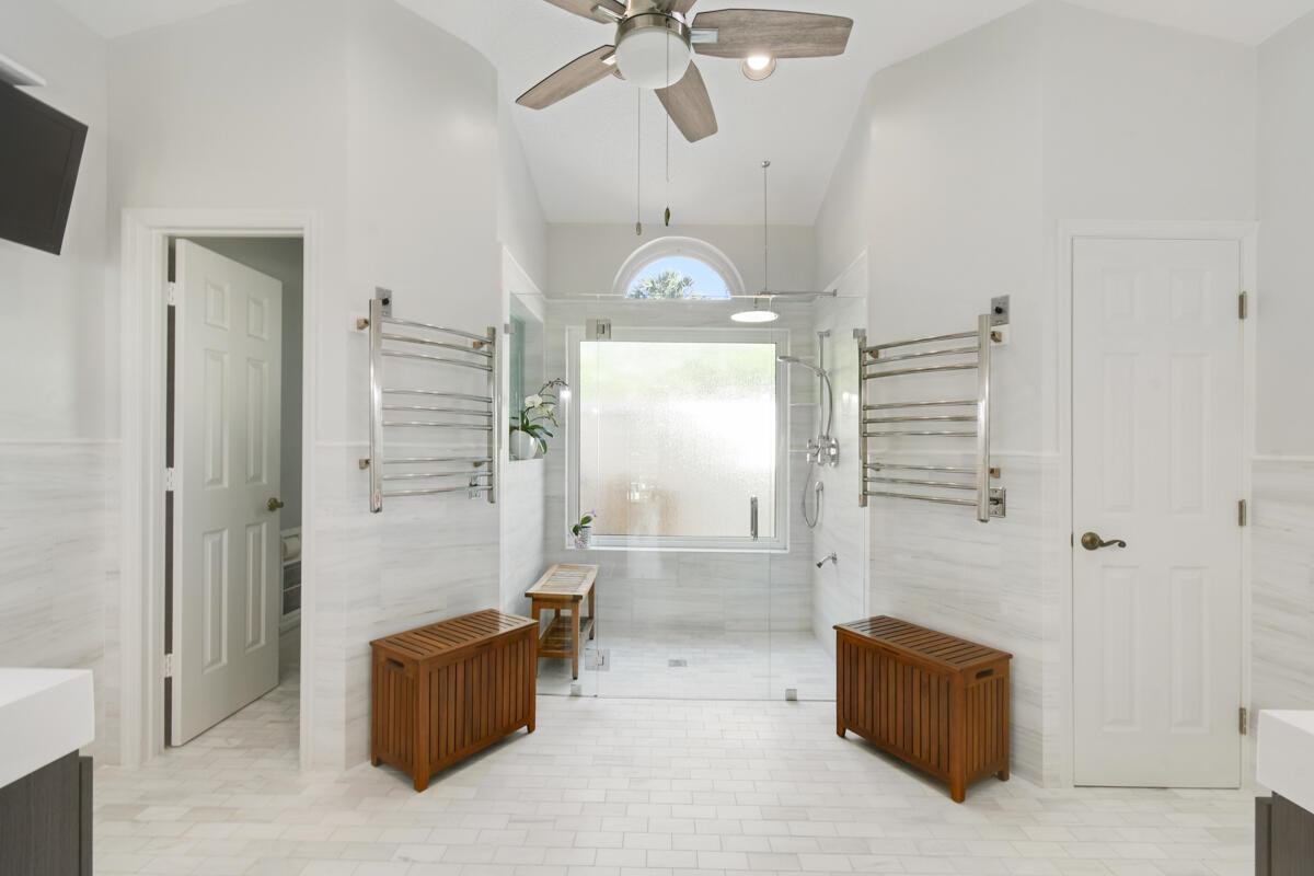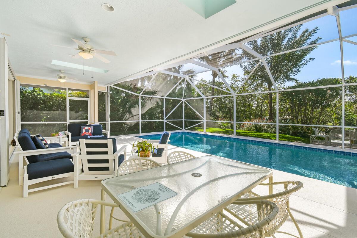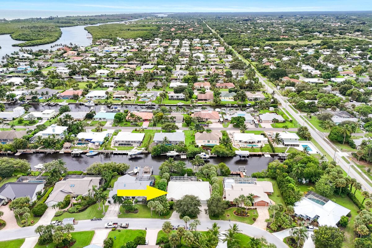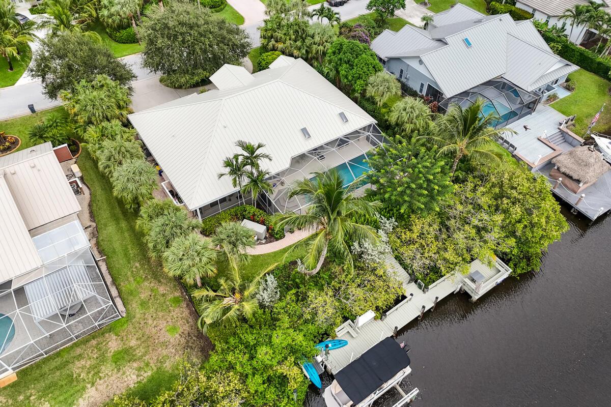Located on a spacious .39-acre lot in a highly sought-after GATED community with only 37 homes, this beautiful WATERFRONT property offers unparalleled access to the Intracoastal Waterway with NO FIXED BRIDGES. The home boasts a private DOCK complete with a 13k lbs. boat LIFT, a 50-amp 120/240V service, aerator, fish cleaning table, and built-in seating--ideal for boating enthusiasts. Enjoy resort-style living with a private, screened-in heated POOL, a cabana bath, and a covered lanai that is perfect for outdoor gatherings. The floor plan seamlessly blends indoor and outdoor living, with the UPDATED KITCHEN featuring a new convection cooktop stove, stylish glass tile backsplash, breakfast bar, and ample dining space with direct access to the pool area.