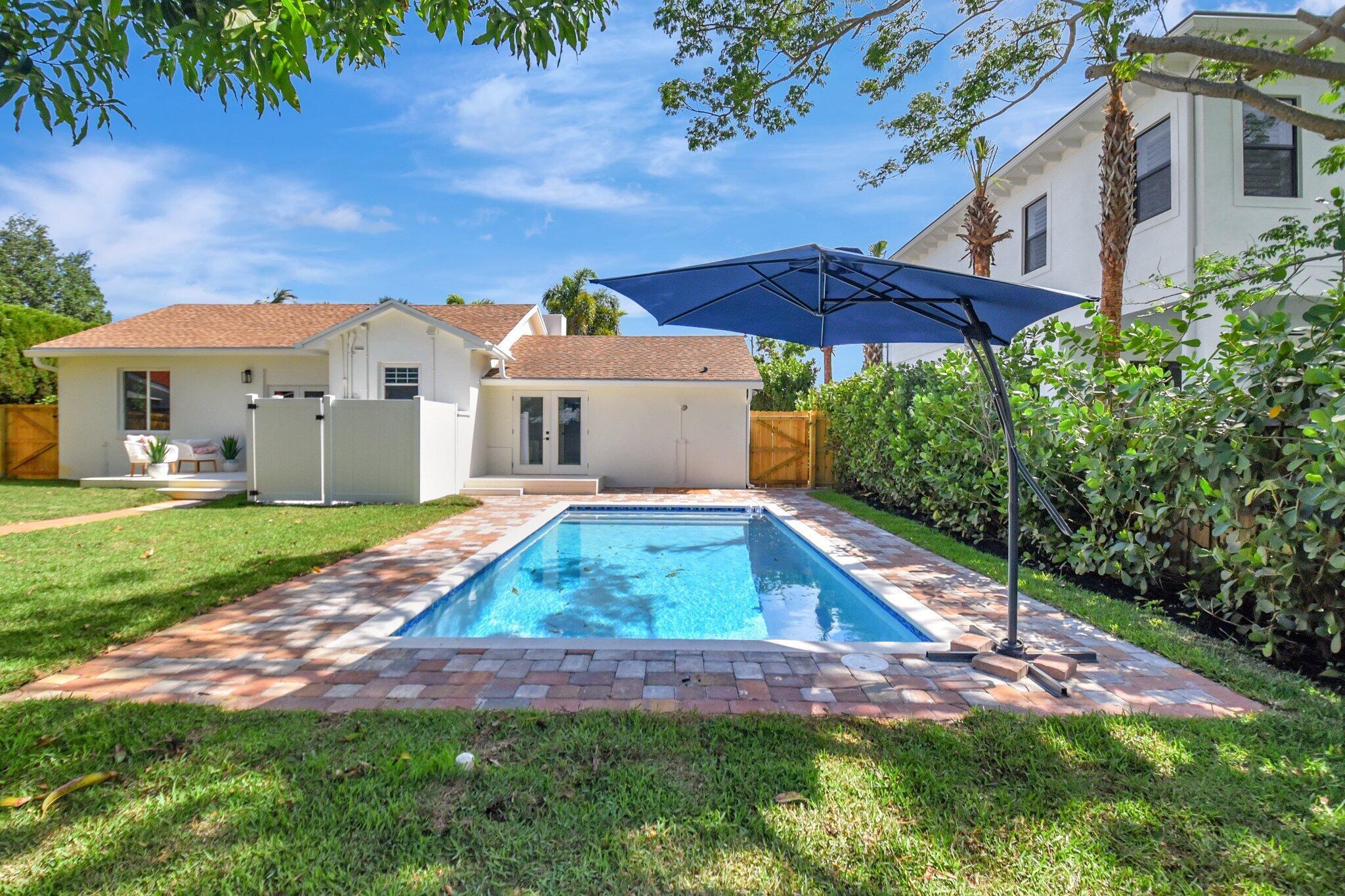 Experience the epitome of luxury living in this beautifully updated SoSo gem, showcasing designer finishes throughout. Nestled in one of West Palm Beach's most sought-after neighborhoods, this fully fenced estate features a CBS-constructed 3BD/3BA main residence and a separate 1BD/1BA guest house. Enjoy serene walks to the Intracoastal, bike rides to the beach, and easy access to the area's finest dining. Set on a nearly 10,000 sq ft lot with soaring 12' Clusia hedges for ultimate privacy, the property now boasts a stunning brand-NEW POOL--perfect for entertaining or relaxing in style. Additional highlights include a newly renovated main home, brand-new HVAC system and ductwork, and newer roofs on both homes. A rare opportunity--schedule your private tour today.