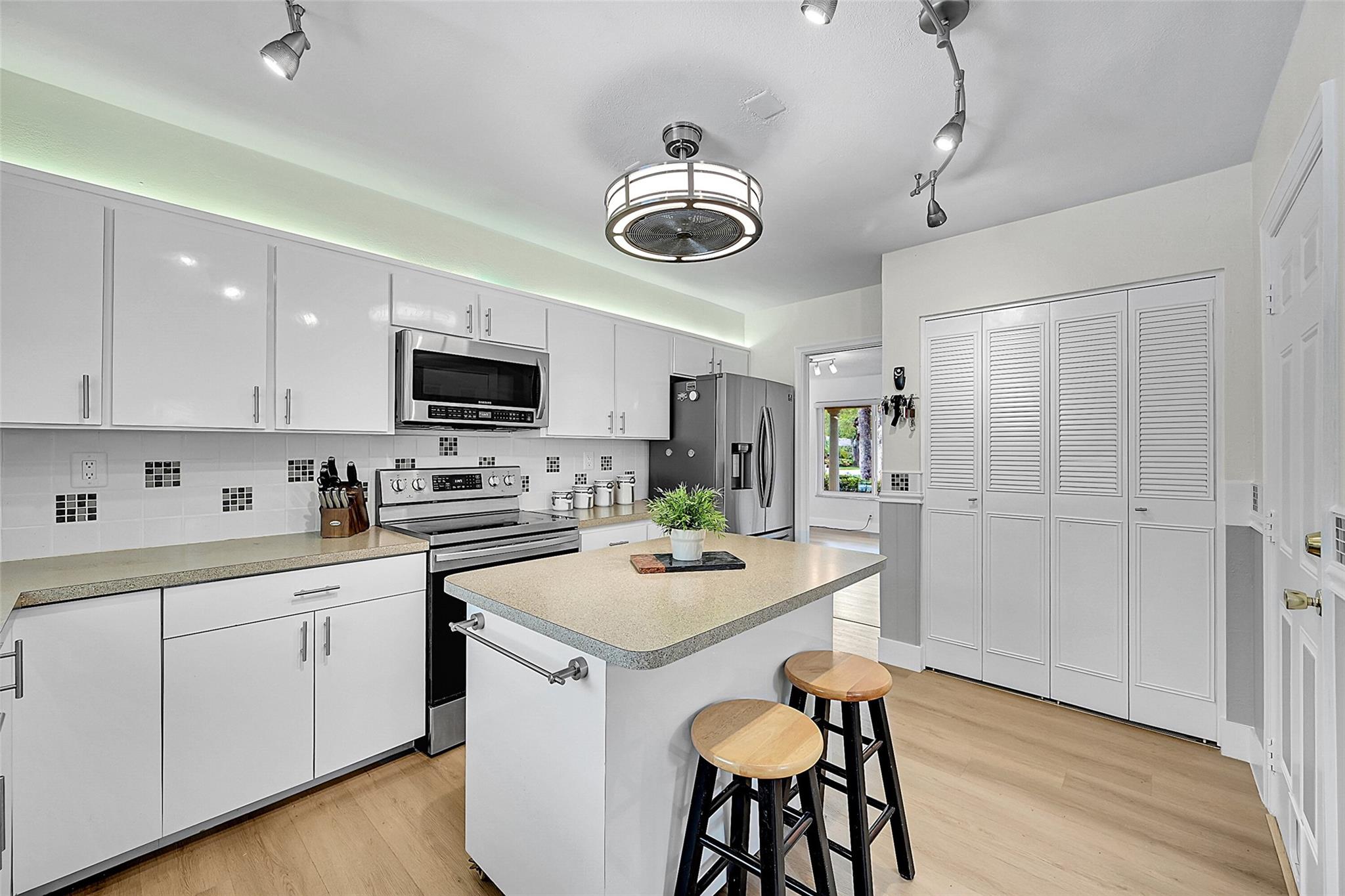 UNIQUE Expanded 6-bed (5+ conversion), 3.5-bath home in Plantation with a recently refinished screened-in pool & spacious patio—perfect for entertaining family and friends. New laminate flooring throughout, freshly painted interior, and stainless steel appliances in the kitchen. The garage is built out. Features 3 newer A/C units & PACE solar panels, electric bills are around $160/m. Combination of impact windows & shutters. Fenced backyard with fruit trees, 2 attached storage sheds, RV or boat parking with entrance through the back of the home & a circular driveway. Lots of storage throughout. Roof is in great shape. No HOA & no restrictions. Rarely available expanded model. Direct back gate access to Tropical Elem. Large lot to accommodate all your needs. Move-in ready & waiting for you!