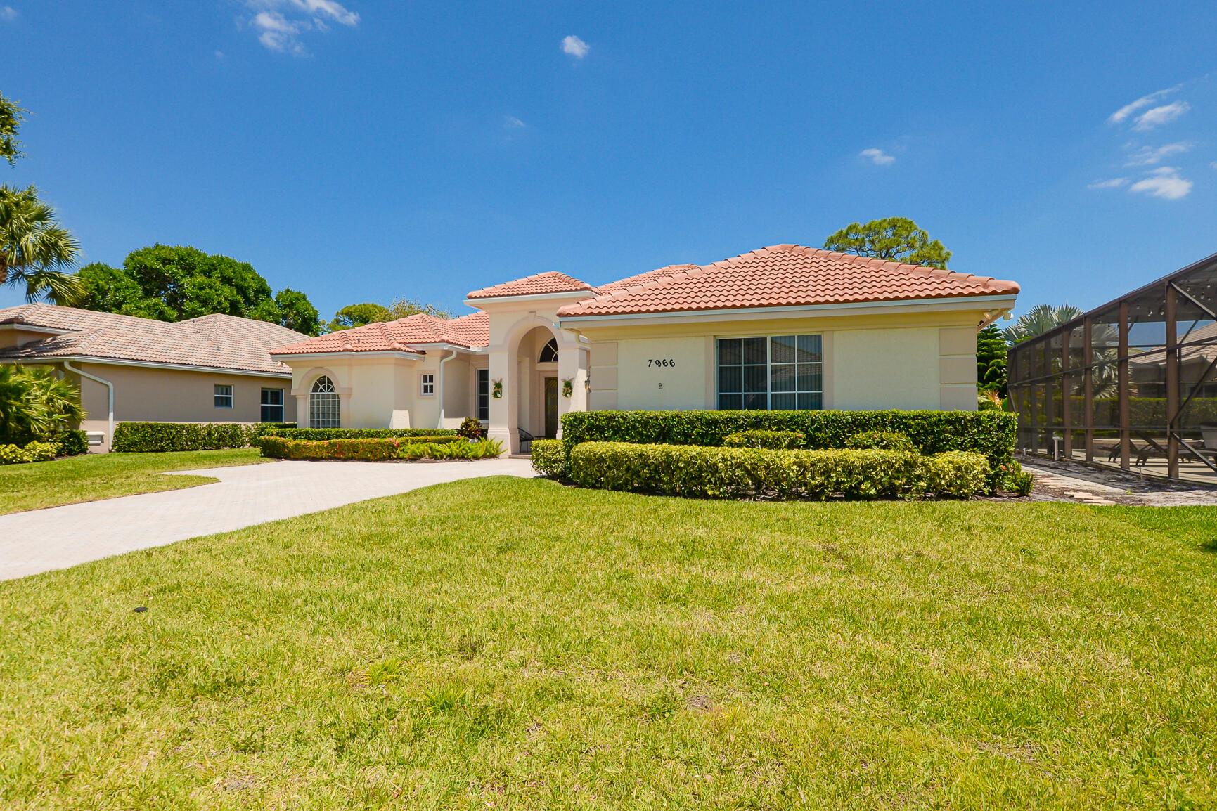 Nestled in coveted Cypress Point/PGA Village. Fabulous Ryder Golf views. This pristine 3 Bedroom, 3 full baths and 2.5 car garage Augusta model CBS home has a new barrel tile roof. It is a golf lover's dream. It has a central vac. Side load golf cart garage. Extended screened patio. Updated landscaping.