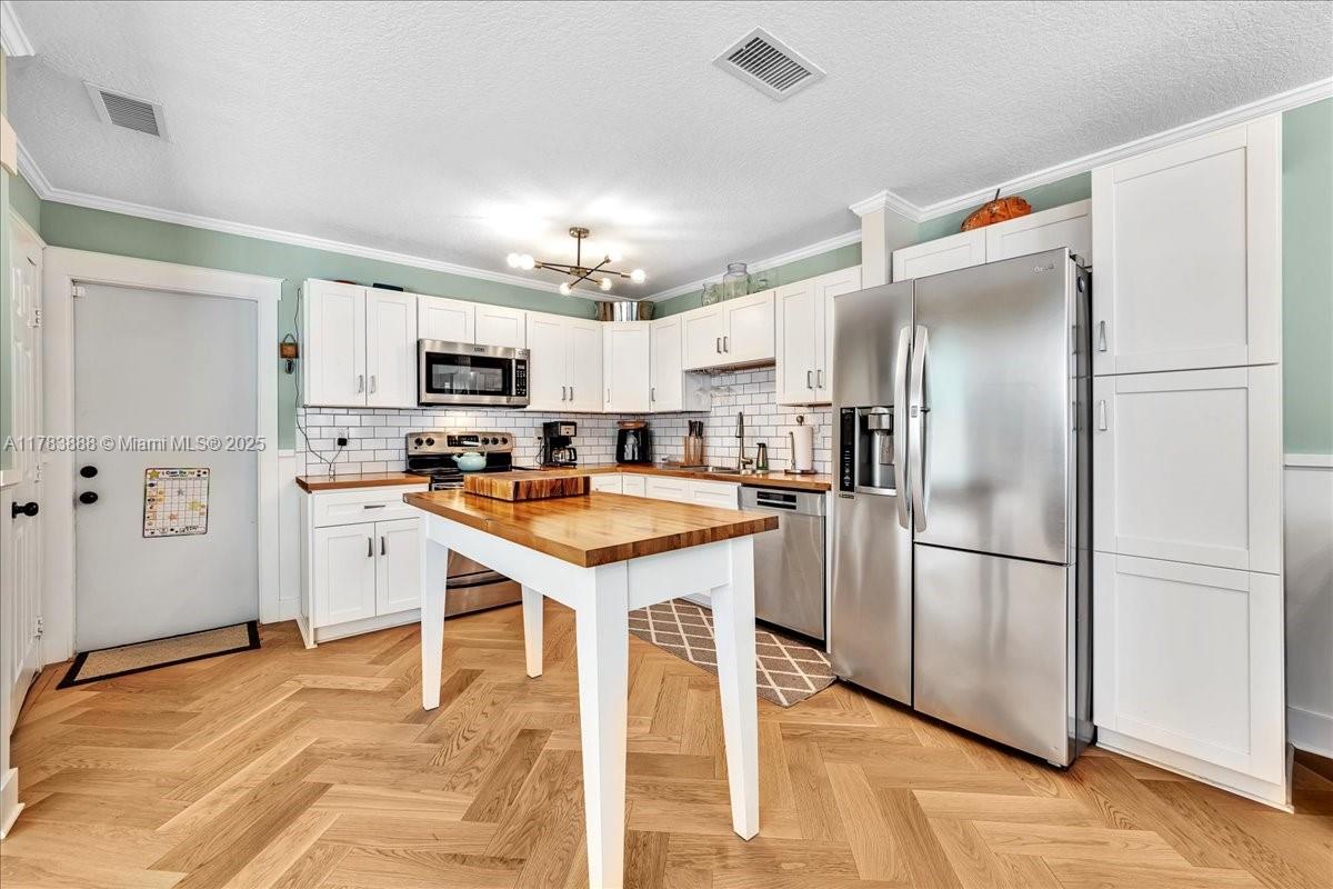 Substantially renovated 3BD/2.5BA corner-lot home in West Plantation! 2-car garage, open layout, crown molding, recessed LED lighting, custom built-ins, no popcorn ceilings & rich chevron wooden flooring. Gourmet kitchen w/butcher block counters, shaker cabinets, SS appliances & French doors. Expansive primary suite w/dual walk-in closets, Jacuzzi tub & sep. shower. Backyard features concrete landing, synthetic turf & lush landscaping and is an entertainer’s dream. Priced under $600K and easy to show.