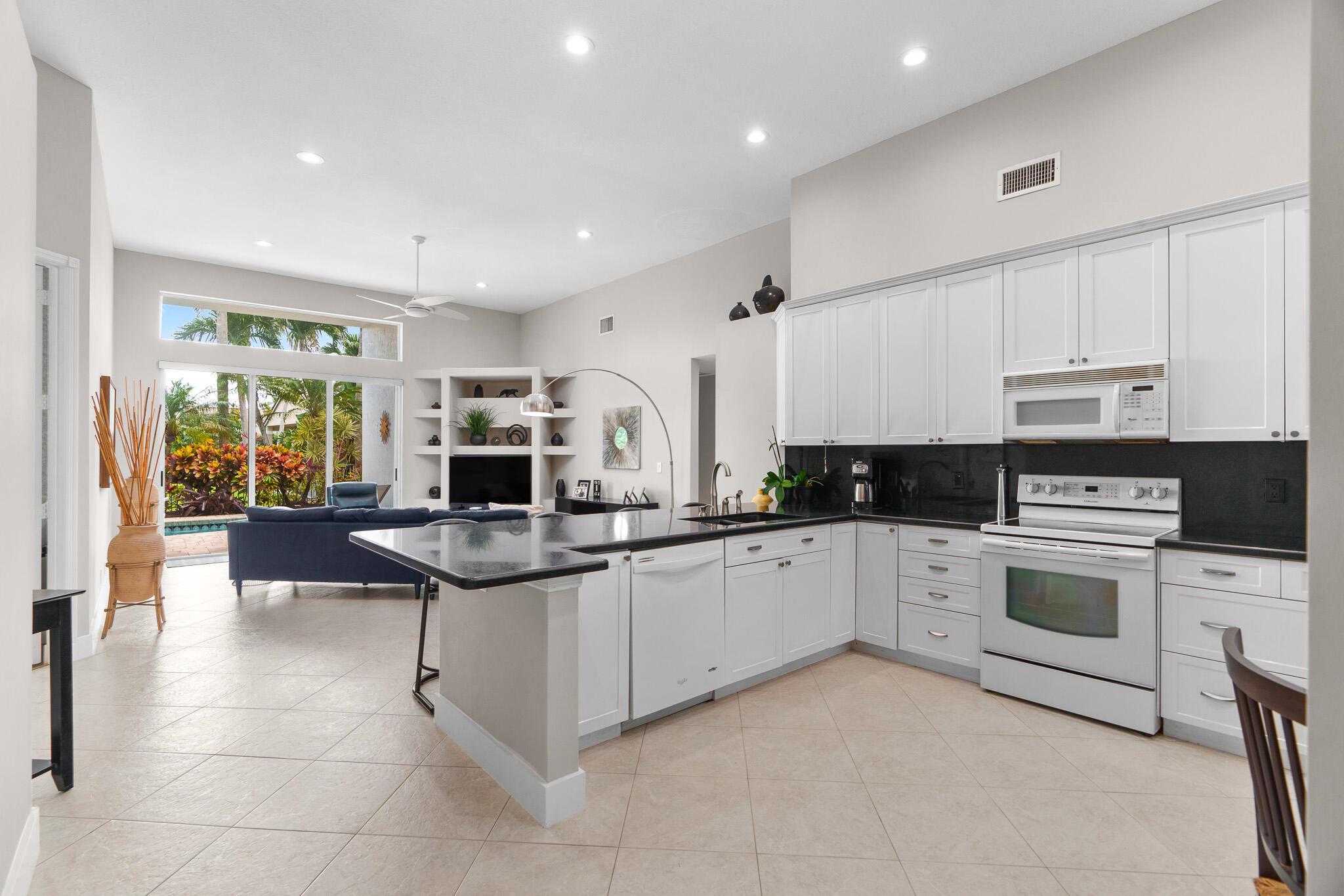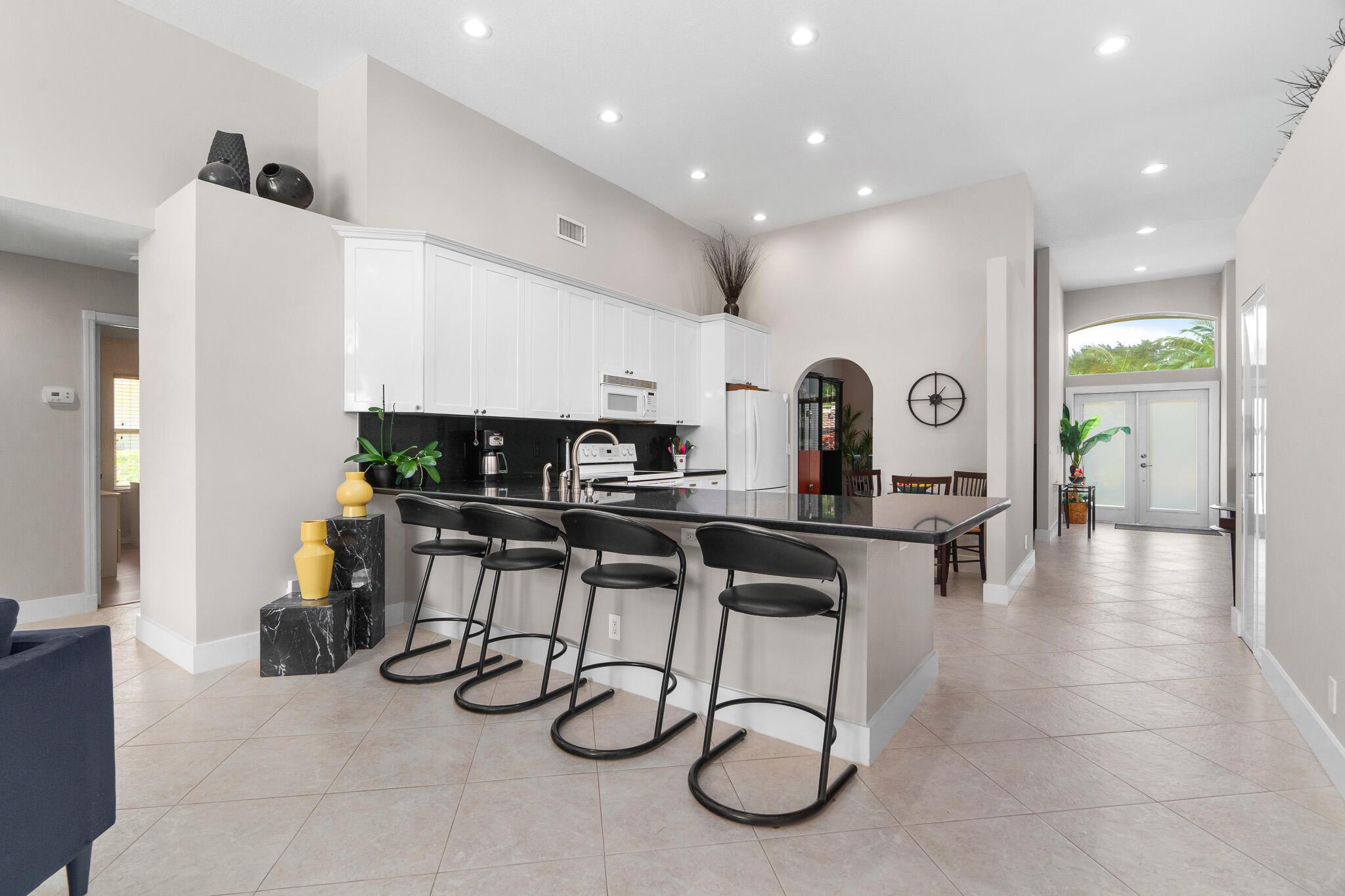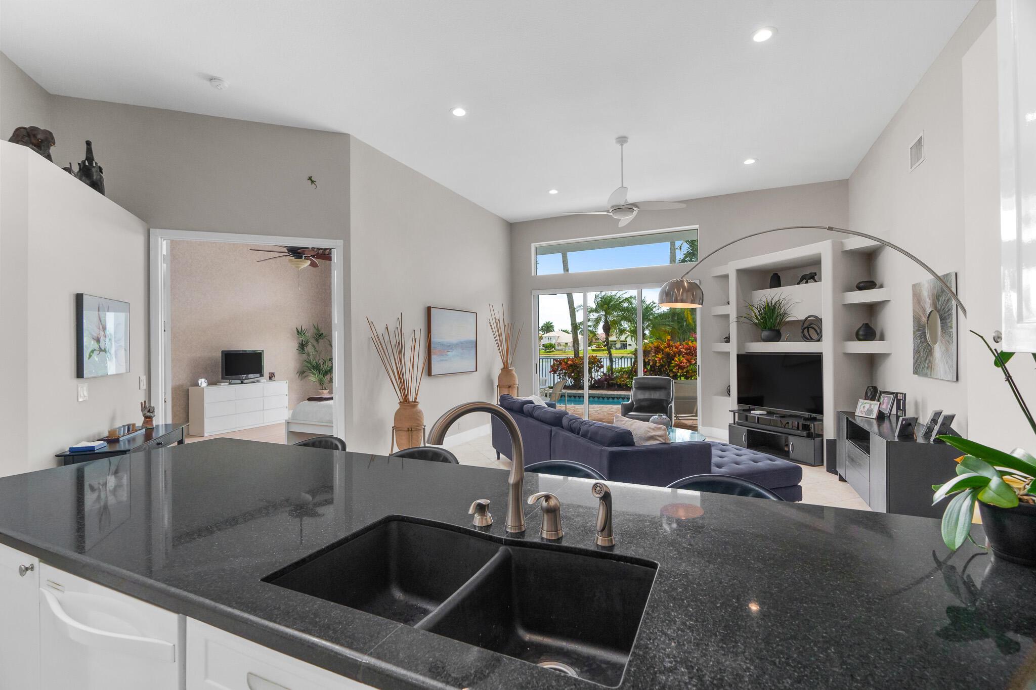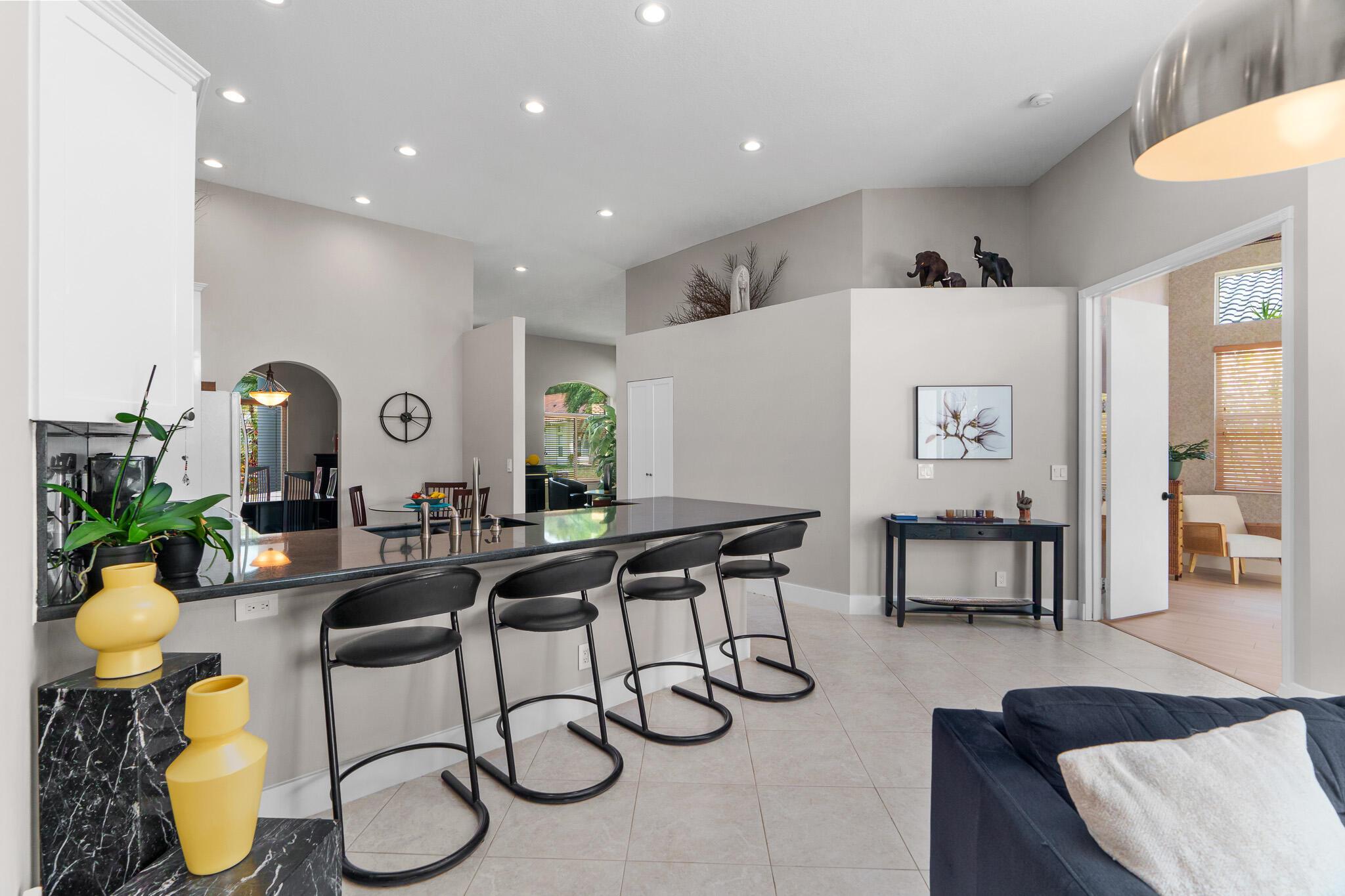 Claim your own piece of paradise! The best priced home in one of West Boca's most desirable gated communities, Boca Isles South. Updated & move in ready single story. Stunning long lake view lot; 4 bedrooms, Open & Bright layout with volume ceilings; Formal living room, Formal dinning, kitchen open to the spacious family room. Double door primary suite with 2 walk-in closets and updated luxury vinyl flooring. Lake views from all over including the 27ft lanai. Modern Kitchen; white shaker cabinets & black natural stone counters. Fully renovated modern cabana bathroom. Neutral tile in the living areas with modern baseboards. Updated LED recessed lighting. Hurricane protection for all the windows. New Modern Impact Front Door. Easy option to add a 5th room/office/den. Roof 2021 & AC 2018.