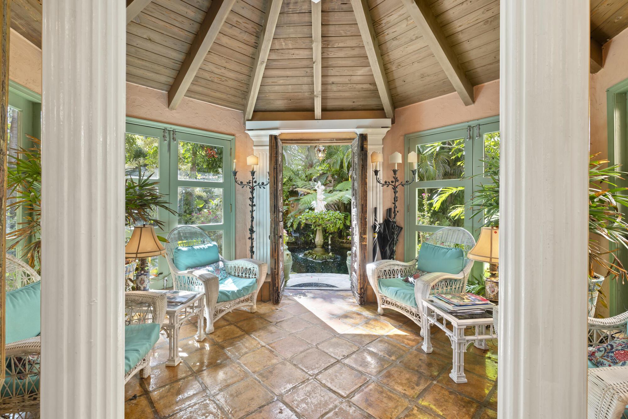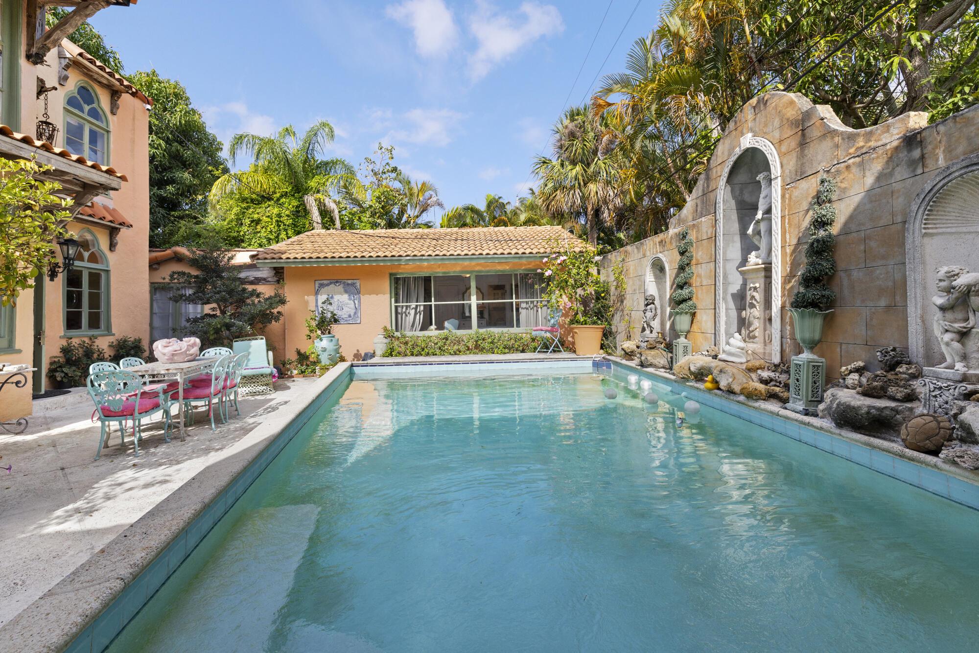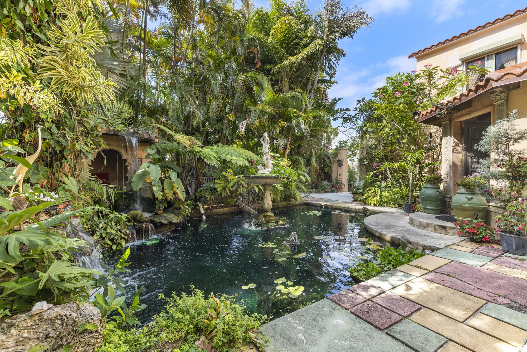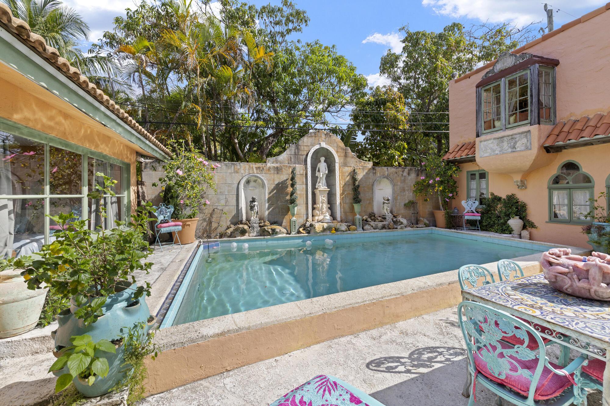 George and Ernestine Bensel commissioned this Spanish Colonial Masterpiece in 1925 with pecky cypress balconies, arcaded porches, fountains and walkways that adorn the grand interior spaces.6,400SF home 17,000SF lot is located across the intracoastal waterway. Upon arrive to this coral-colored Spanish Eclectic you will be greeted by a large koi-pond with hidden Mizner grotto and waterfall. Enter the home through carved pecky cypress doors into a cathedral ceiling atrium with an inspirating garden of handmade tiles leading into an oversized foyer to receive guest. Great entertainment home or a remarkable bed and breakfast with 7 total bedrooms and 5.5 baths pool-side cabana and guest house outdoor dining area 4 separate outdoor entertainment areas, walled, with 2-ornately gated driveways.