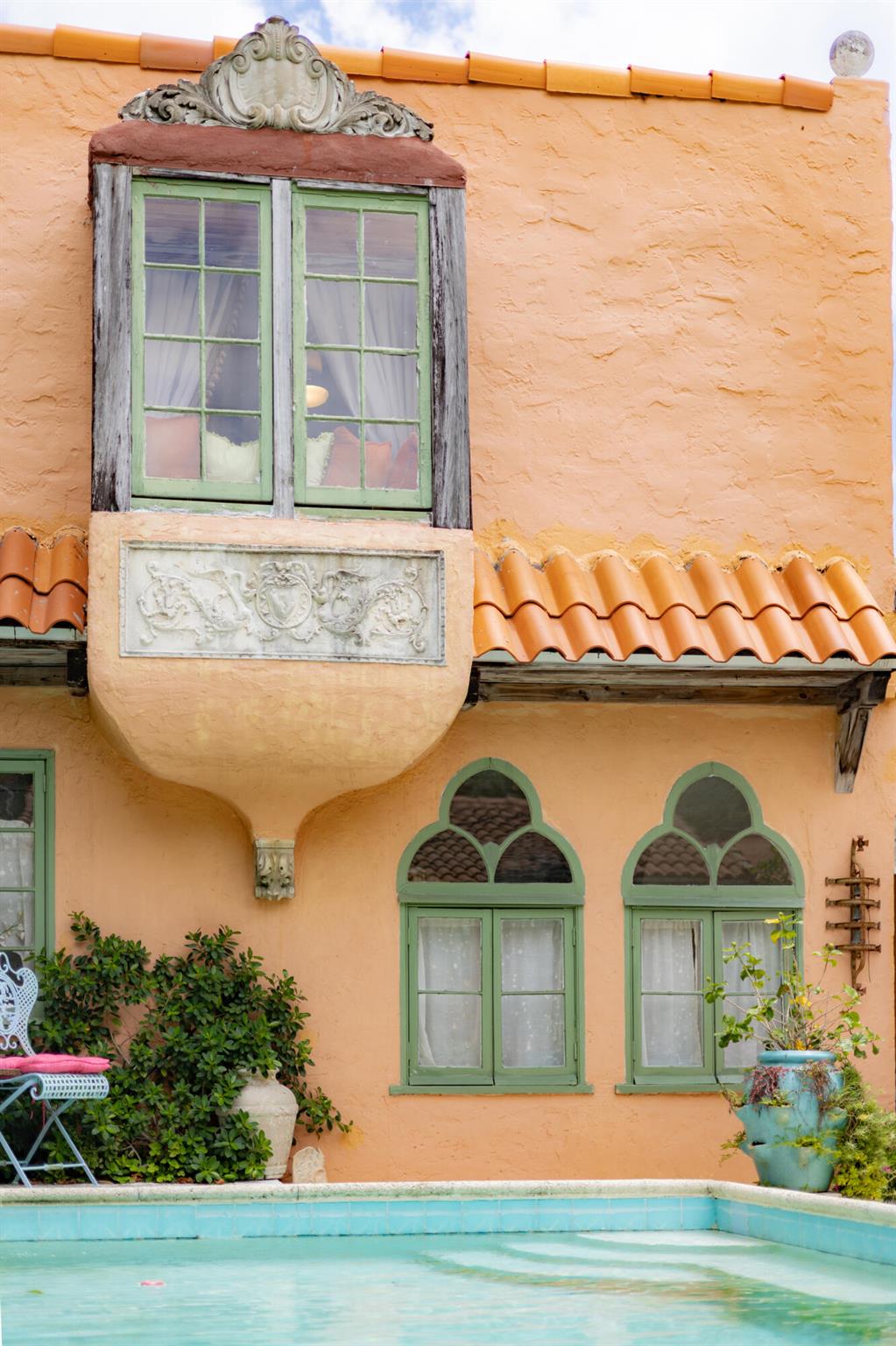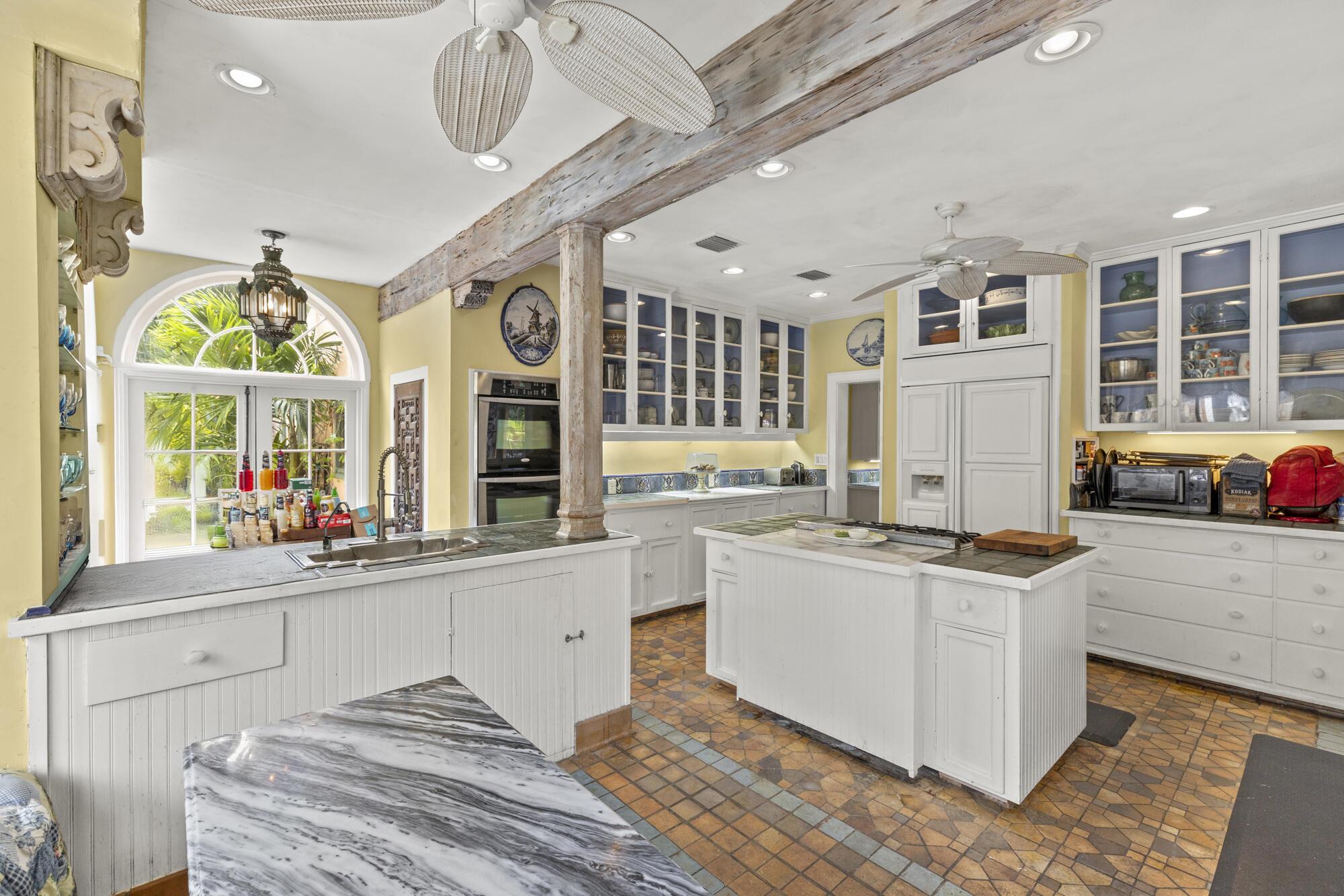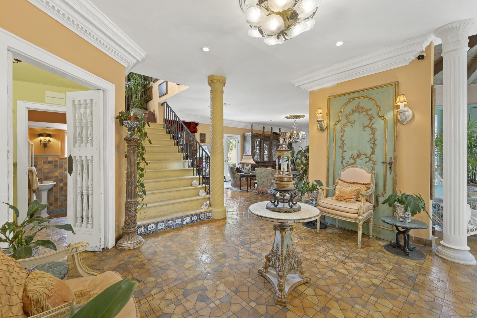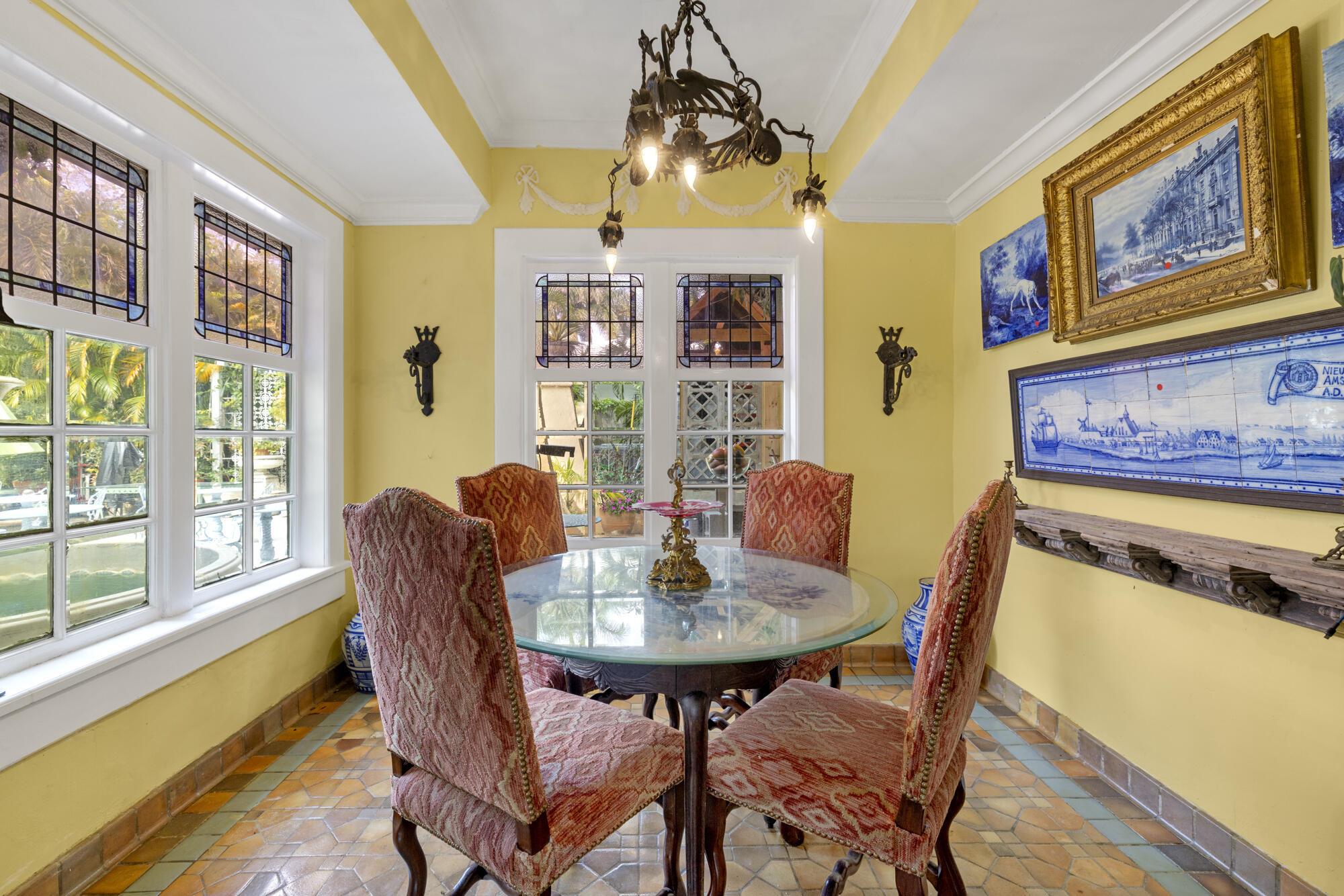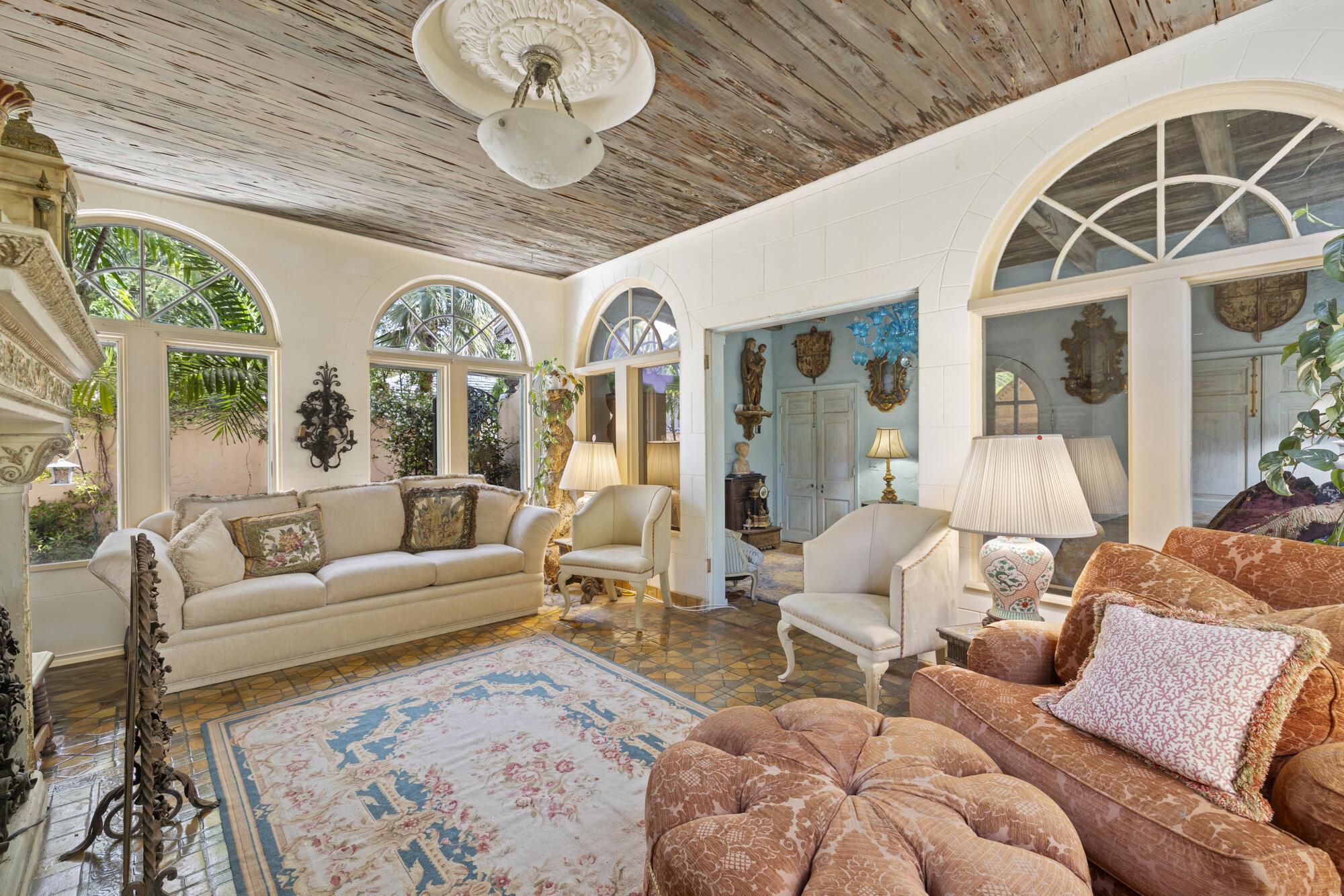 George and Ernestine Bensel commissioned this Spanish Colonial Masterpiece in 1925 with pecky cypress balconies, arcaded porches, fountains and walkways that adorn the grand interior spaces.6,400SF home 17,000SF lot is located across the intracoastal waterway. Upon arrive to this coral-colored Spanish Eclectic you will be greeted by a large koi-pond with hidden Mizner grotto and waterfall. Enter the home through carved pecky cypress doors into a cathedral ceiling atrium with an inspirating garden of handmade tiles leading into an oversized foyer to receive guest. Great entertainment home or a remarkable bed and breakfast with 7 total bedrooms and 5.5 baths pool-side cabana and guest house outdoor dining area 4 separate outdoor entertainment areas, walled, with 2-ornately gated driveways.