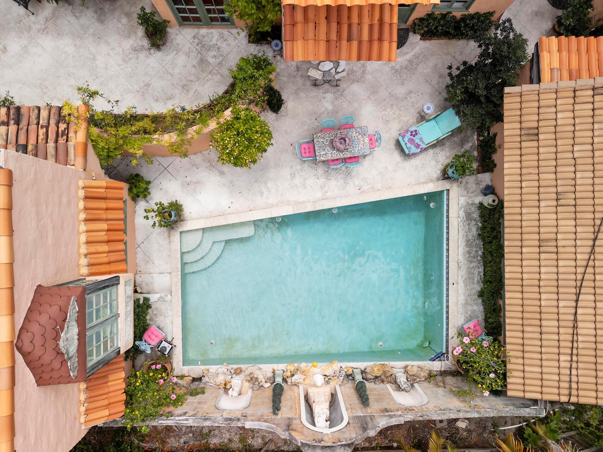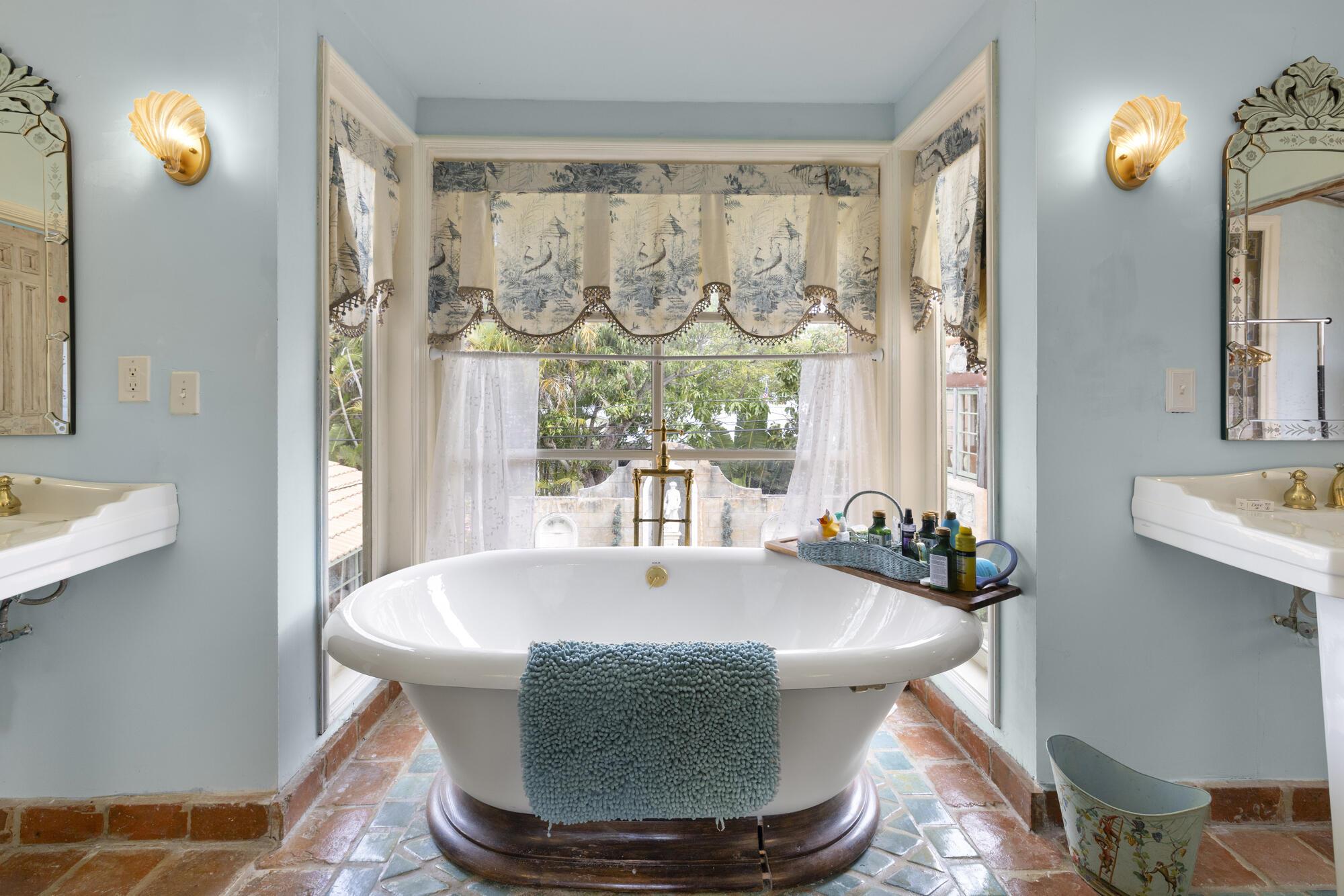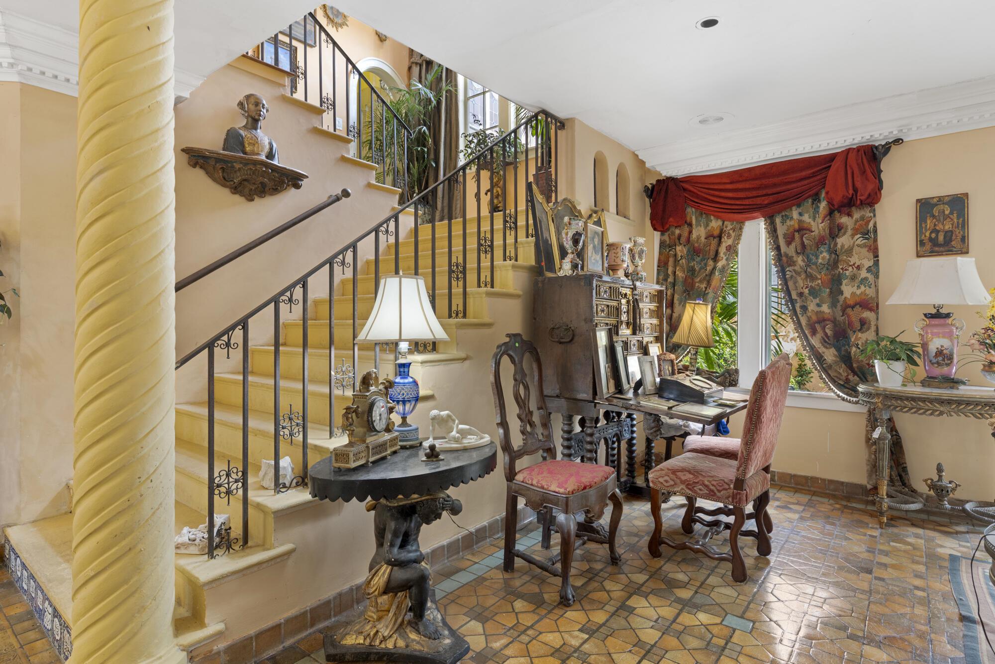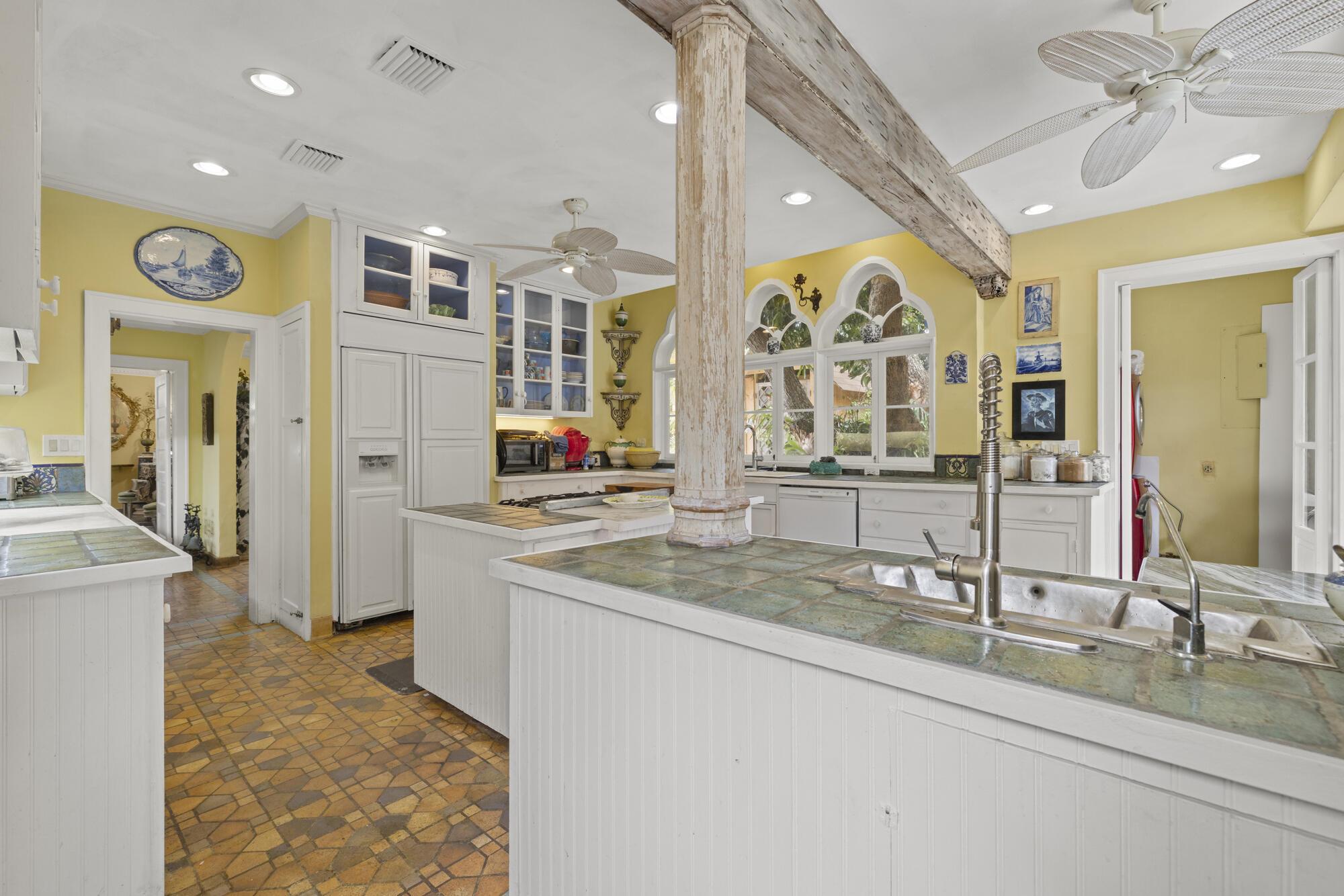 George and Ernestine Bensel commissioned this Spanish Colonial Masterpiece in 1925 with pecky cypress balconies, arcaded porches, fountains and walkways that adorn the grand interior spaces.6,400SF home 17,000SF lot is located across the intracoastal waterway. Upon arrive to this coral-colored Spanish Eclectic you will be greeted by a large koi-pond with hidden Mizner grotto and waterfall. Enter the home through carved pecky cypress doors into a cathedral ceiling atrium with an inspirating garden of handmade tiles leading into an oversized foyer to receive guest. Great entertainment home or a remarkable bed and breakfast with 7 total bedrooms and 5.5 baths pool-side cabana and guest house outdoor dining area 4 separate outdoor entertainment areas, walled, with 2-ornately gated driveways.