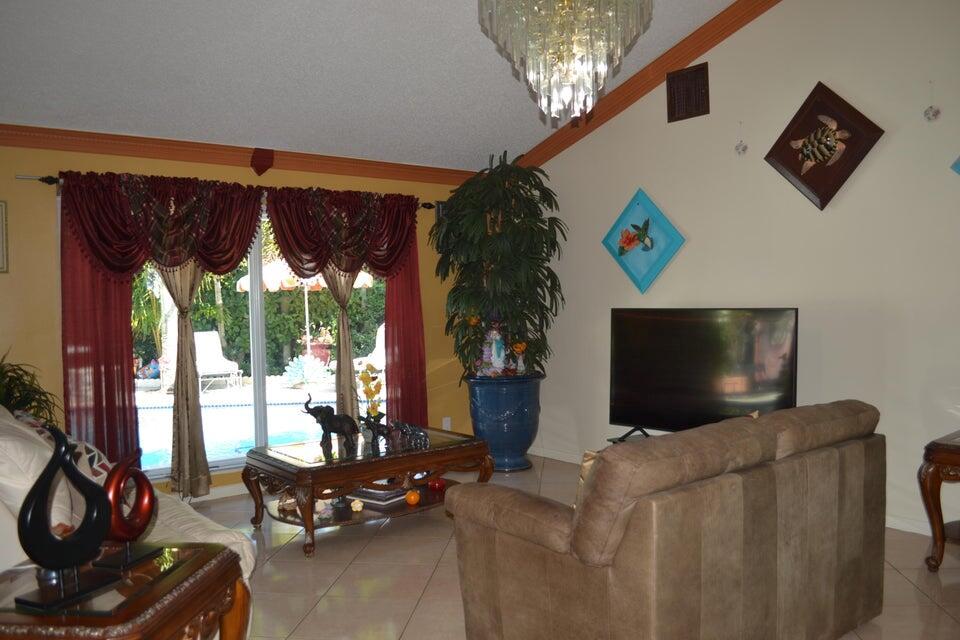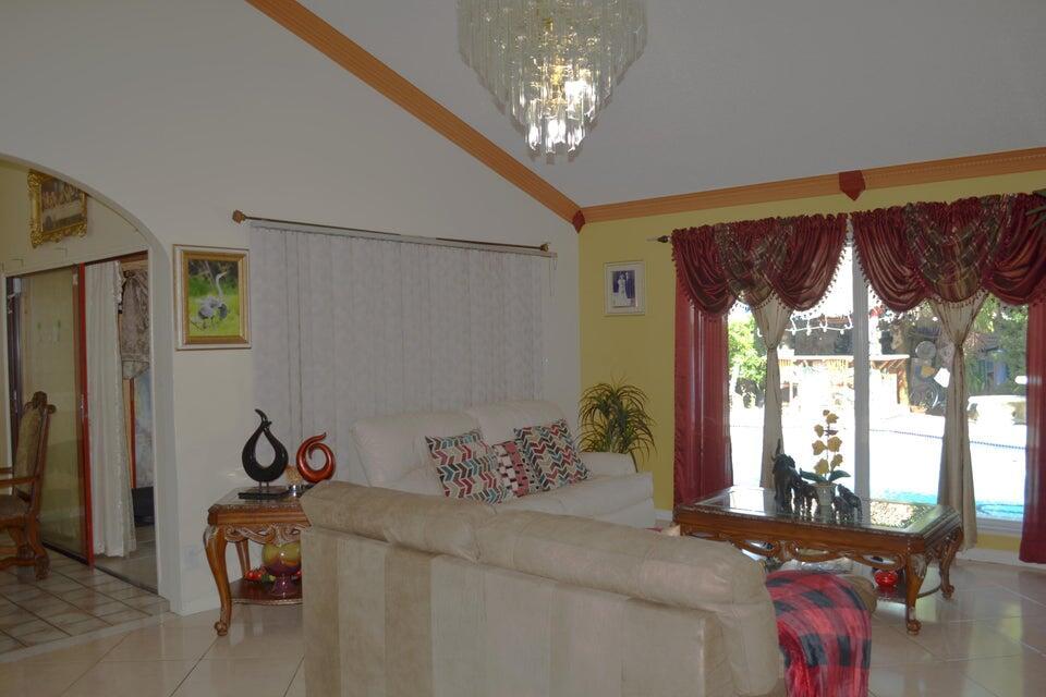 Welcome to your dream home the perfect location in a corner lot! This stunning 3-bedroom 2-bathroom and a den/office has been maintained and is ready for you to move in. This house has beautiful features: tiles throughout the home, vaulted ceilings, kitchen with upgraded cabinets, granite countertop, stainless-steel appliances and renovated both bathrooms. The main bedroom has a huge space with breathtaking view of the inground pool. Has fruits trees like Mango, Avocado, Soursop, Coconut and more. Parking space for RV and Boat. This house won't last long.