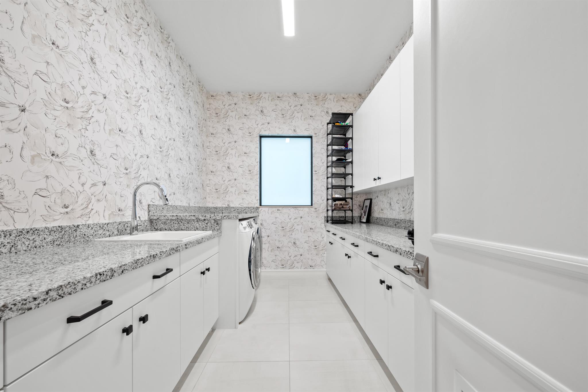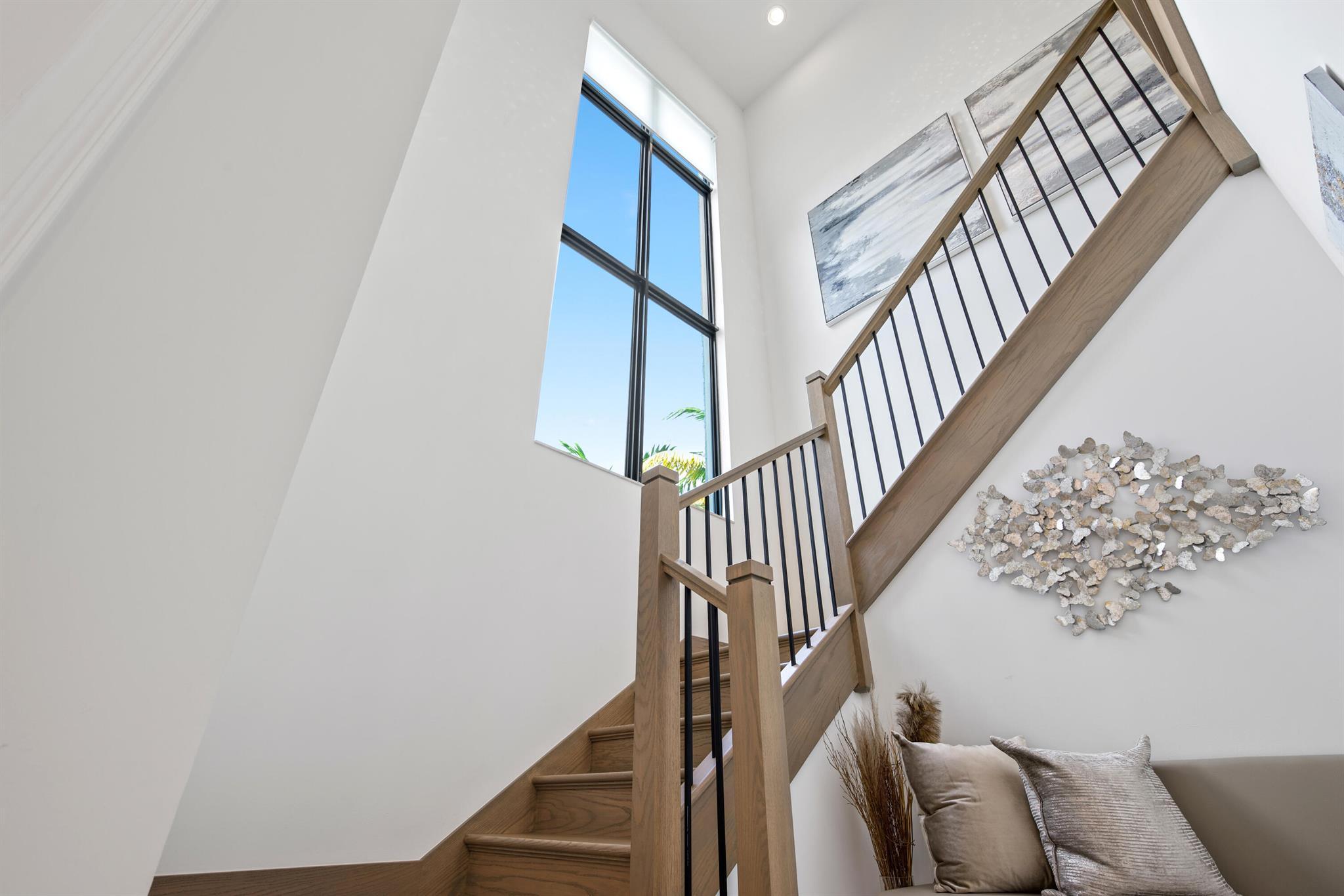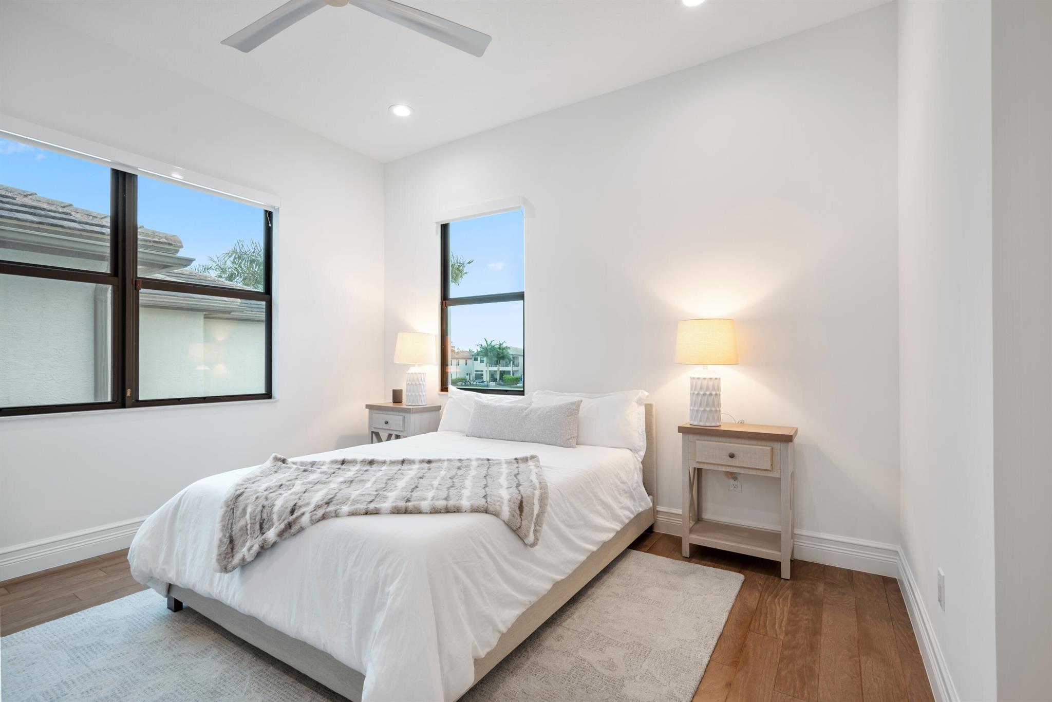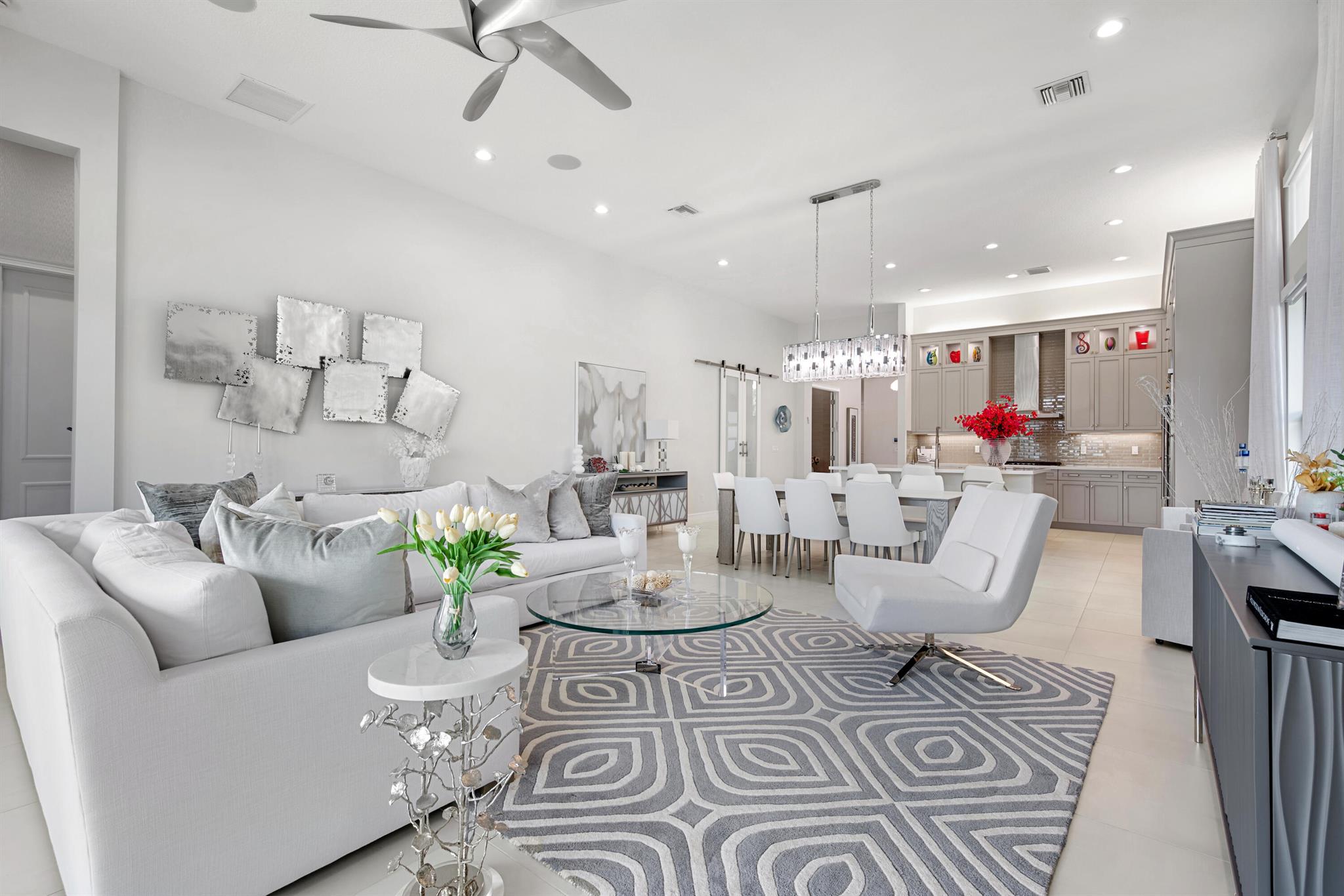 Welcome to 9046 Chauvet Way, an exquisite lakefront residence in the prestigious Boca Bridges community. A sophisticated example of contemporary luxury, this rarely available Adriana model features 5 bedrooms, 4 and a half bathrooms, den/office, chef's kitchen and loft. An expanded circular driveway sets the stage for the elegance within. Step thru the grand two-story entrance into a light-filled, airy foyer that immediately impresses. A decadent den/office offers the perfect blend of comfort and functionality for work or relaxation. The chef's kitchen is a culinary dream, outfitted with premium KitchenAid appliances, an expansive island, custom cabinetry with recessed lighting, and a walk-in pantry with stylish barn doors.
