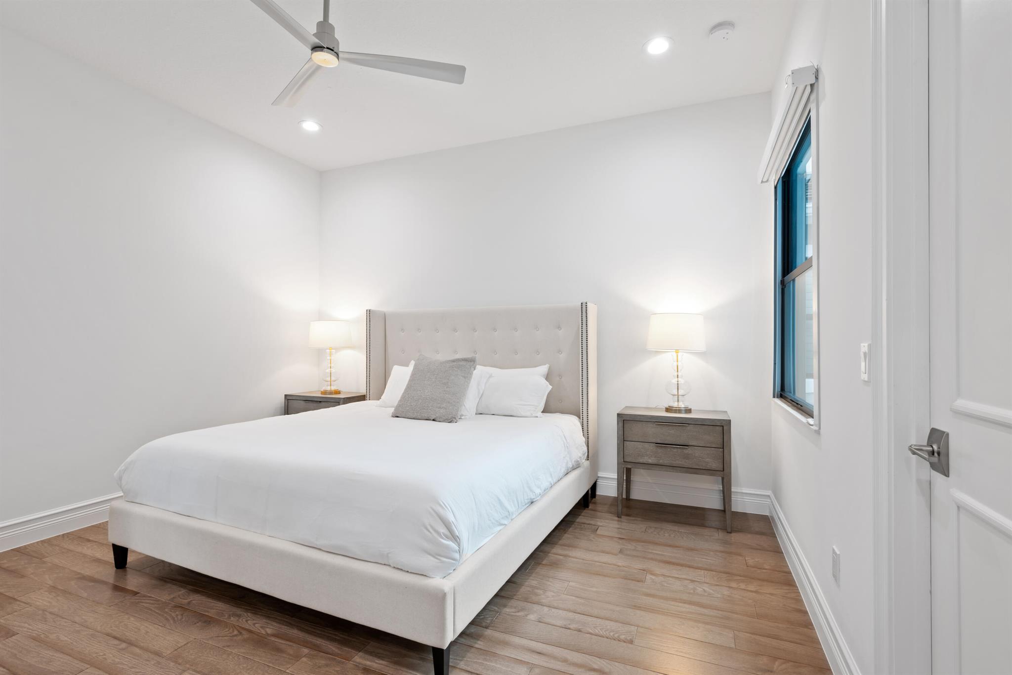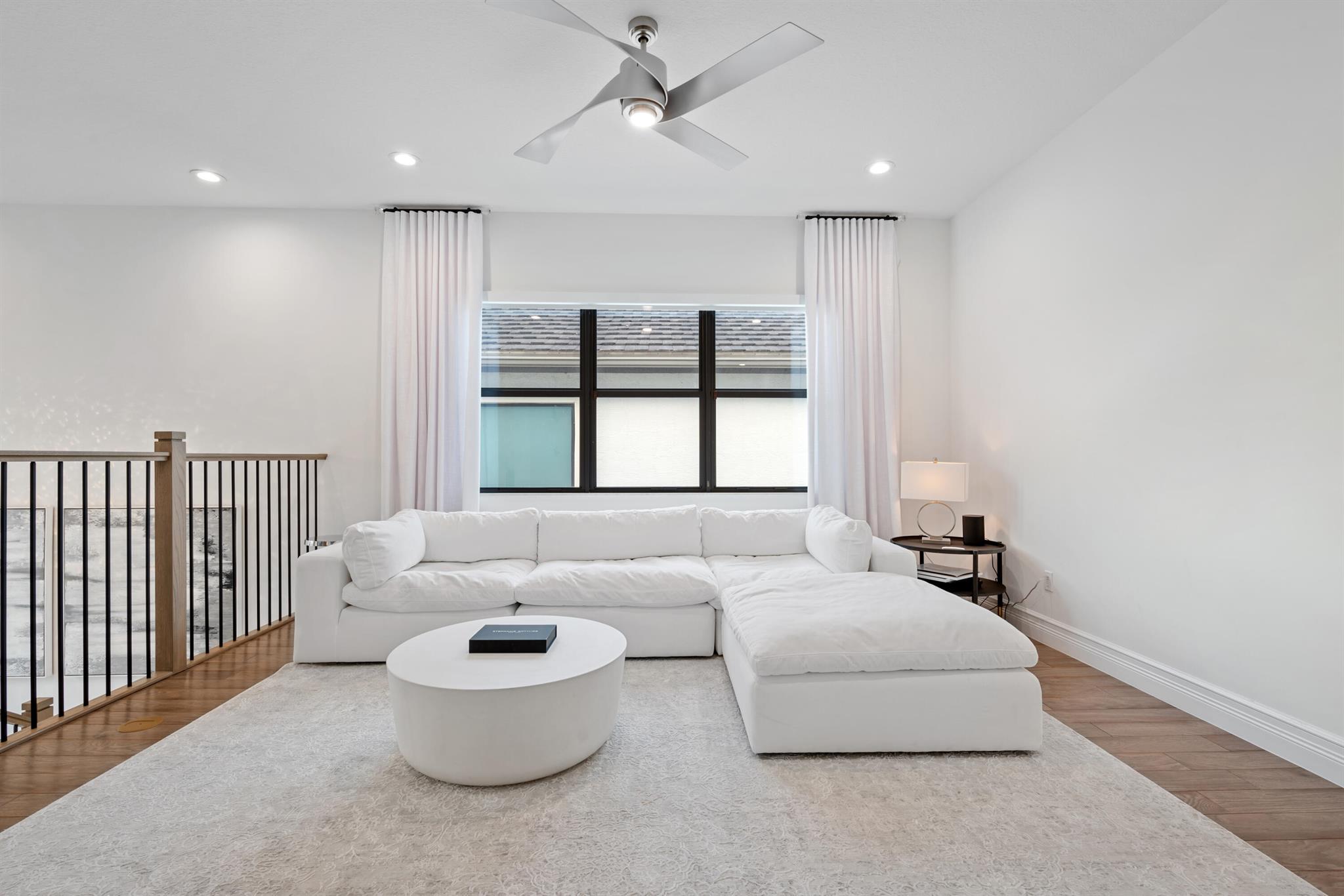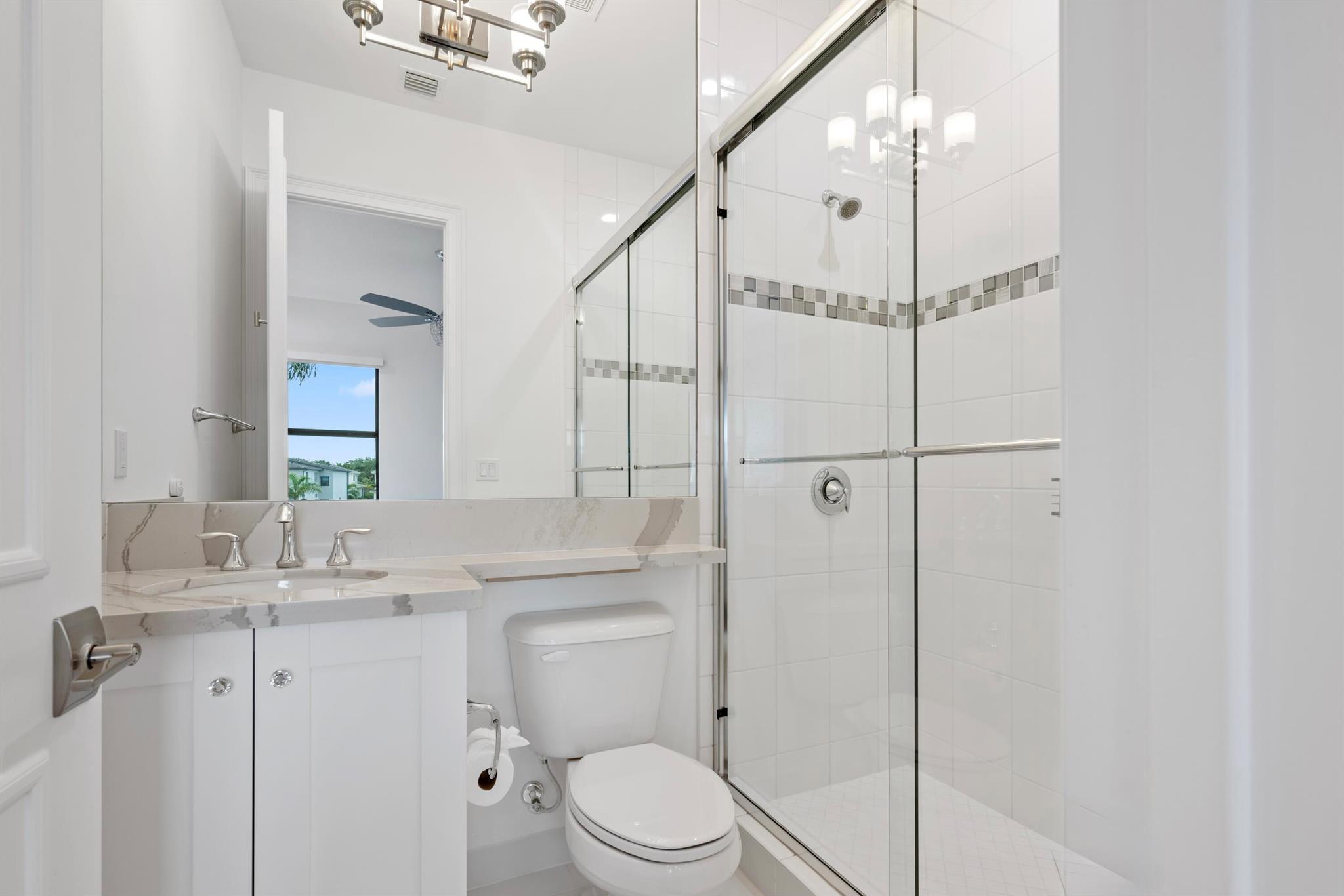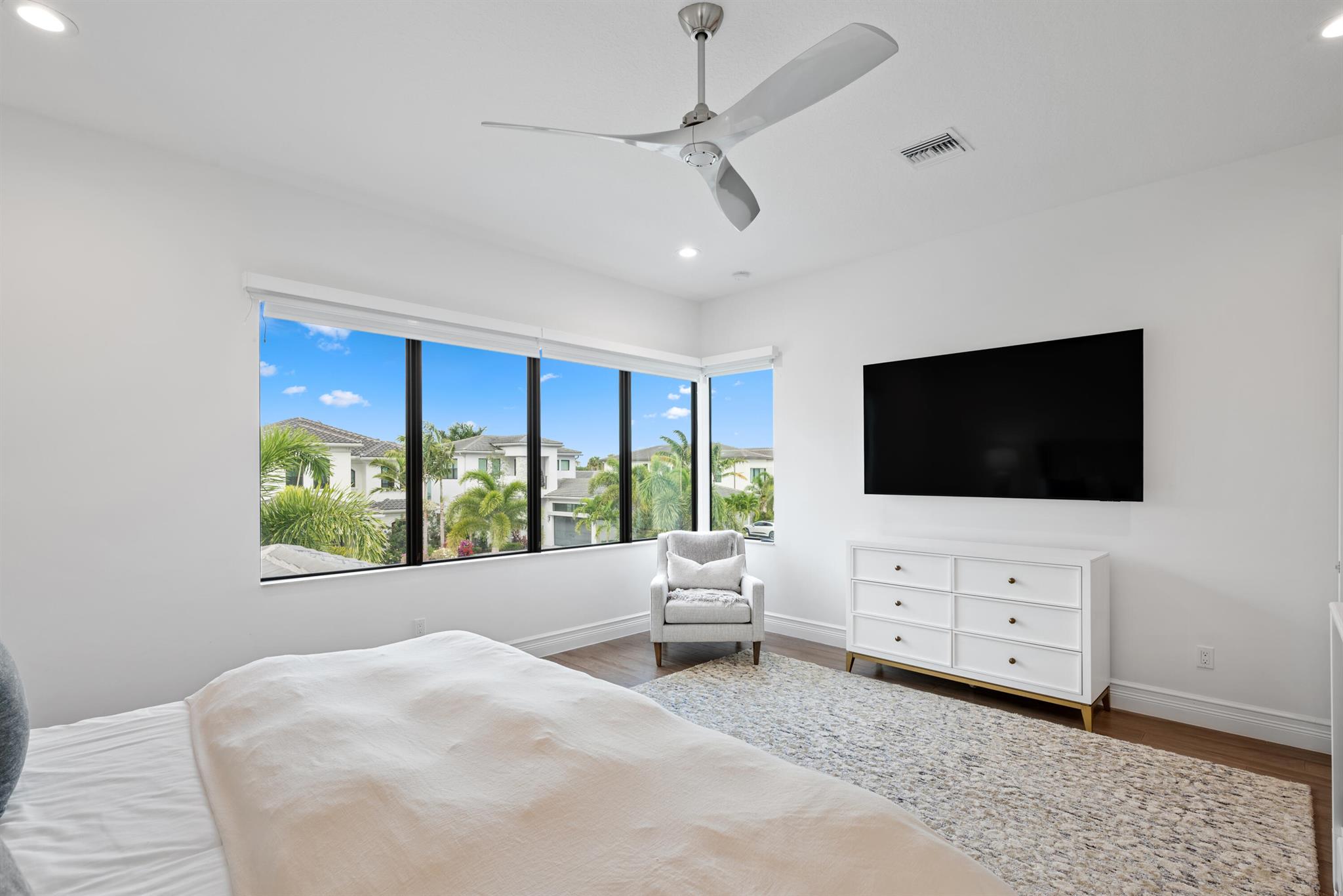 Welcome to 9046 Chauvet Way, an exquisite lakefront residence in the prestigious Boca Bridges community. A sophisticated example of contemporary luxury, this rarely available Adriana model features 5 bedrooms, 4 and a half bathrooms, den/office, chef's kitchen and loft. An expanded circular driveway sets the stage for the elegance within. Step thru the grand two-story entrance into a light-filled, airy foyer that immediately impresses. A decadent den/office offers the perfect blend of comfort and functionality for work or relaxation. The chef's kitchen is a culinary dream, outfitted with premium KitchenAid appliances, an expansive island, custom cabinetry with recessed lighting, and a walk-in pantry with stylish barn doors.