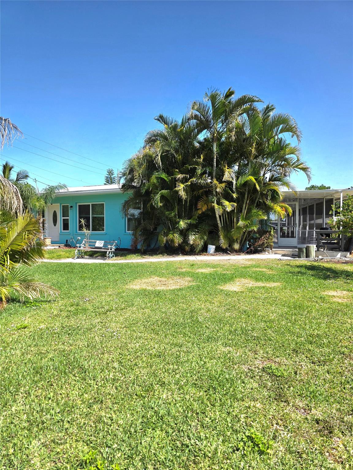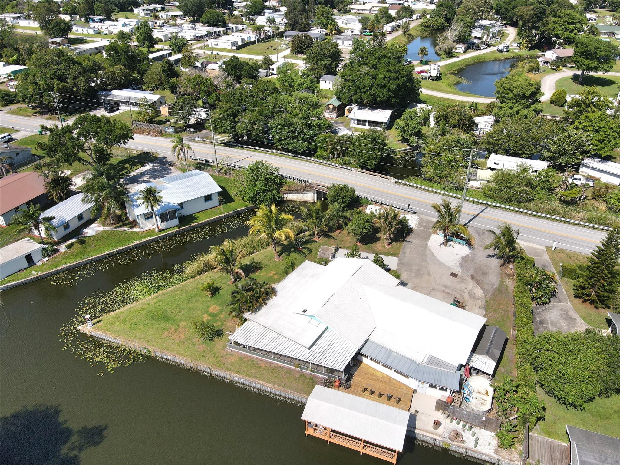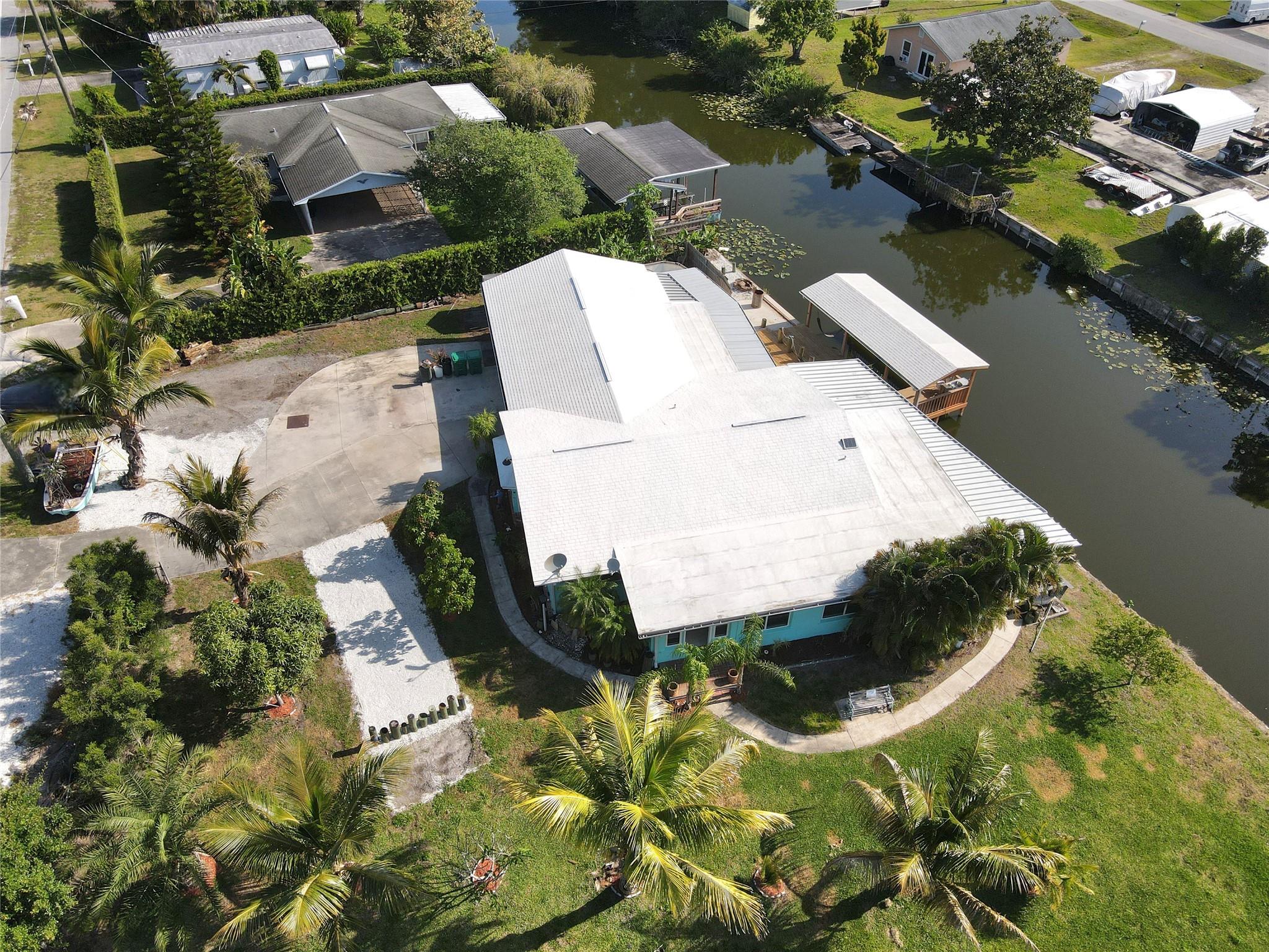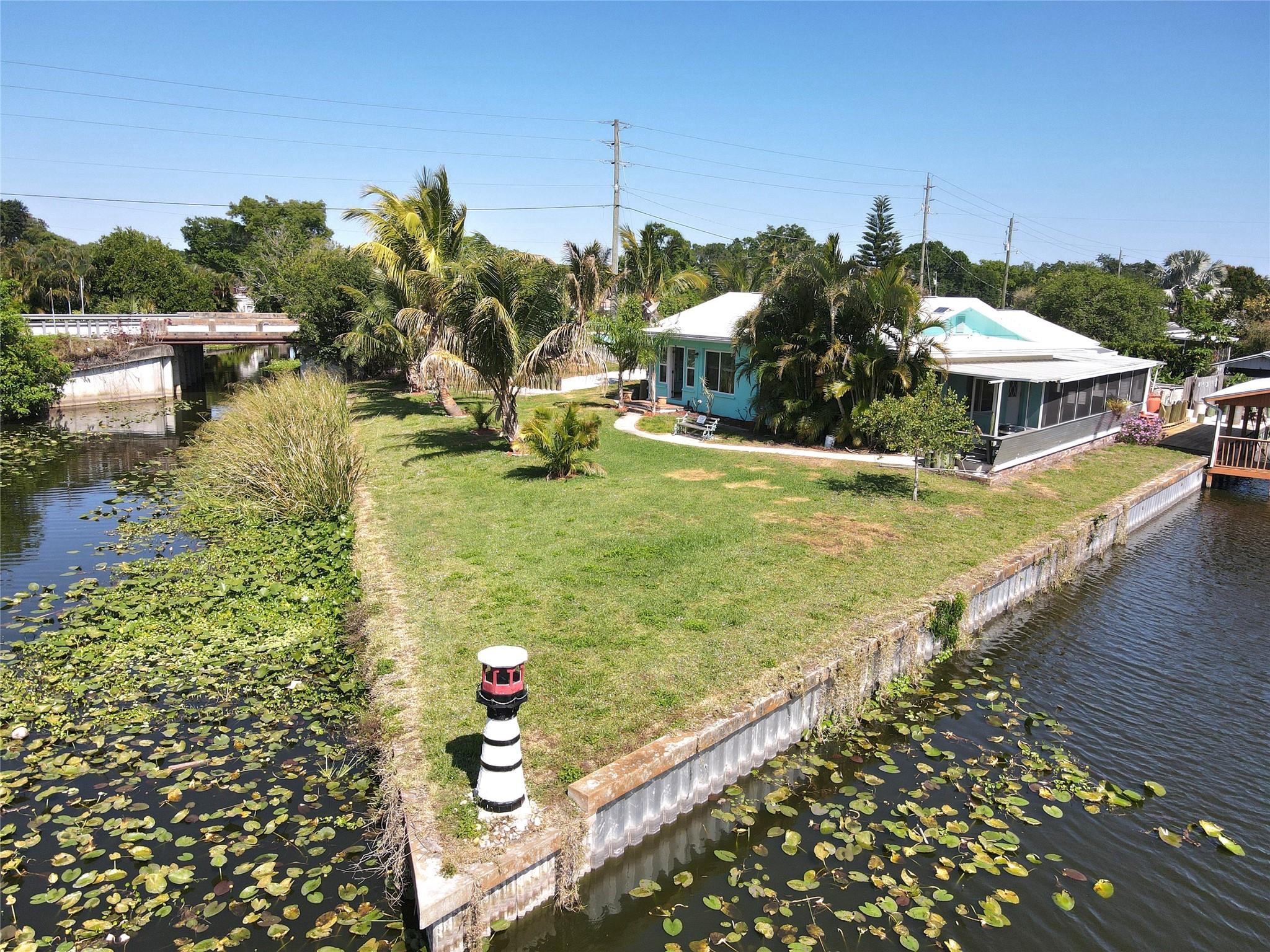~Treasure Island~ Waterfront Paradise with Concrete Fortress Charm. This well-maintained waterfront gem offers the perfect Florida lifestyle with two bedrooms and two bathrooms. Solidly built with concrete block walls filled with concrete for ultimate durability, this home features hurricane windows and a recently sealed roof, providing peace of mind during storm season. Step outside to your personal oasis featuring a seawall (replaced in 2021), boat house with working lift, and fish cleaning station—perfect for the avid angler! Enjoy the 20-foot screened porch, saltwater above-ground pool, and bar/spa room for entertaining or unwinding after a day on the water.