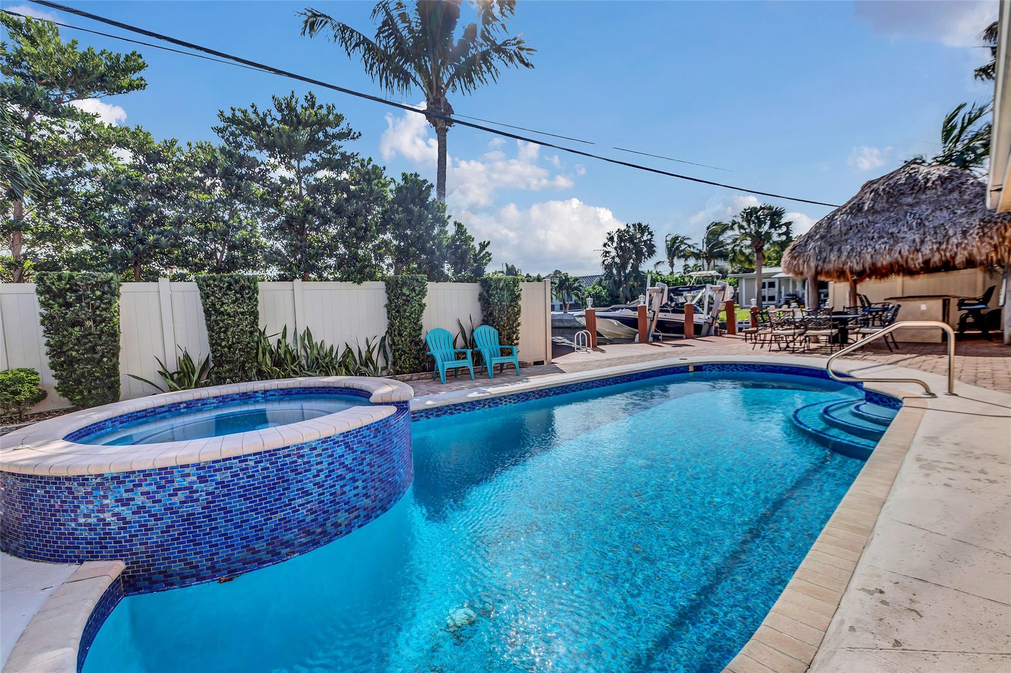 OCEAN ACCESS NO FIXED BRIDGES in prestigious Pompano Isles!! Beautifully Renovated 4/3 with office (or bedroom). Take a walk through paradise in this light, bright happy place! Free form, heated, private pool with Tiki hut and bar, Impact windows and doors, upgraded bathrooms with cabana bath, new floors, premium cabinets and appliances, Large composite dock with boatlift. Great neighborhood, close to EVERYTHING! Currently used as an active Short term rental. THIS IS A TURN KEY OPPORTUNITY! This property has it all!