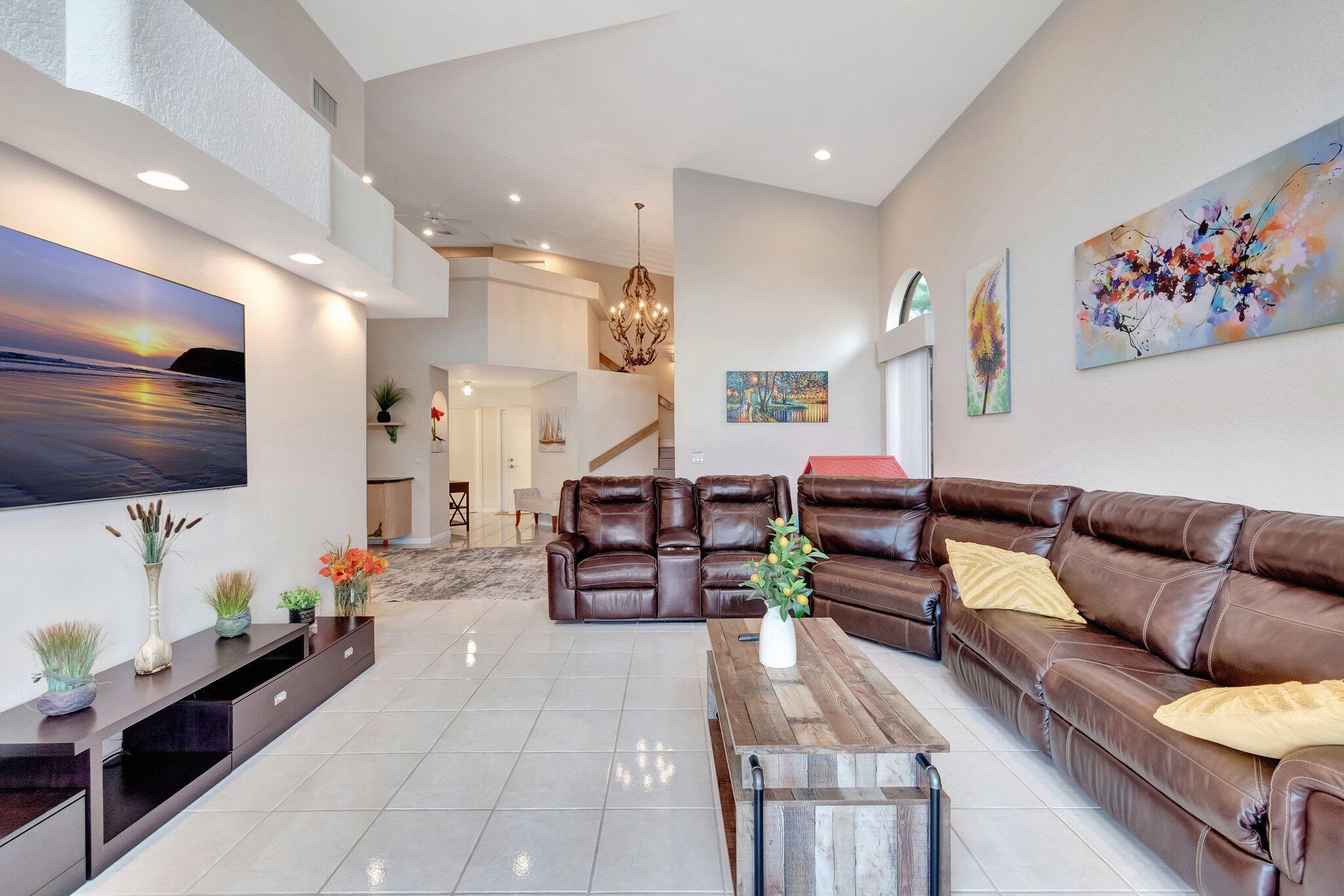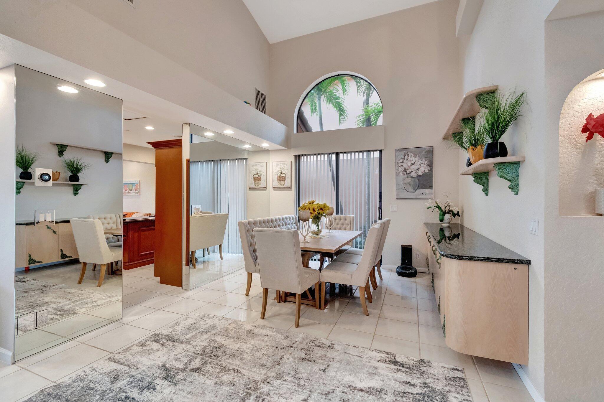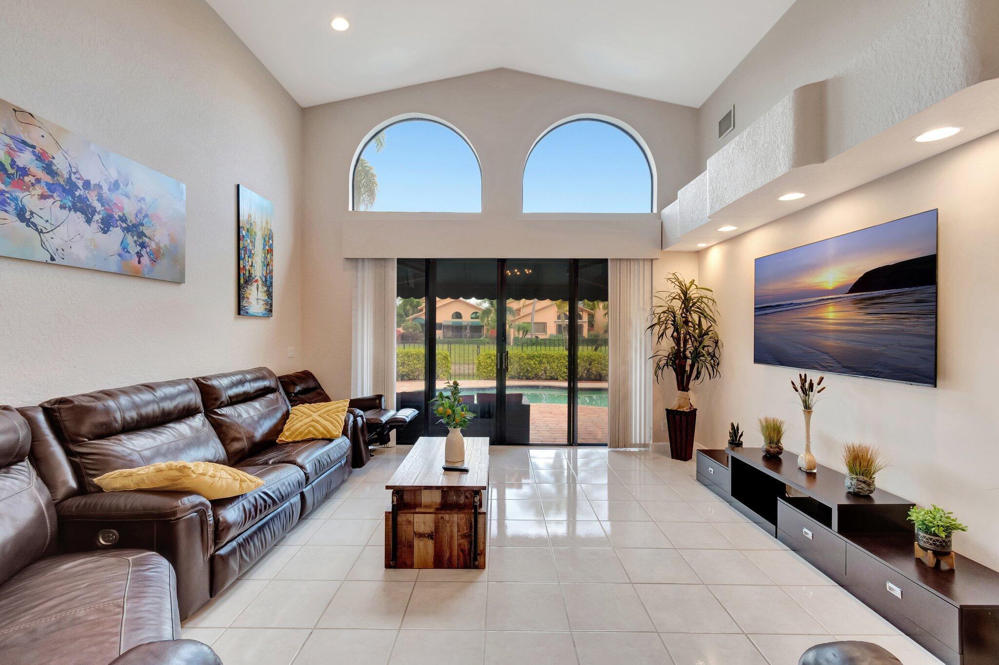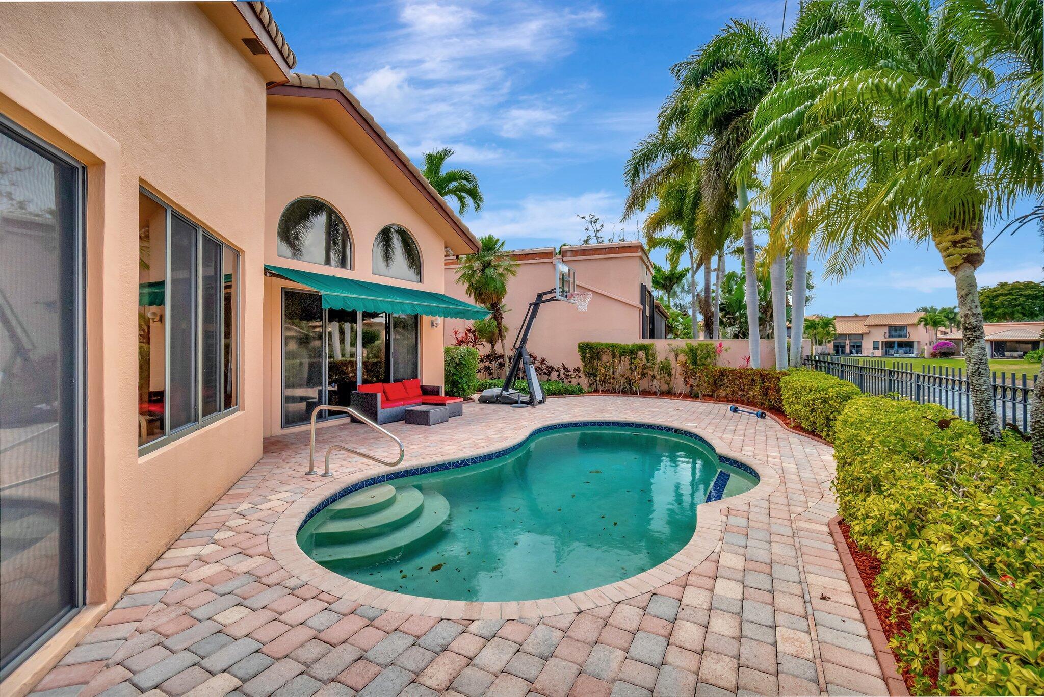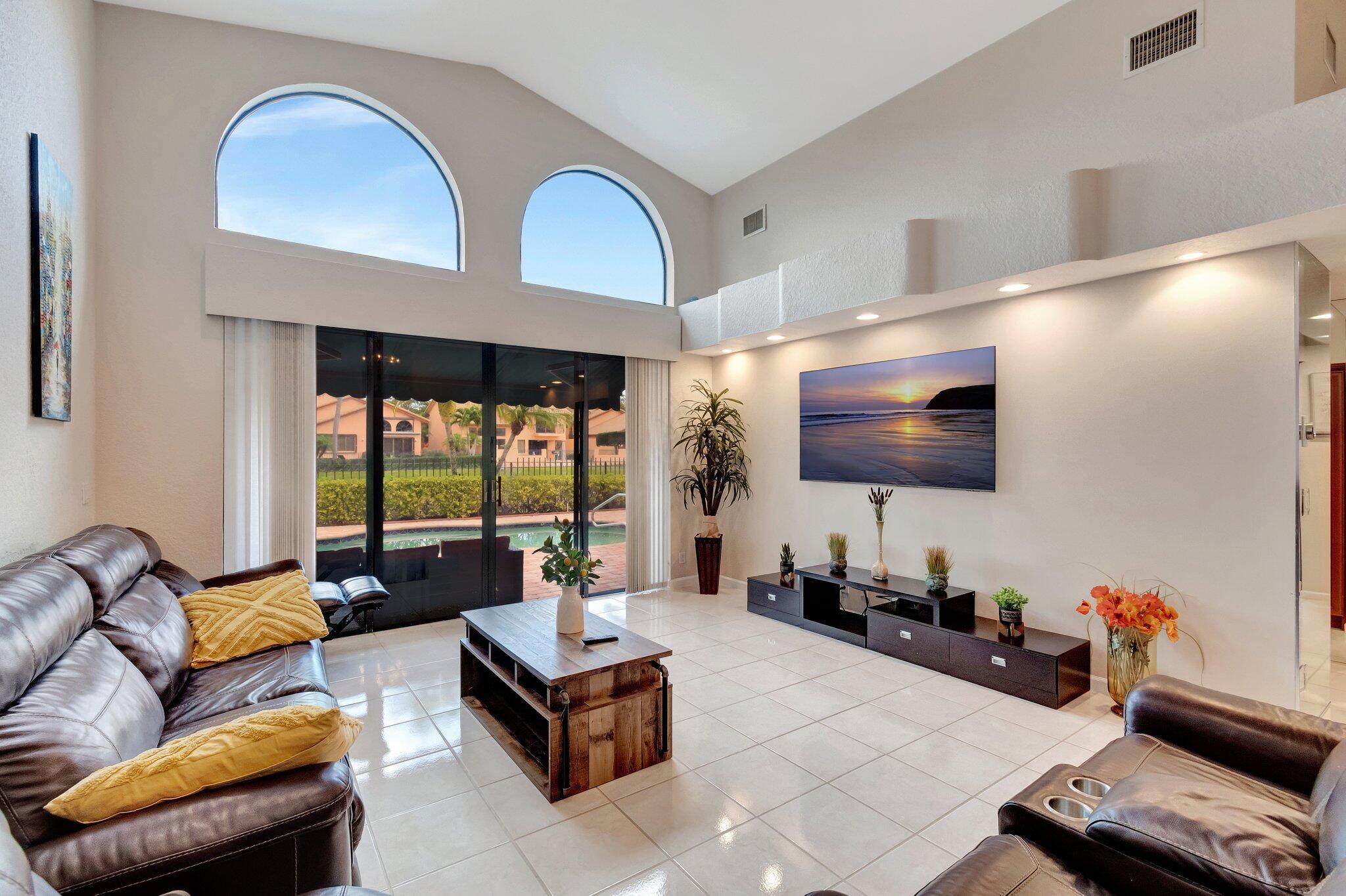 Experience the best of Florida living in this beautifully appointed single-family home, nestled in the prestigious, guard-gated community of Boca Pointe--where Country Club membership is optional. Boasting panoramic lake views, pool, and an expansive al fresco lounging area, this home is perfect for both relaxing and entertaining in style.With 3 bedrooms, 2.1 bathrooms, and over 2,857 sq. ft. of thoughtfully designed living space, this residence offers a seamless open-concept layout ideal for family gatherings and casual get-togethers. The updated kitchen features a large center island, 42'' cabinetry, granite countertops, stainless steel appliances, and ample storage space.