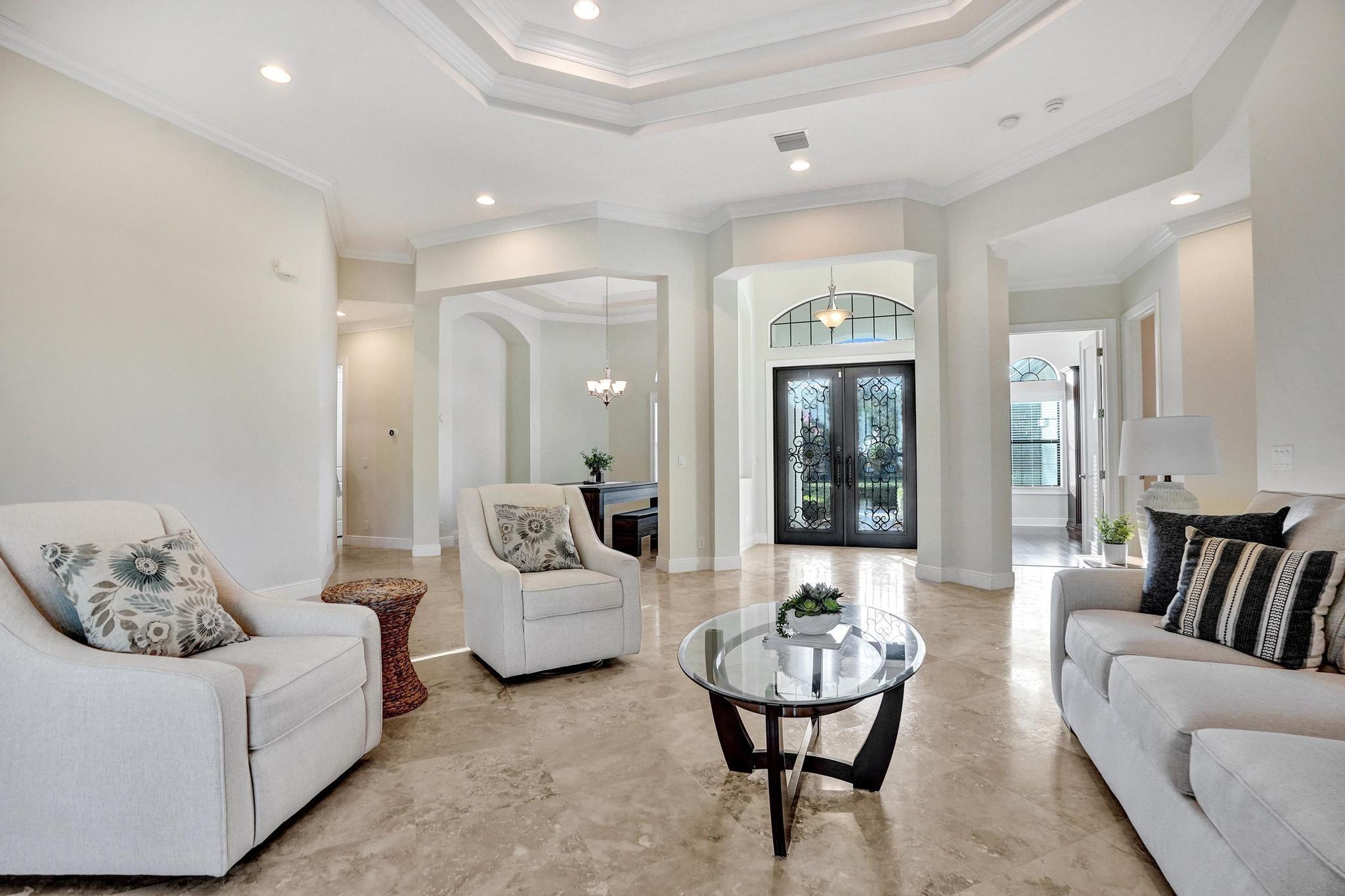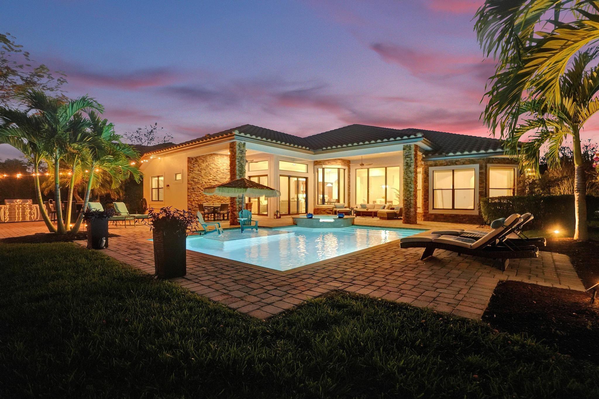 PARKLAND GOLF & COUNTRY CLUB ONE-OF-A-KIND TOLL BROTHERSS ROYALE MODEL (ONE STORY) BUILT ON PREMIUM 18,312 SF LOT, Heated Pool & Spa, & fabulous views of 3 Community Waterfall Fountains and simply enchanting and entertaining backyard. Impact Windows and Doors, Custom Wrought Iron Double Door Entry. Marble Floors throughout main living areas & wood flooring in bedrooms. Gourmet Kitchen w/Wolf 6 Burner Gas Cooktop & Hood, Wolf Double Wall Ovens, Wolf Microwave, Sub-Zero Fridge with Ice & Water Dispenser, Bosch Dishwasher. Primary Bedroom Suite w/2 Walk-in Closets, French Door to Patio, Primary Bath has Jetted Tub, Two Separate Vanities. Triple Split Floor Plan. *5th Bedroom is Office w/ Built-ins, Bedroom #2 is separate with WIC, Bedrooms #3 & #4 have J&J Bath. Resort Style Amenities.