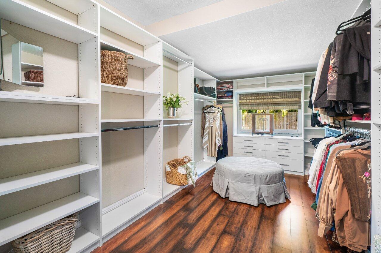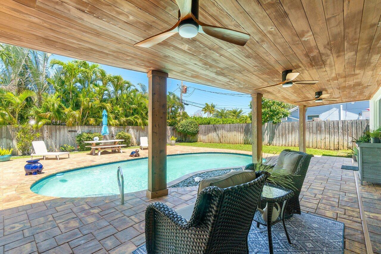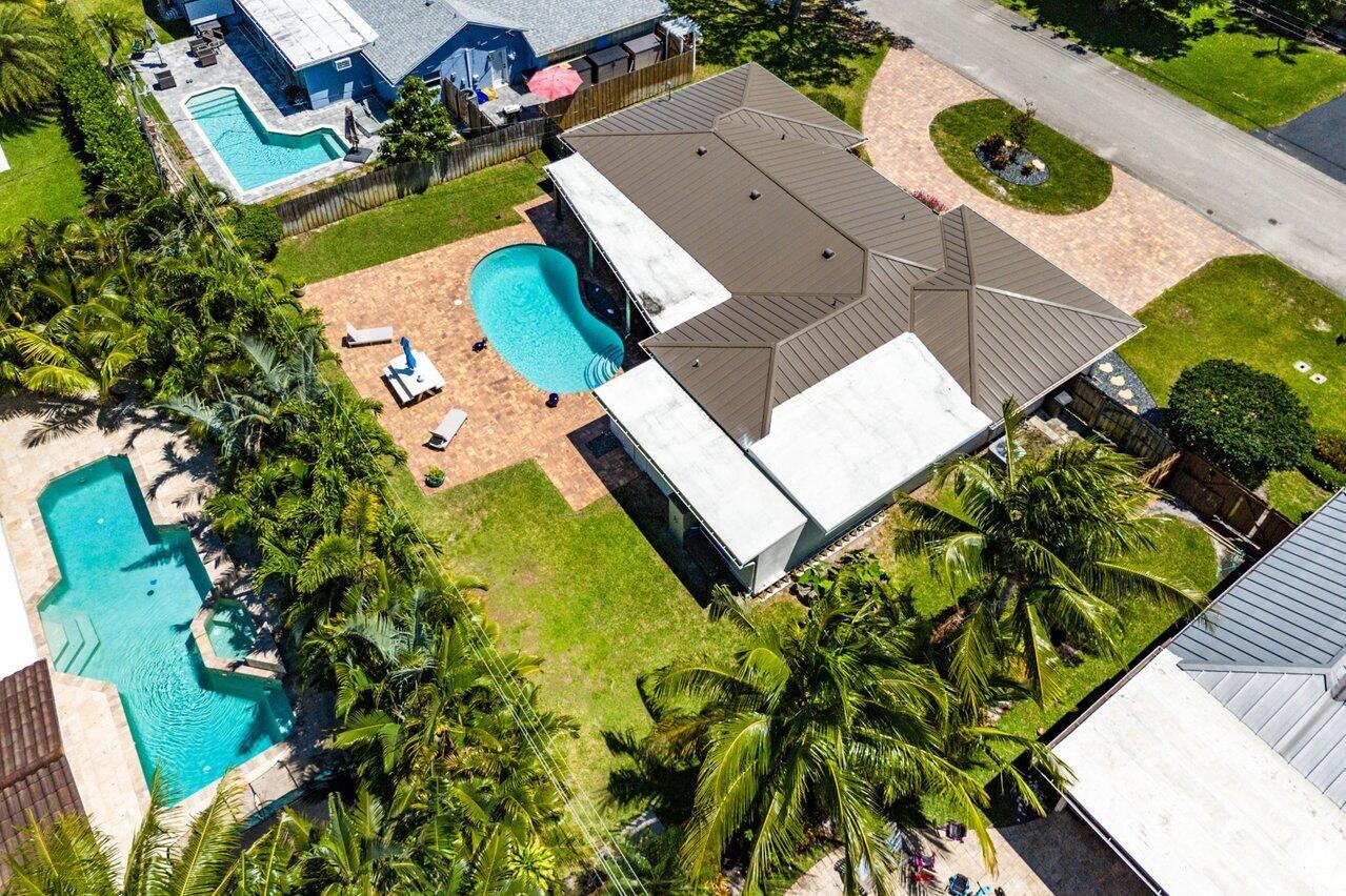 The one you've been waiting for - amazing renovations and updates create cost savings in insurance and utilities due to energy efficiency. Newer metal roof and A/C with impact glass windows and doors. Cast iron plumbing pipes have been replaced and original electrical panels have also been replaced. Kitchen and baths remodeled in neutral tones with marble and quartz finishes. HUGE walk-in closet in primary suite with custom closet system - amazing! Primary suite also has large sitting area for a private study/TV room or home office. Large circular paver driveway and entire pool / patio area in the backyard have been remodeled with new pavers, Cedar wood patio ceiling and complete pool remodel. Close to the Boca beaches, downtown shops and restaurants, Mizner Park and more! - Click for