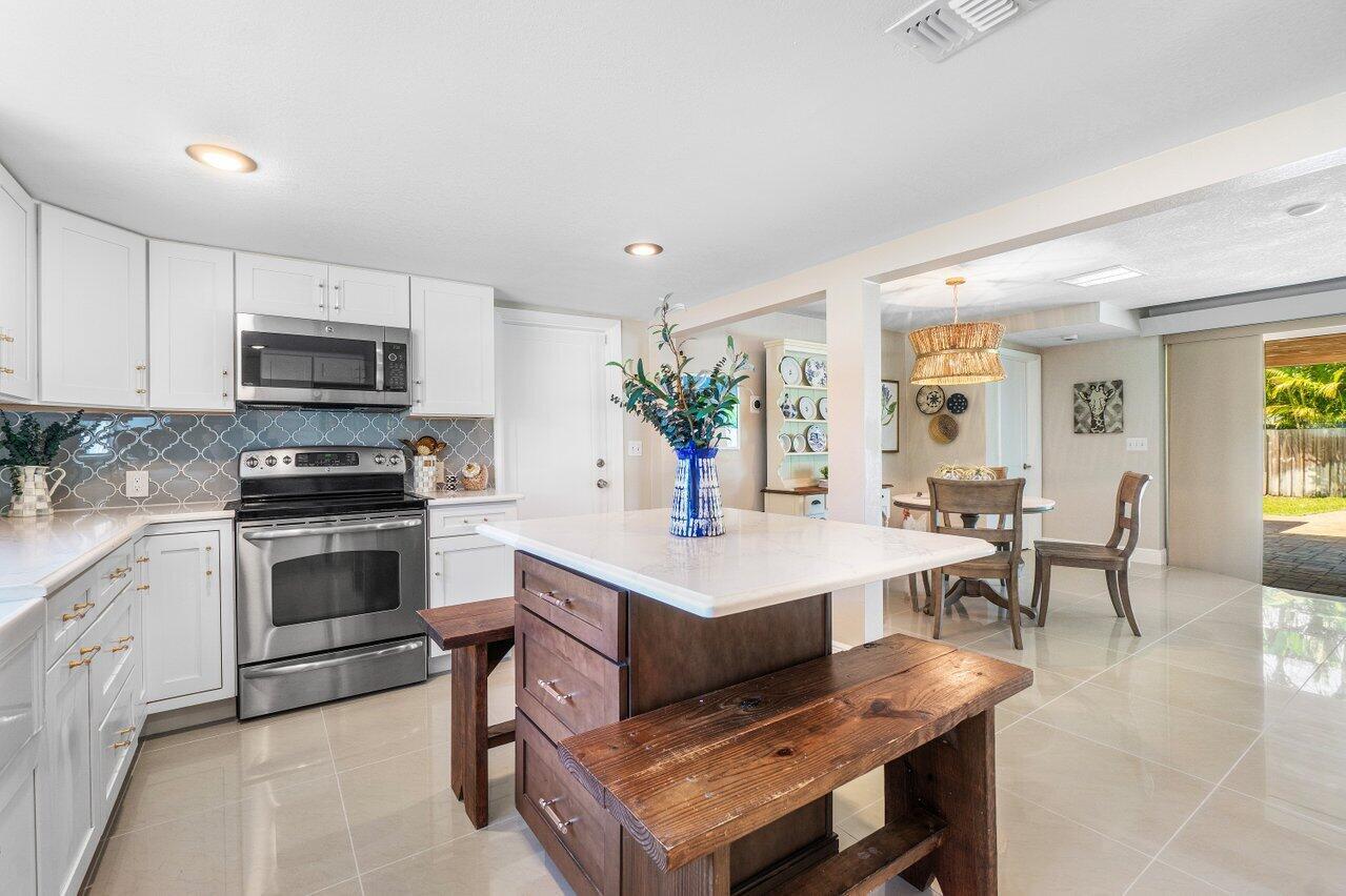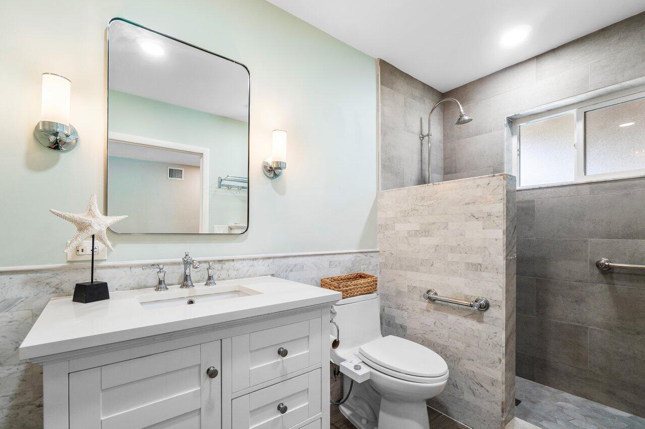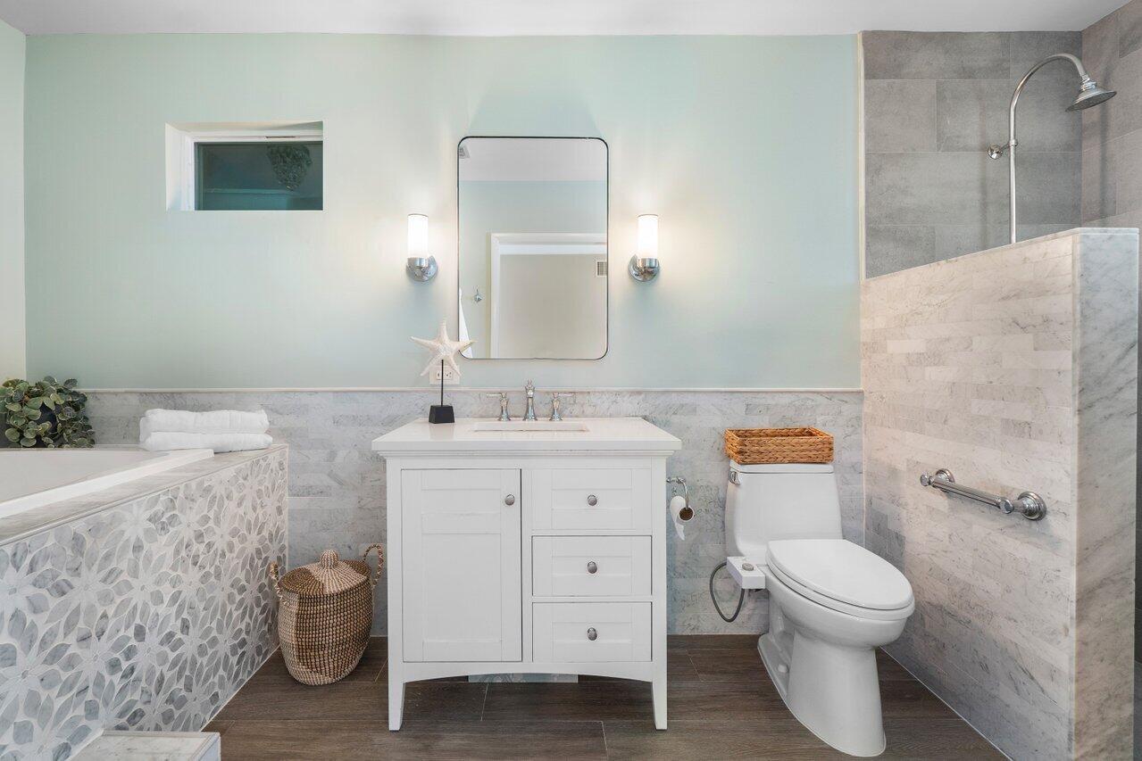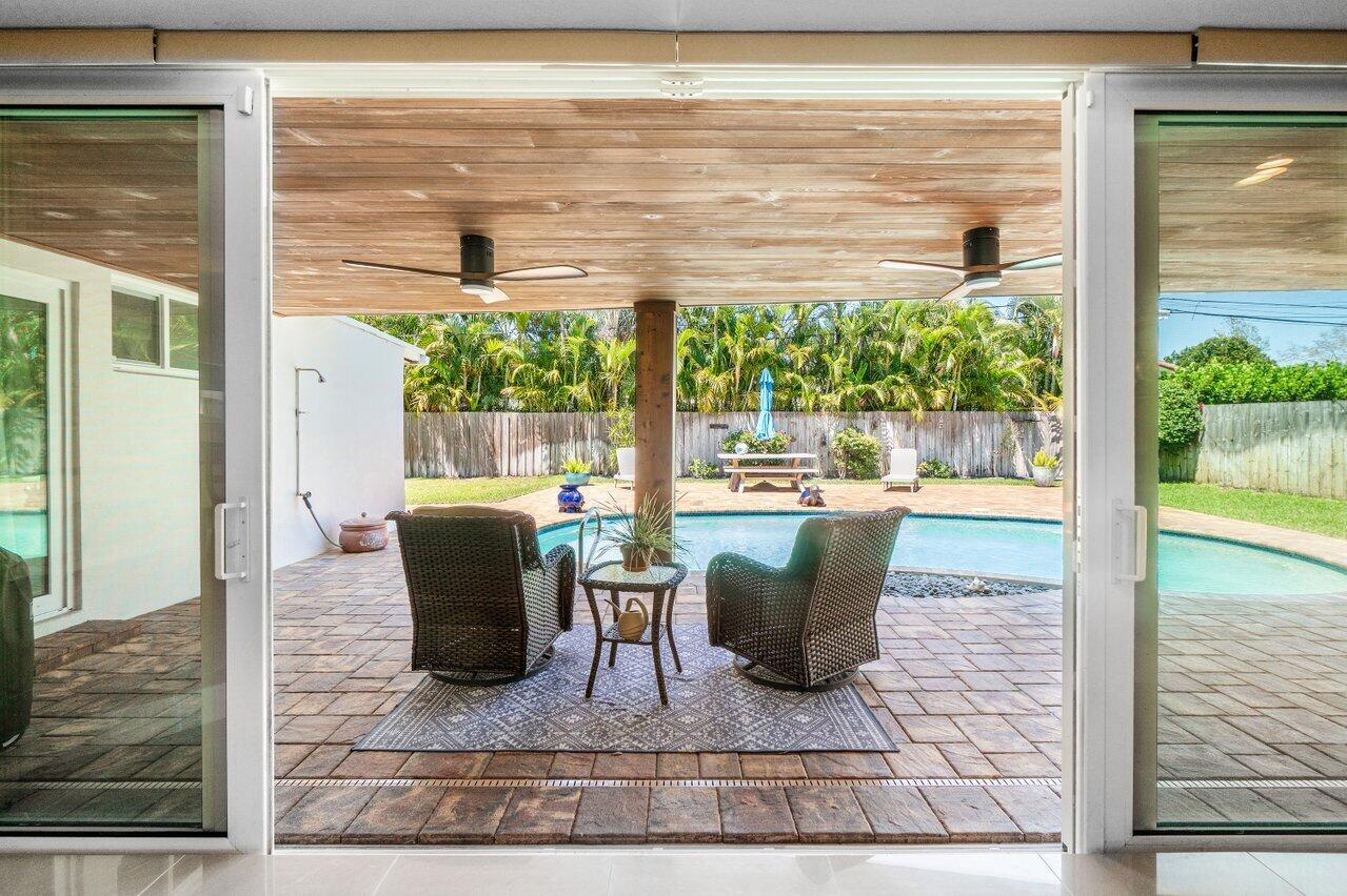 The one you've been waiting for - amazing renovations and updates create cost savings in insurance and utilities due to energy efficiency. Newer metal roof and A/C with impact glass windows and doors. Cast iron plumbing pipes have been replaced and original electrical panels have also been replaced. Kitchen and baths remodeled in neutral tones with marble and quartz finishes. HUGE walk-in closet in primary suite with custom closet system - amazing! Primary suite also has large sitting area for a private study/TV room or home office. Large circular paver driveway and entire pool / patio area in the backyard have been remodeled with new pavers, Cedar wood patio ceiling and complete pool remodel. Close to the Boca beaches, downtown shops and restaurants, Mizner Park and more! - Click for