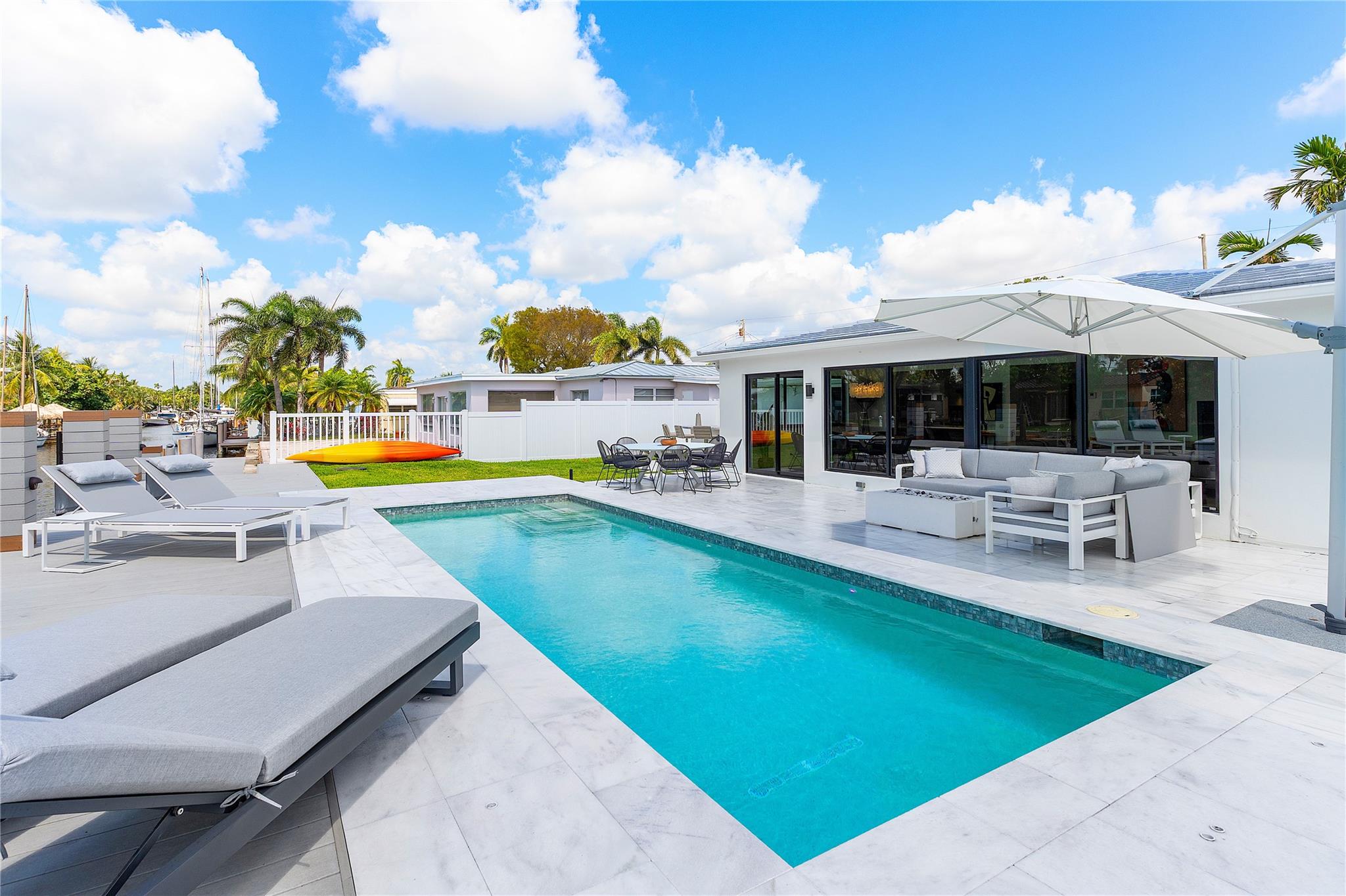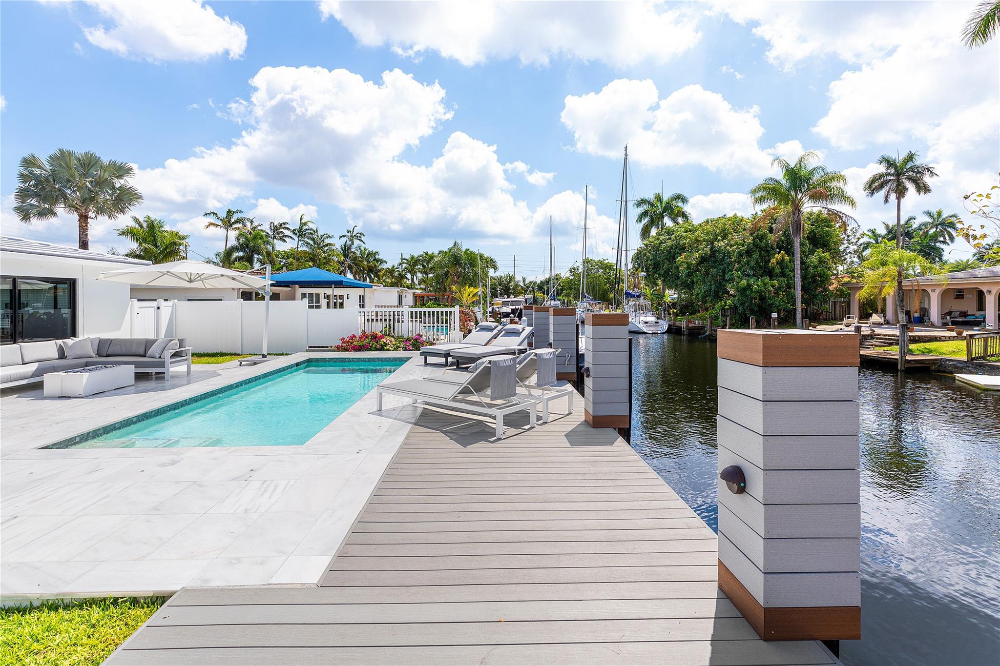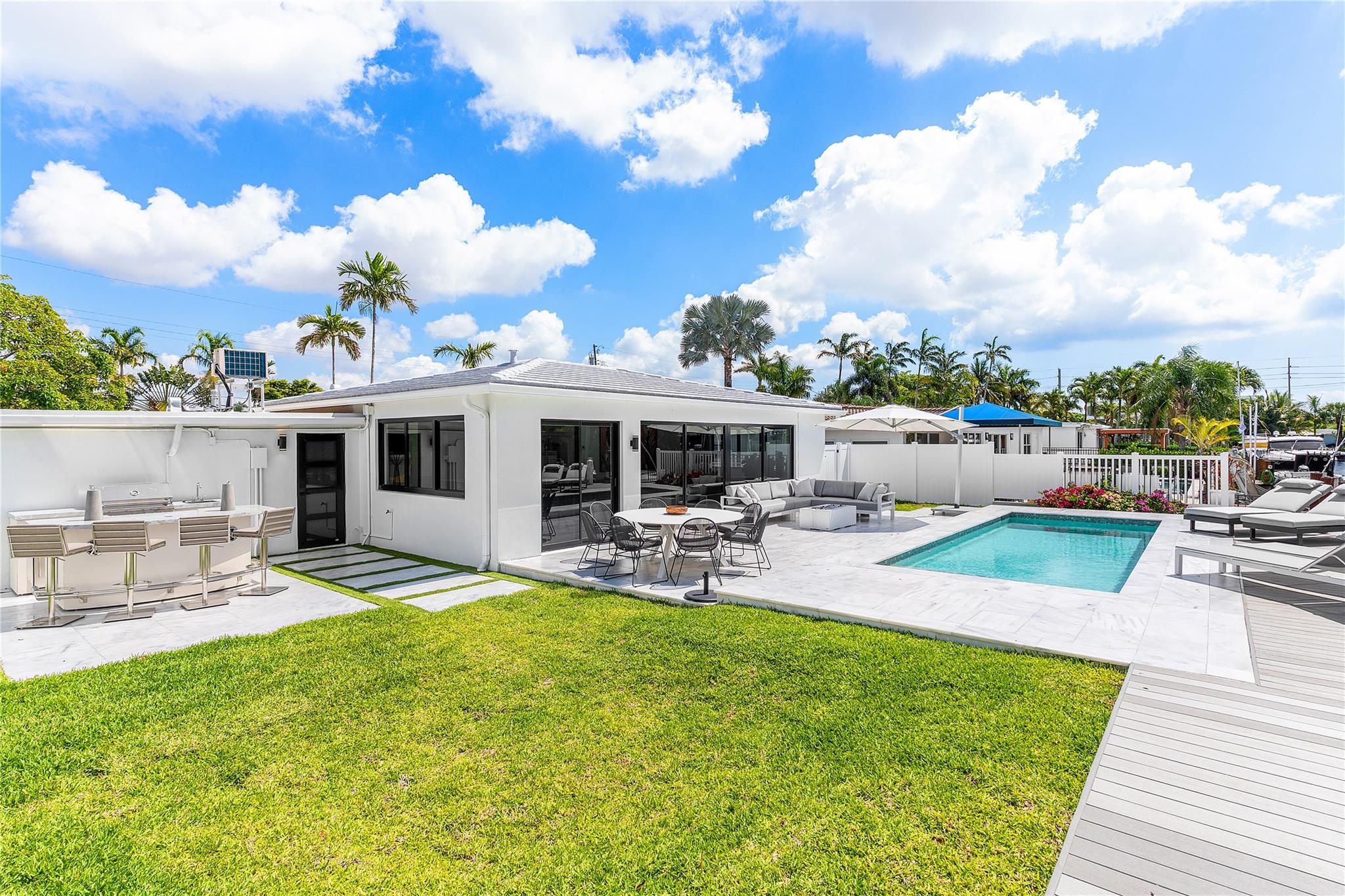 Remodeled Waterfront Pool Home w/65' Waterfront & No Fixed Bridges+oversized 2-Car Garage. This turnkey residence has been remodeled & thoughtfully designed for comfort, style, & functionality. Raised & reinforced seawall with new pilings, 50A electric, oversized composite deck with step-down area. Impact windows & doors throughout, new flooring & high-end finishes. Spacious oversized laundry & storage area, rare oversized 2-car garage, ideal for storage, toys, or a workshop. The backyard is your own private oasis with a newly built(2023) BBQ area, state-of-the-art heated pool(2023) & ample space for entertaining or relaxing under the South Florida sun. Nearby attractions; Intracoastal, beaches, top-rated schools, dining, & downtown Ft Lauderdale/Las Olas.