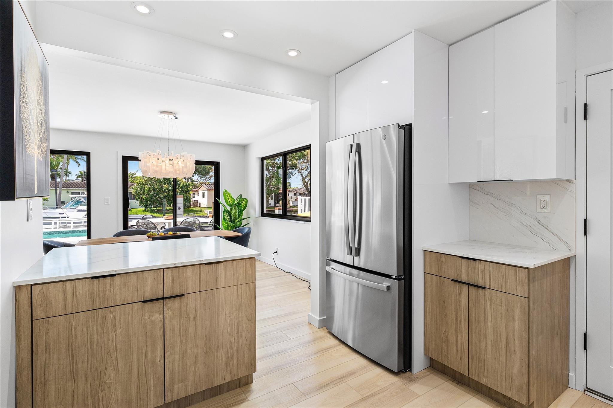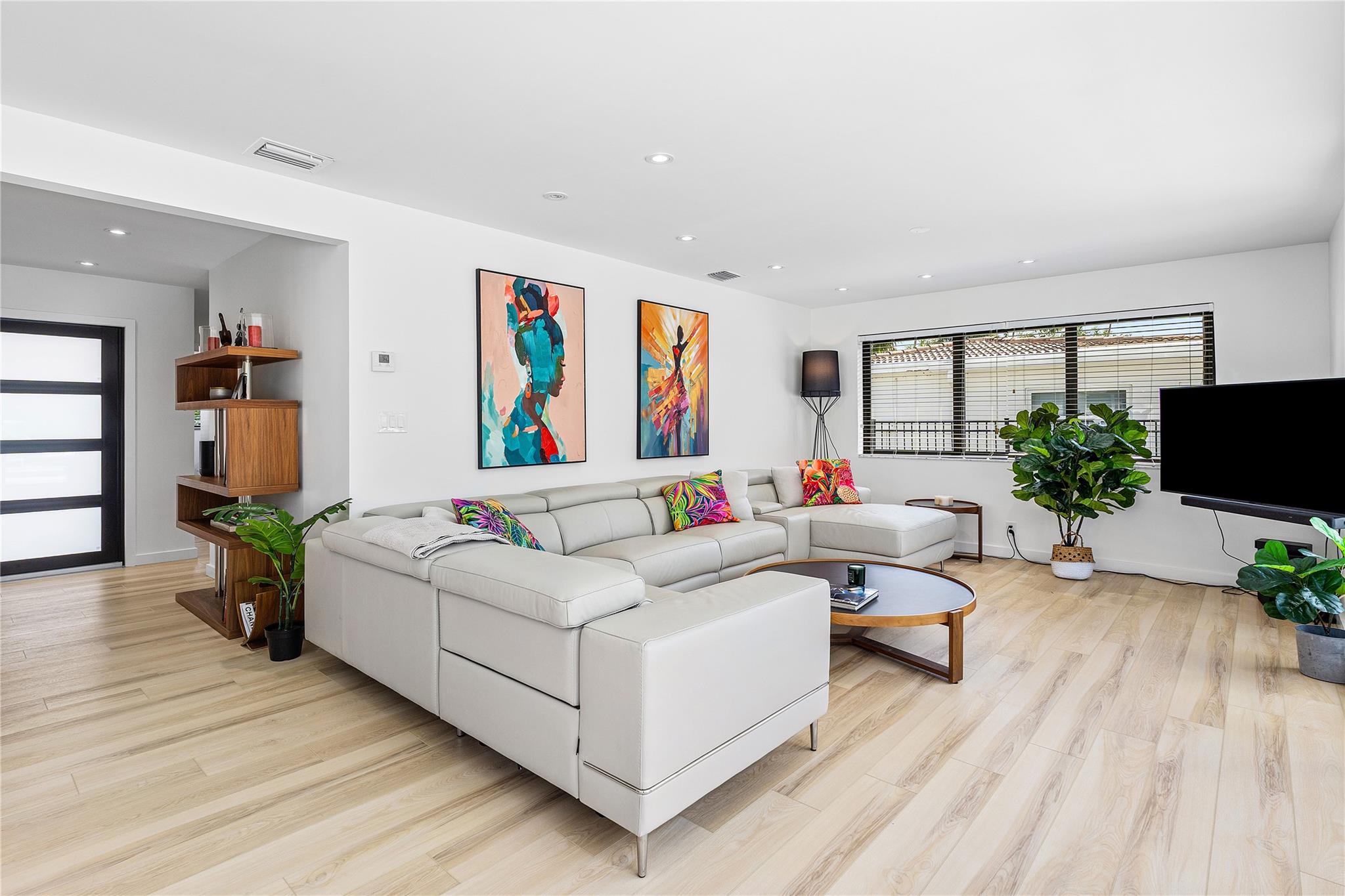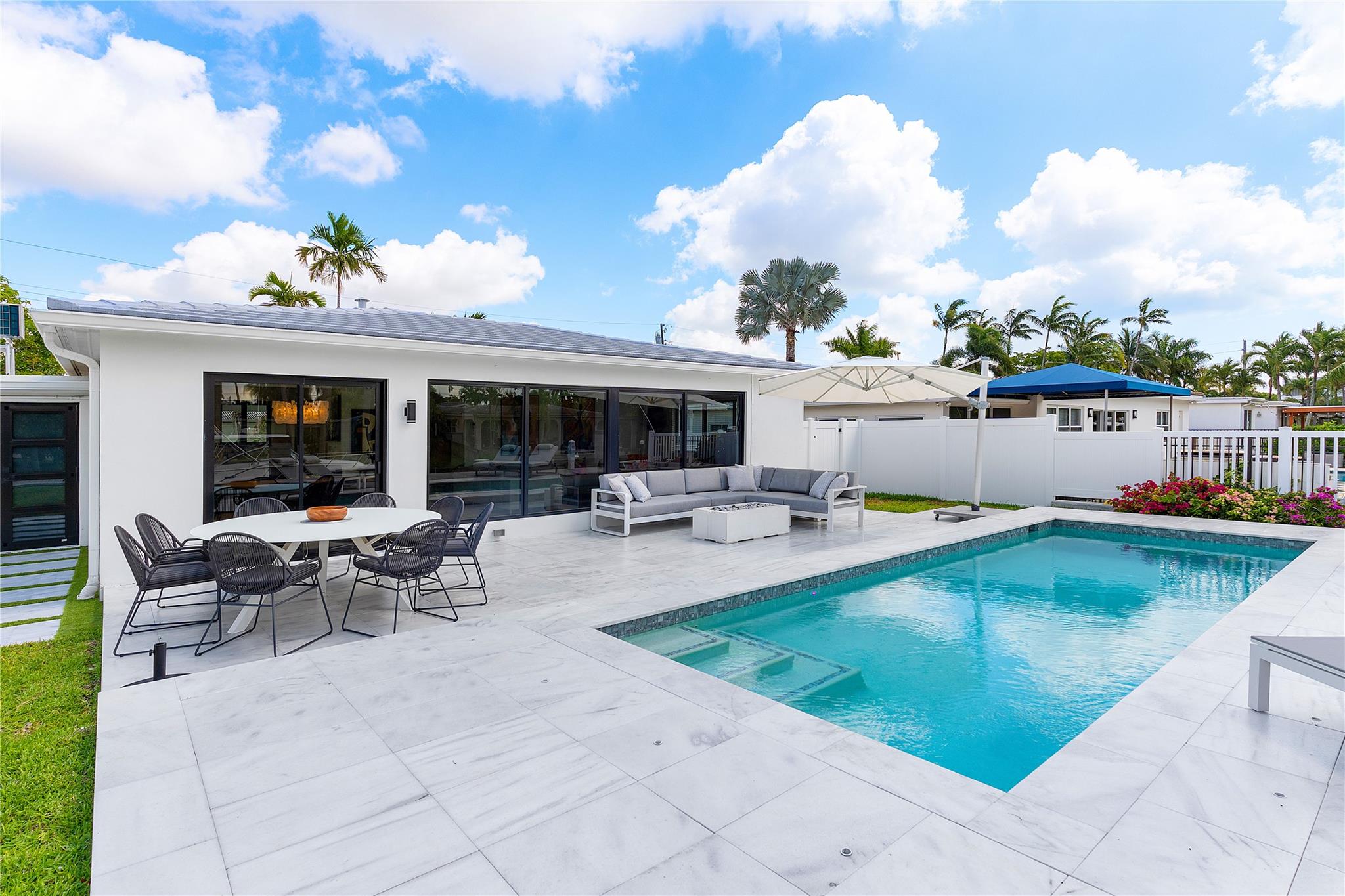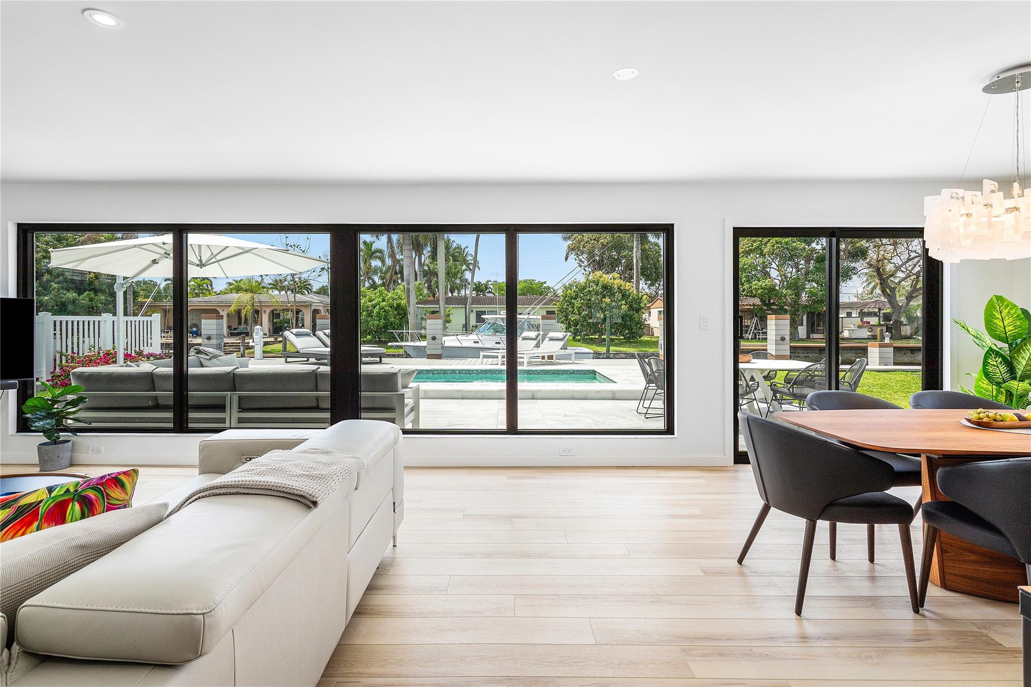 Remodeled Waterfront Pool Home w/65' Waterfront & No Fixed Bridges+oversized 2-Car Garage. This turnkey residence has been remodeled & thoughtfully designed for comfort, style, & functionality. Raised & reinforced seawall with new pilings, 50A electric, oversized composite deck with step-down area. Impact windows & doors throughout, new flooring & high-end finishes. Spacious oversized laundry & storage area, rare oversized 2-car garage, ideal for storage, toys, or a workshop. The backyard is your own private oasis with a newly built(2023) BBQ area, state-of-the-art heated pool(2023) & ample space for entertaining or relaxing under the South Florida sun. Nearby attractions; Intracoastal, beaches, top-rated schools, dining, & downtown Ft Lauderdale/Las Olas.