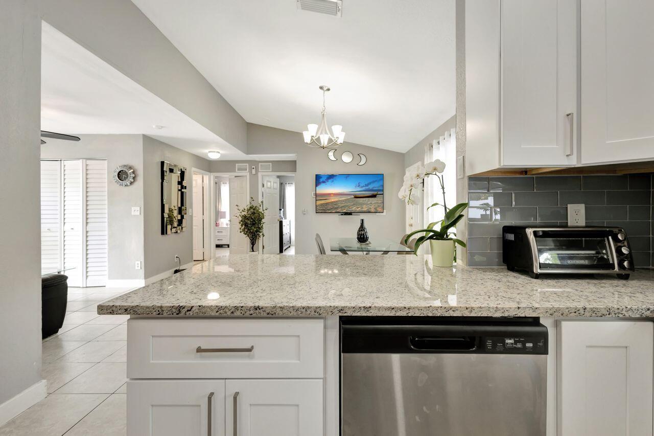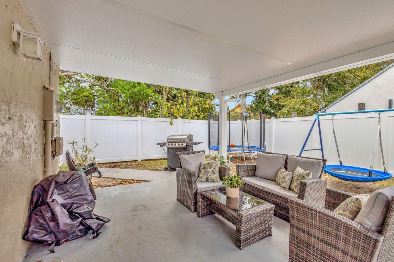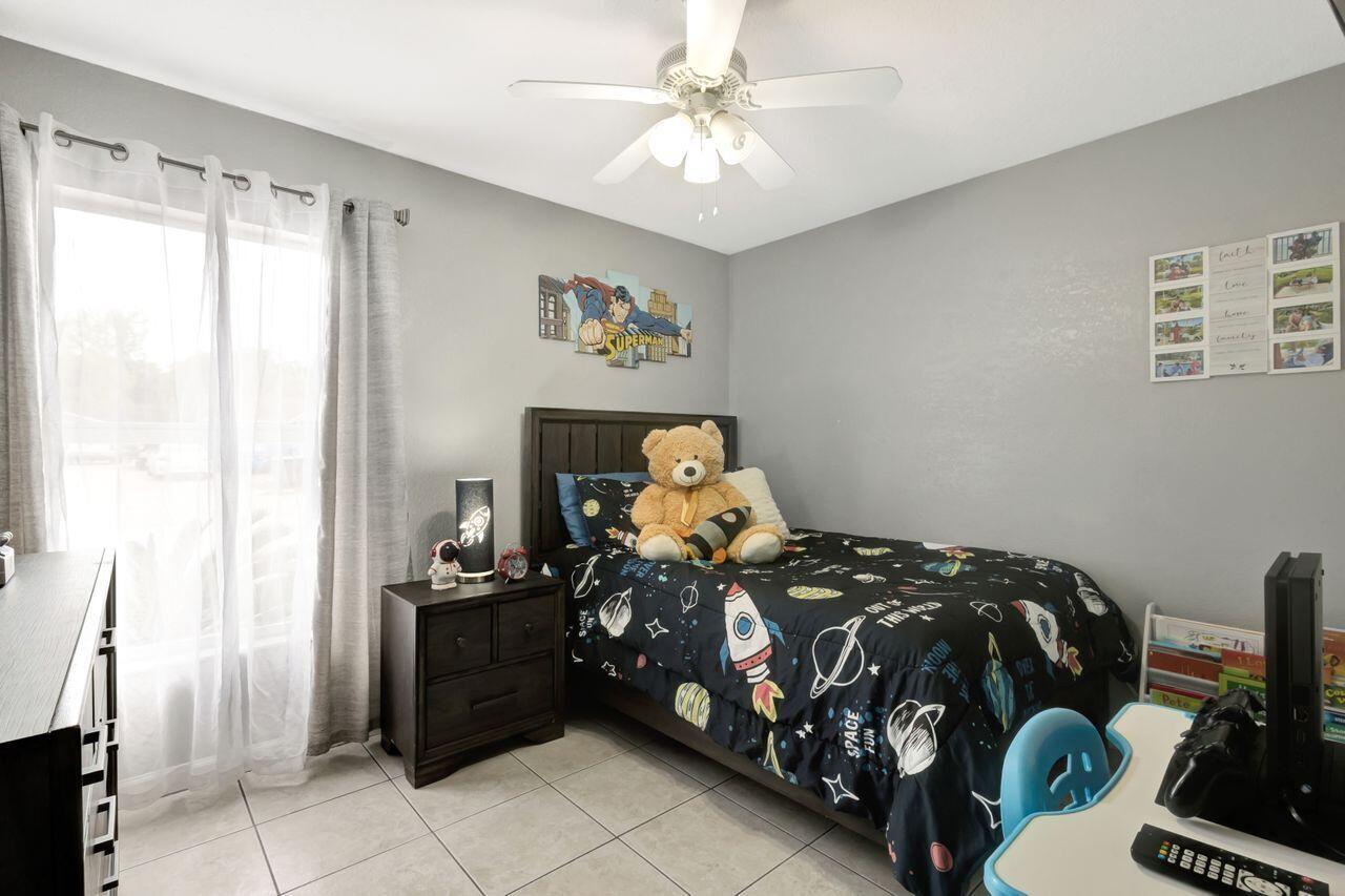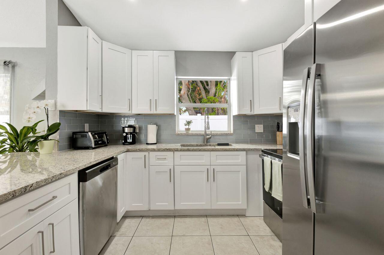 This 4-bedroom, 2-bath home offers approximately 1,325 square feet of living space. The spacious bedrooms feature lots of natural light, creating a bright and airy atmosphere. The bathrooms feature elegant marble finishes and ample natural lighting, providing a spa-like experience. The home's layout is spacious and well-designed, with tile flooring throughout. The modern kitchen is equipped with stainless steel appliances, granite countertops, and ample cabinetry, offering plenty of storage and preparation space. The covered patio and outdoor seating area provide a comfortable space for relaxing or entertaining. Situated on approximately .14 acres of land. This 2004-built property combines modern amenities with a practical floor plan. Shed does not convey.