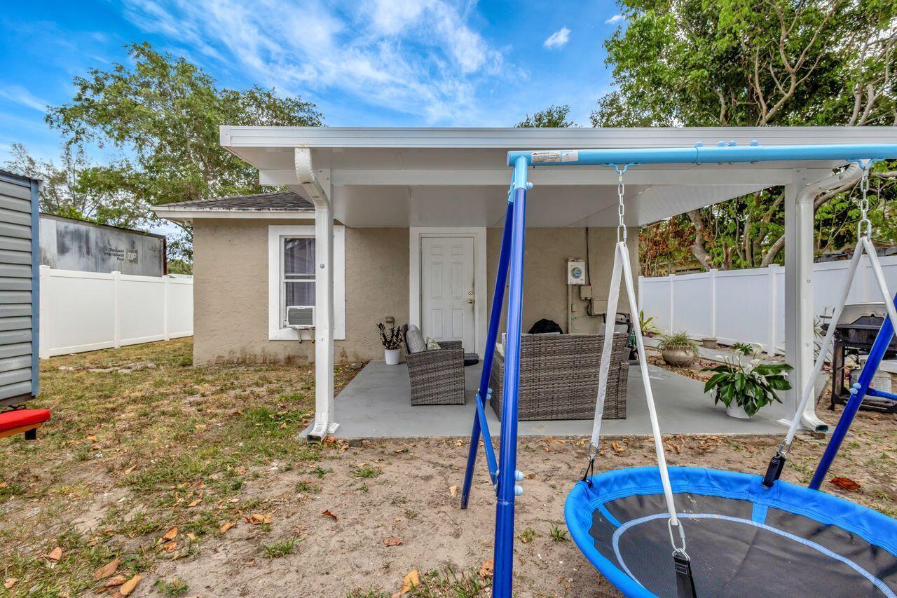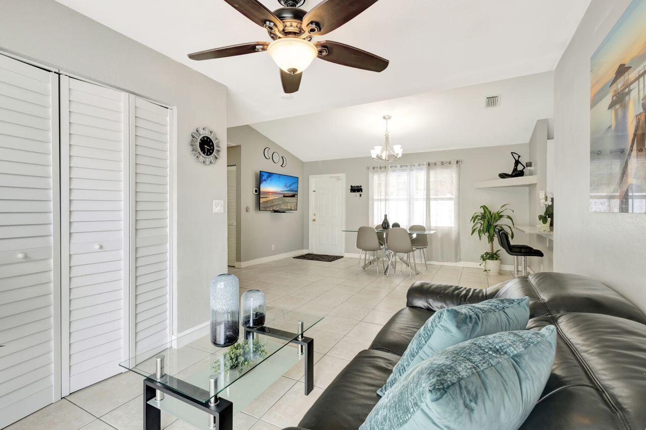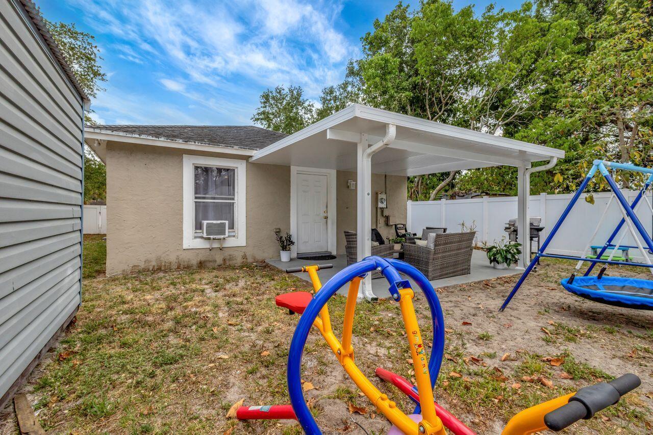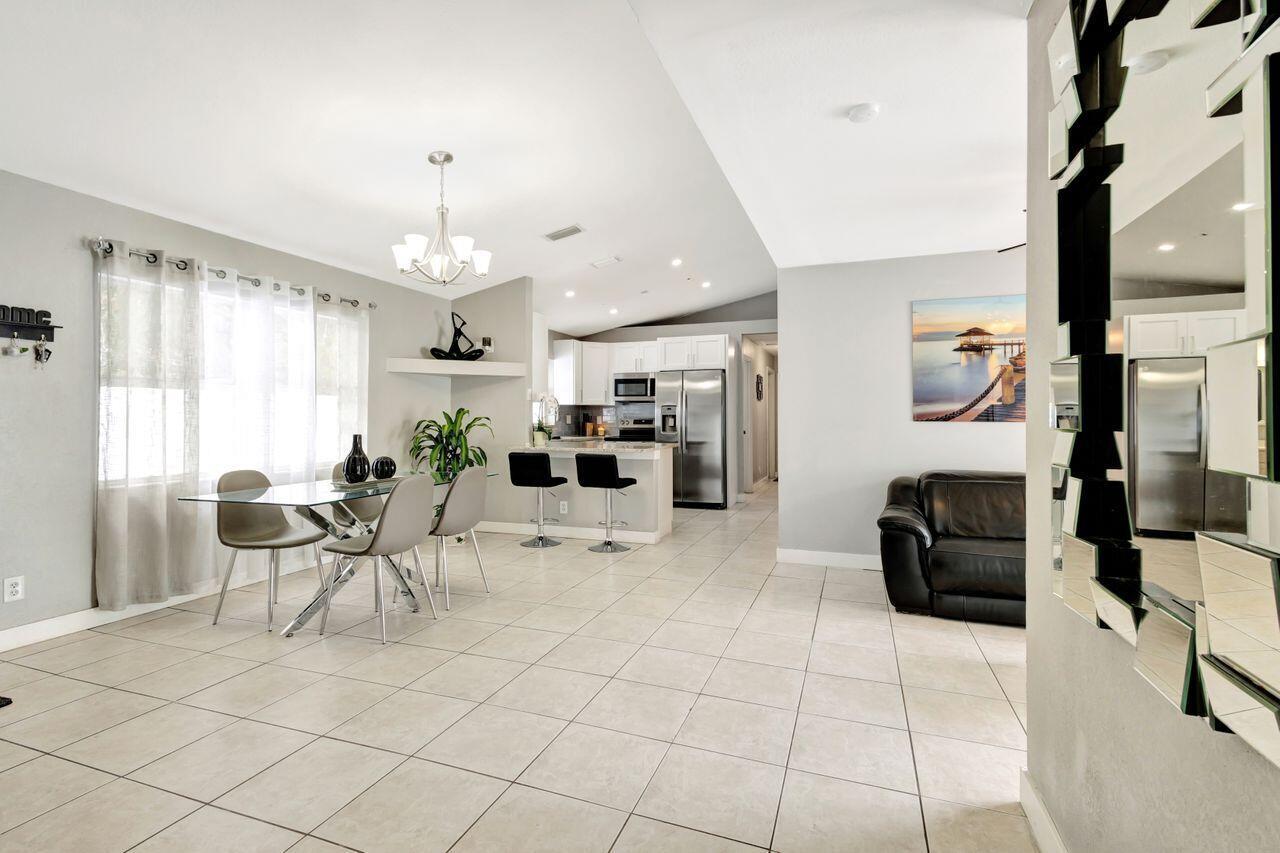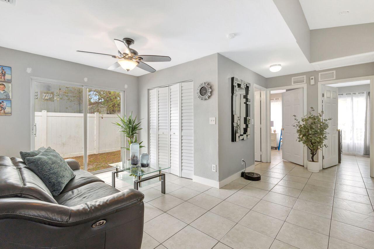 This 4-bedroom, 2-bath home offers approximately 1,325 square feet of living space. The spacious bedrooms feature lots of natural light, creating a bright and airy atmosphere. The bathrooms feature elegant marble finishes and ample natural lighting, providing a spa-like experience. The home's layout is spacious and well-designed, with tile flooring throughout. The modern kitchen is equipped with stainless steel appliances, granite countertops, and ample cabinetry, offering plenty of storage and preparation space. The covered patio and outdoor seating area provide a comfortable space for relaxing or entertaining. Situated on approximately .14 acres of land. This 2004-built property combines modern amenities with a practical floor plan. Shed does not convey.