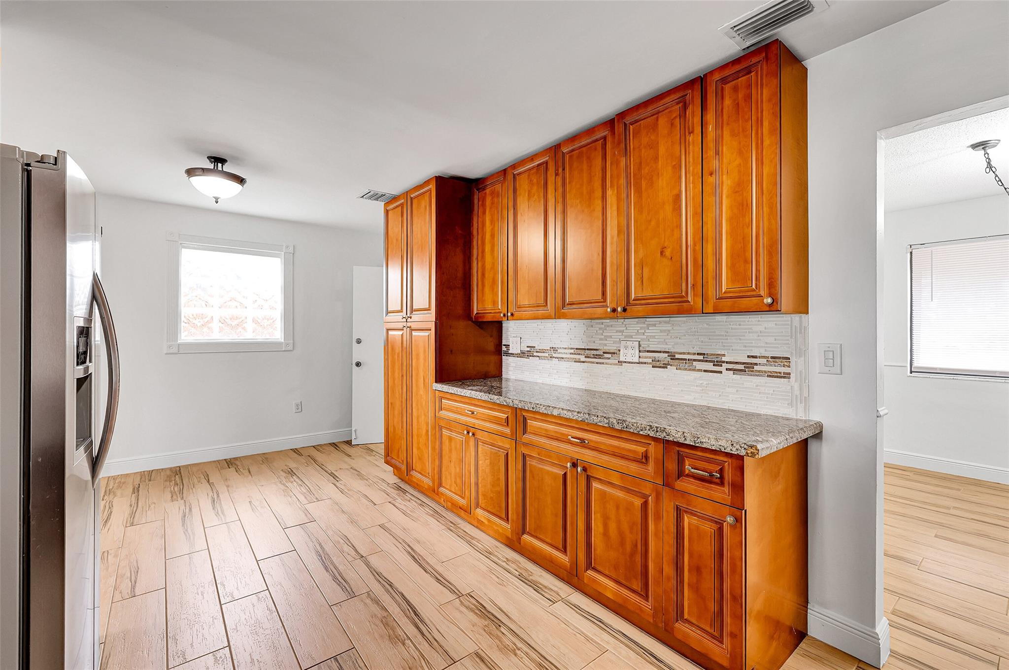 This charming 2 bed, 2 bath Lake Front home offers serene water views and easy living. Freshly painted throughout, it features a large kitchen with lake views, a spacious living area, and an oversized covered patio perfect for relaxing or entertaining. Impact windows and doors, a 2022 roof, and a newer A/C add peace of mind. The converted garage provides flexible living space (easily coverts back to garage if you prefer it as a garage / door still in place and functioning) and a circular driveway adds convenience. Bonus outdoor storage shed included! Paddle out on the lake for those gorgeous sunsets! Ideally located near shopping, casinos, I-95, and the Turnpike—this one checks all the boxes!