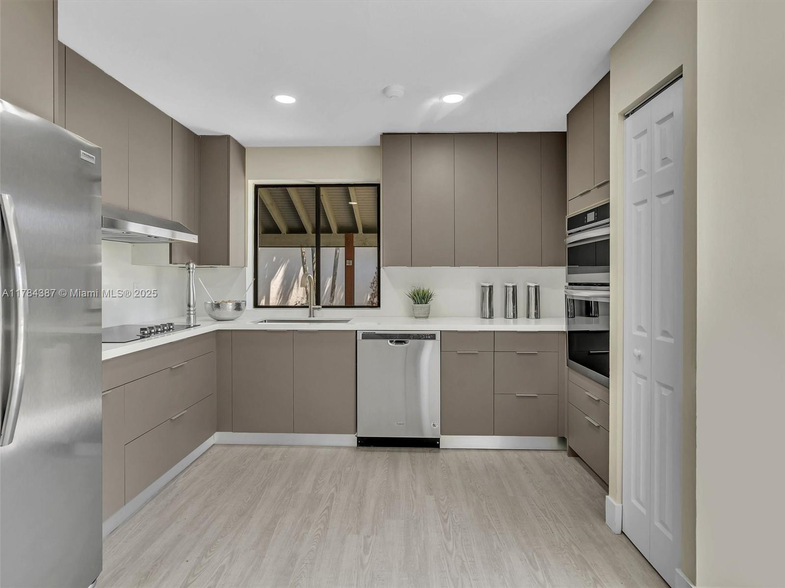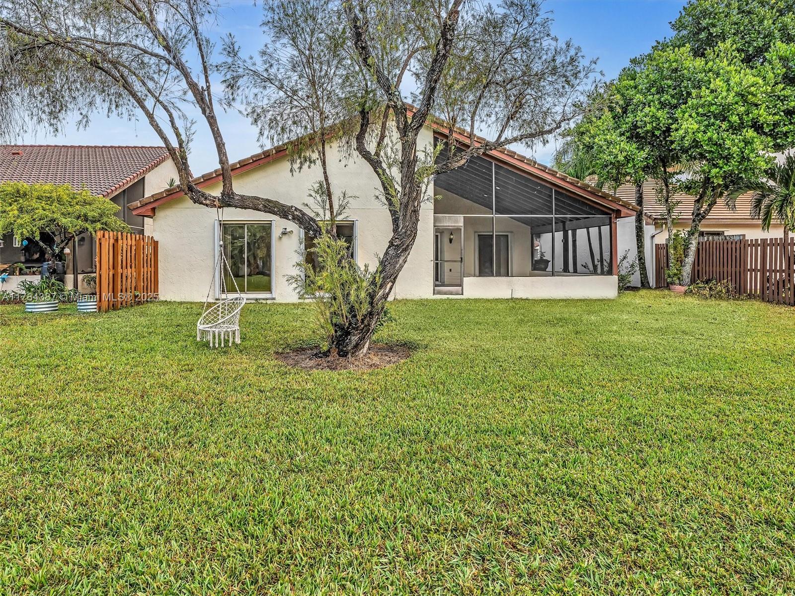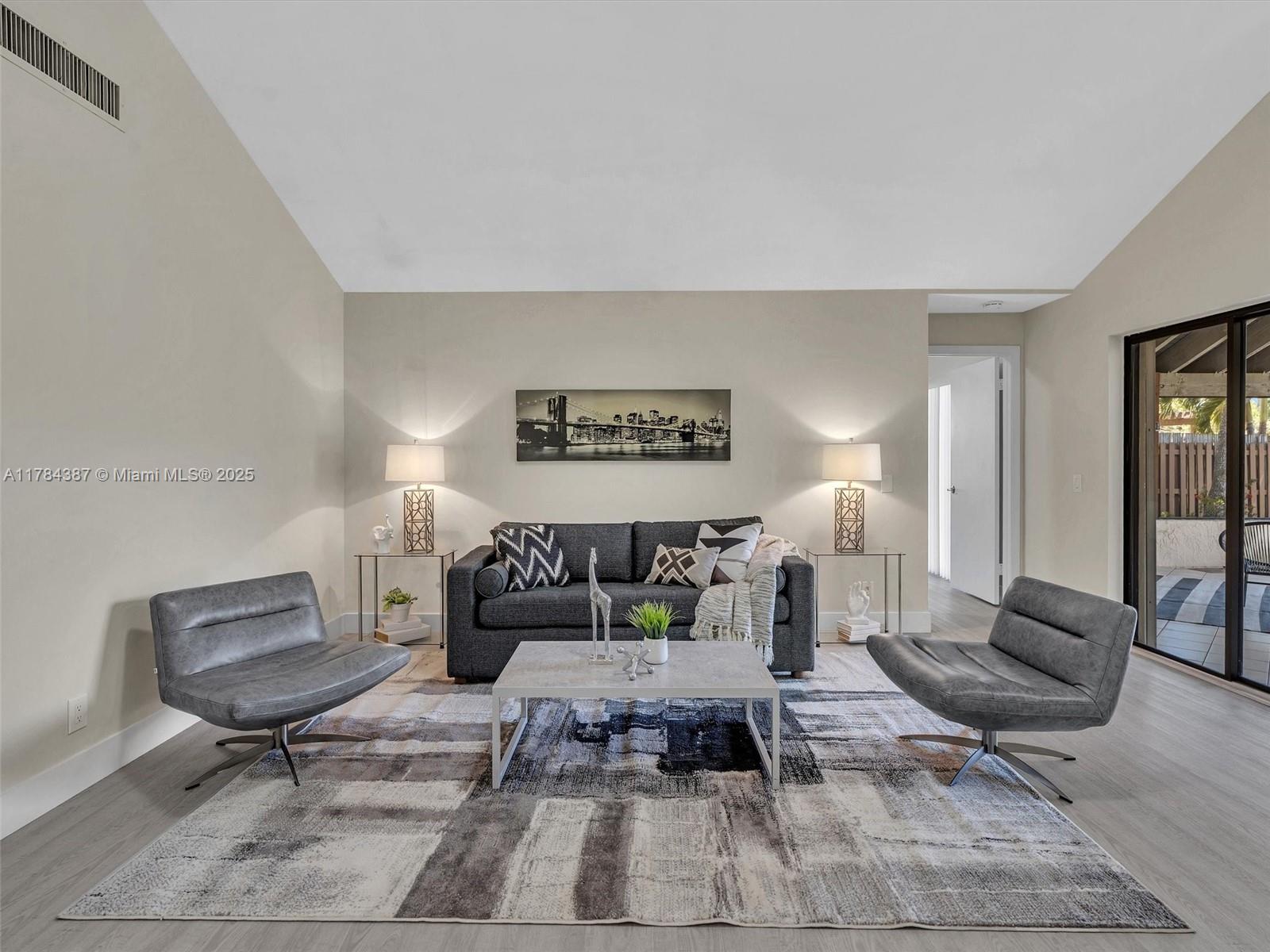 Exceptional value for this tastefully and stylishly updated 3 bed/2 bath home w/2-car garage, tucked away on a quiet cul-de-sac street. Enjoy year-round outdoor living on spacious covered and screened patio overlooking lush green space, perfect for relaxing or entertaining. Step inside to bright and airy great room featuring vaulted ceilings that enhance the open, inviting feel. The eat-in kitchen showcases brand-new custom cabinetry, sleek quartz countertops, ss appliances, cook top, wall oven, micro and fan hood. Other highlights include trendy bathrooms, brand new waterproof vinyl flooring throughout, updated lighting, fresh interior paint, and accordion shutters for easy storm protection. HOA covers lawn maintenance and watering. Zoned for top rated schools! Investor friendly!
