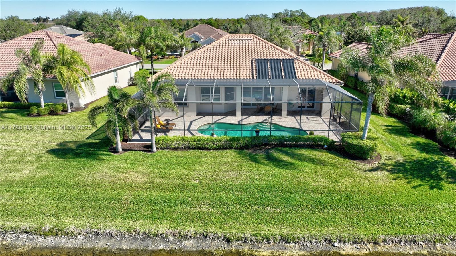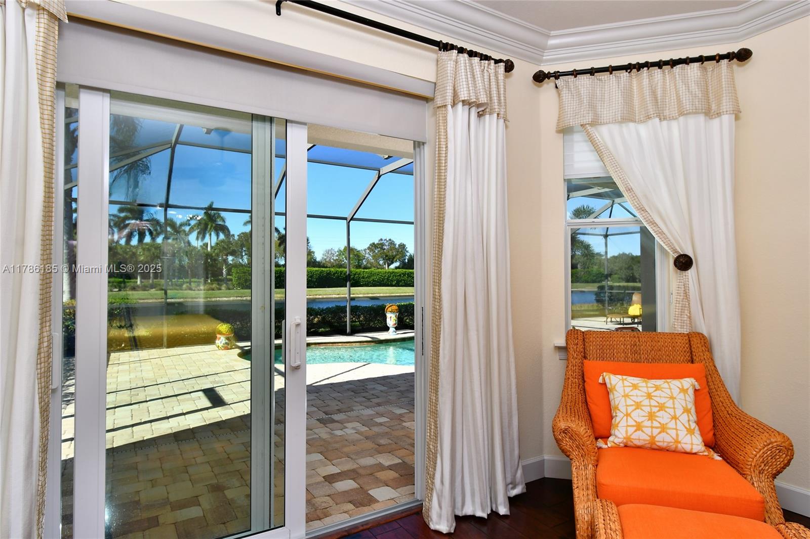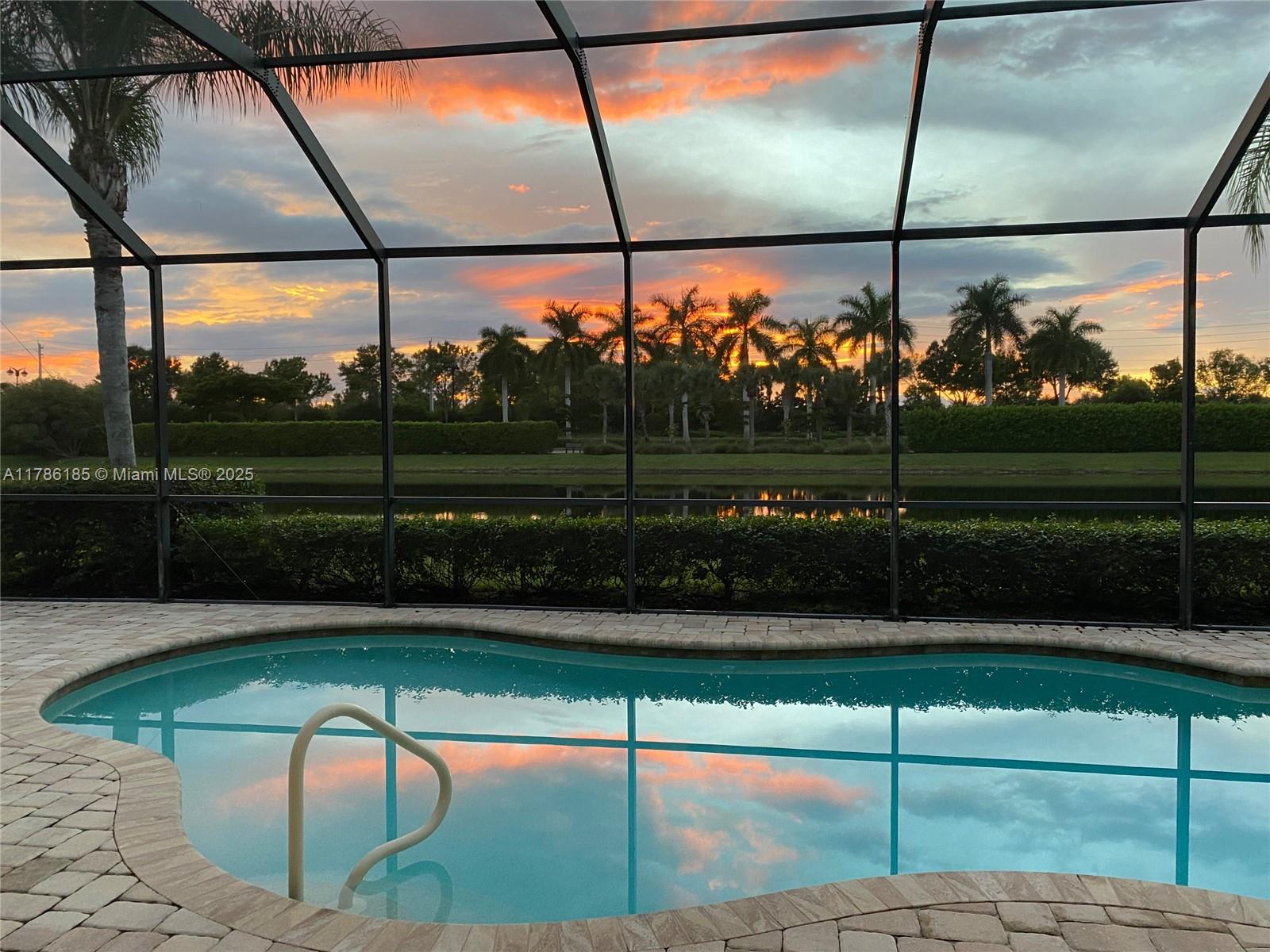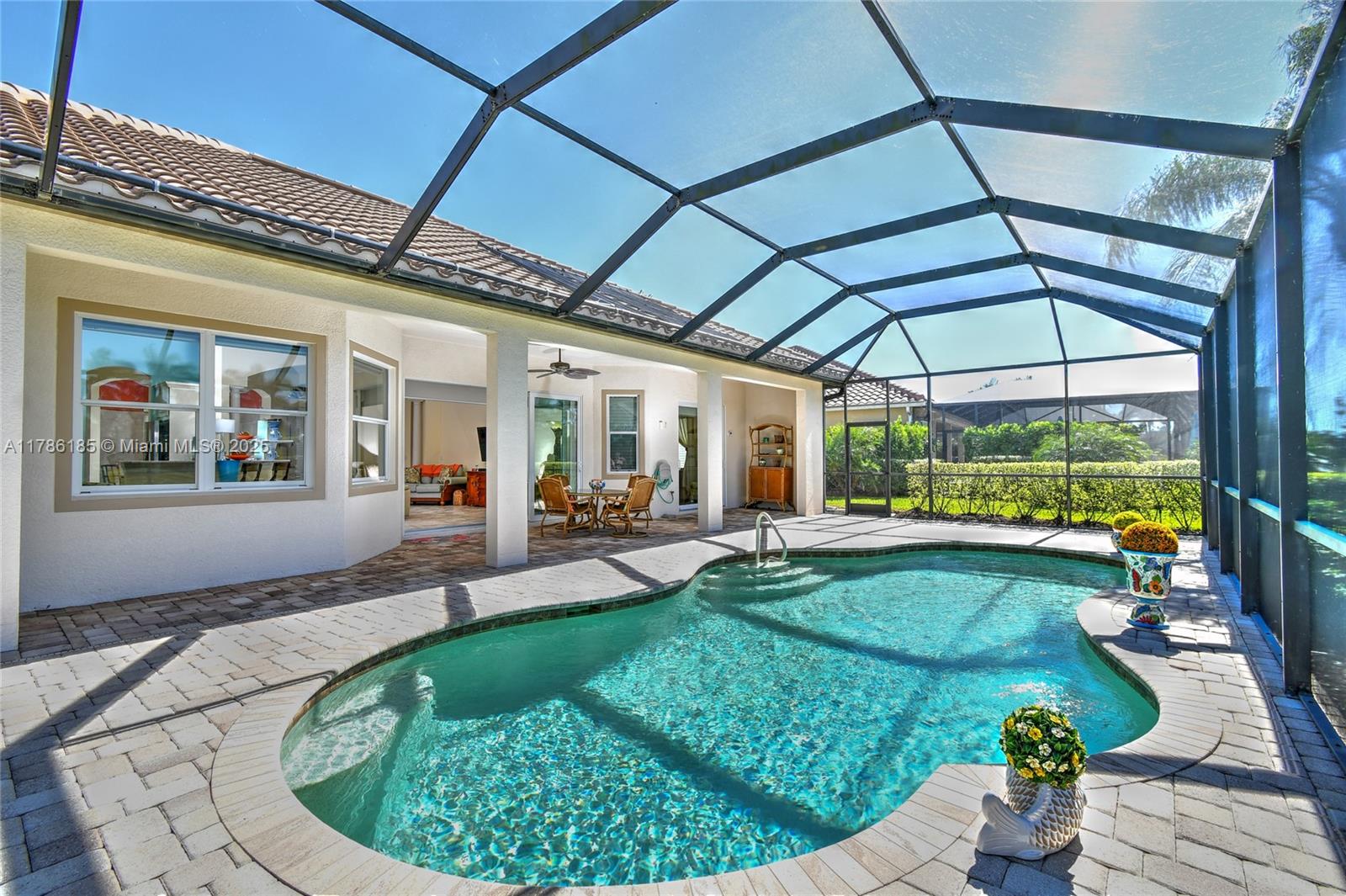 Upgrades galore! Kitchenaid appliances. Carrea marble countertops, hurricane impact windows throughout, custom cabinetry and a walk-in pantry. The great room is spacious thanks to the removal of the interior partition. Enjoy dinner on the oversized covered lanai by your solar heated saltwater pool and watch the sunset across the lake. The dramatic master suite opens to the lanai. The stunning wainscot dining room overlooks the newly landscaped garden. Upscale features include 12 ft. ceilings, tray ceilings, large crown molding, solid wood cabinetry, custom closet cabinetry in every closet, granite and wood floors with upgraded tiles, epoxy garage floor & extended garage. This is your dream home!