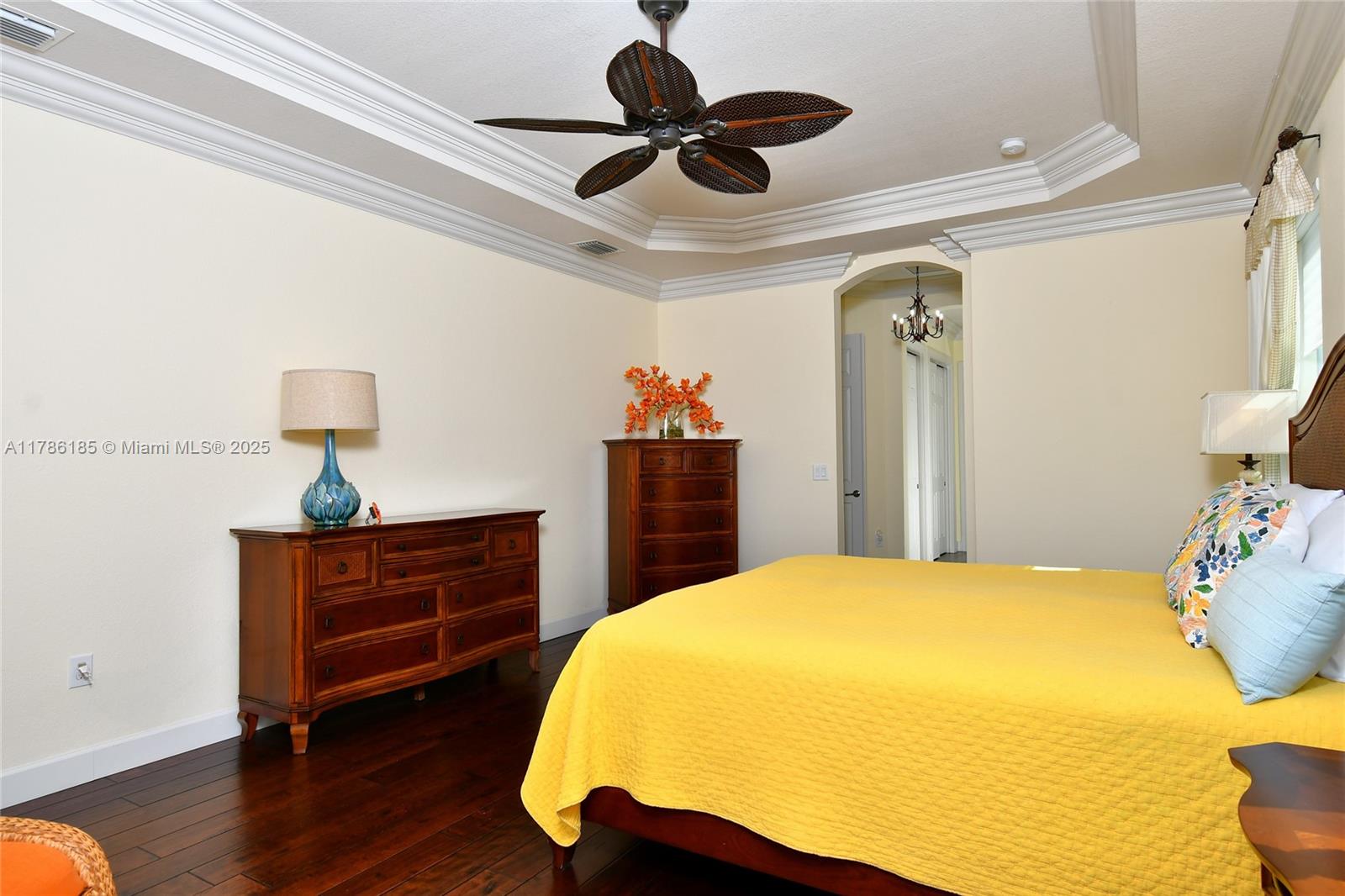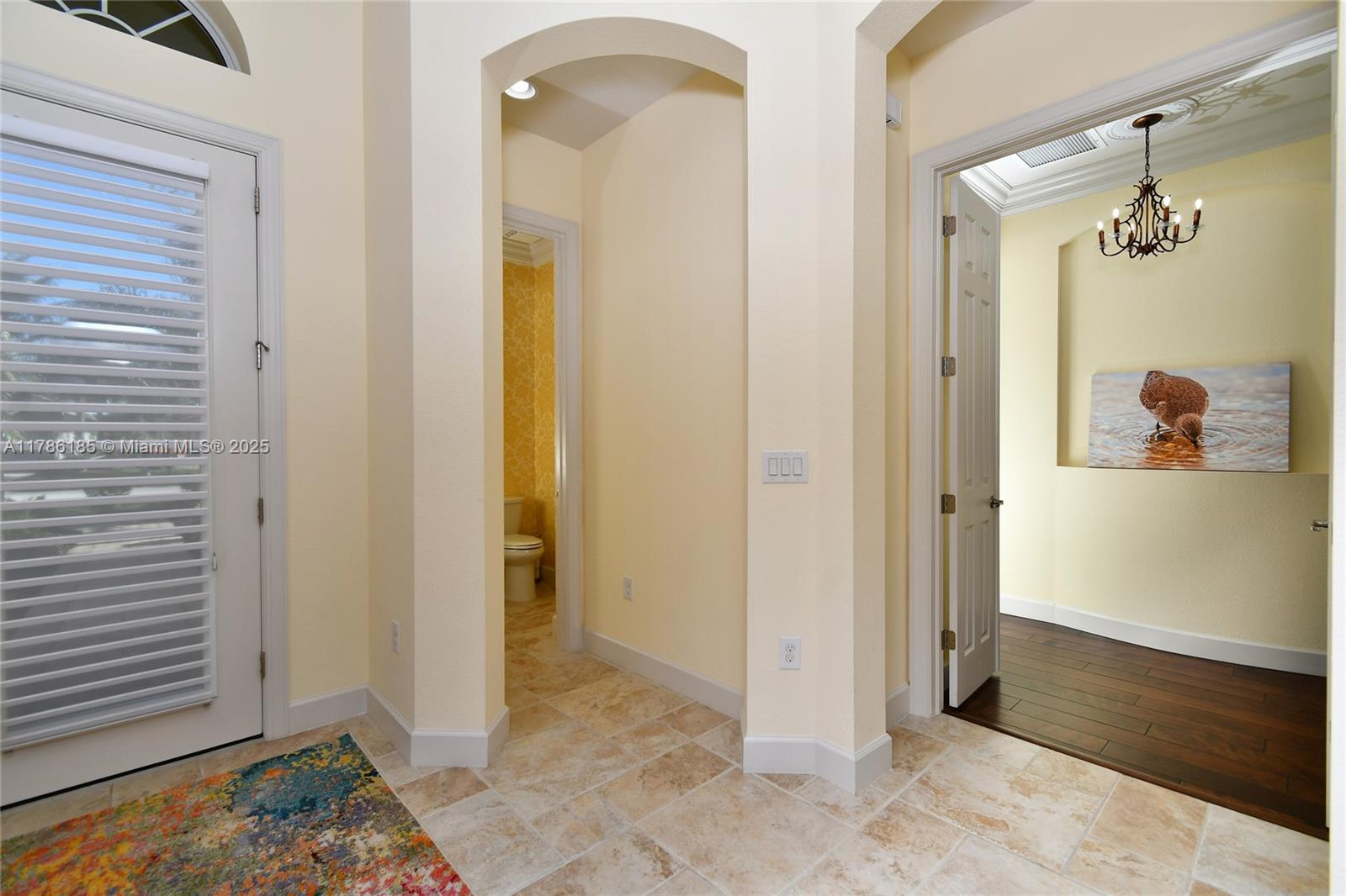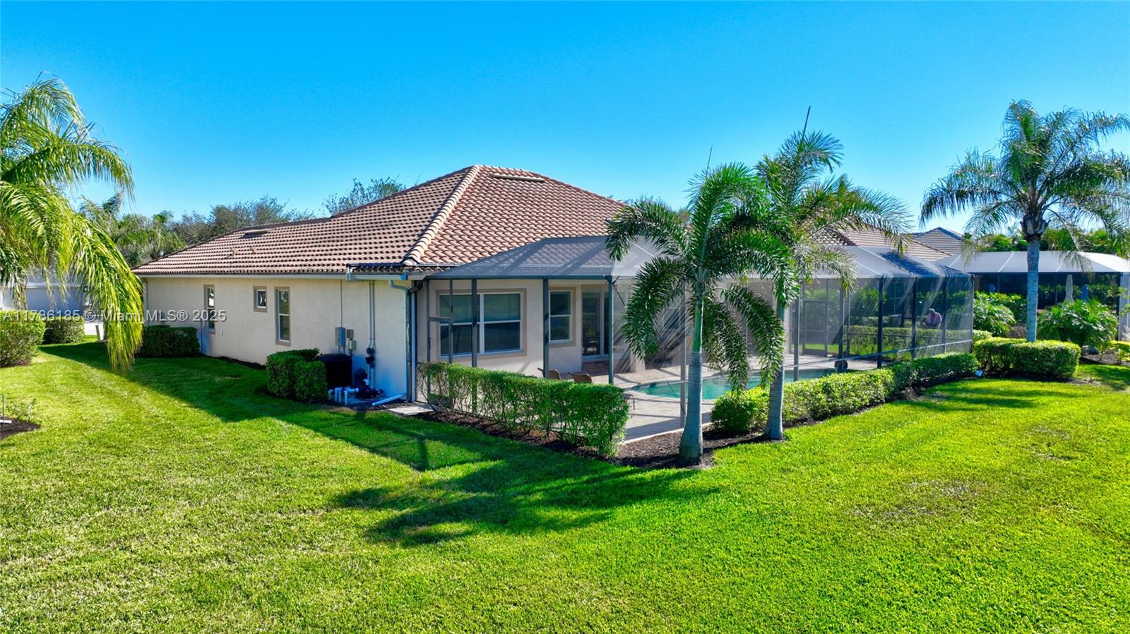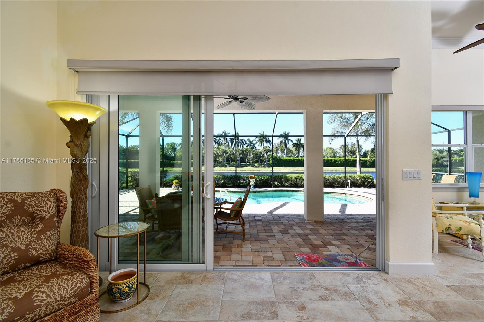 Upgrades galore! Kitchenaid appliances. Carrea marble countertops, hurricane impact windows throughout, custom cabinetry and a walk-in pantry. The great room is spacious thanks to the removal of the interior partition. Enjoy dinner on the oversized covered lanai by your solar heated saltwater pool and watch the sunset across the lake. The dramatic master suite opens to the lanai. The stunning wainscot dining room overlooks the newly landscaped garden. Upscale features include 12 ft. ceilings, tray ceilings, large crown molding, solid wood cabinetry, custom closet cabinetry in every closet, granite and wood floors with upgraded tiles, epoxy garage floor & extended garage. This is your dream home!