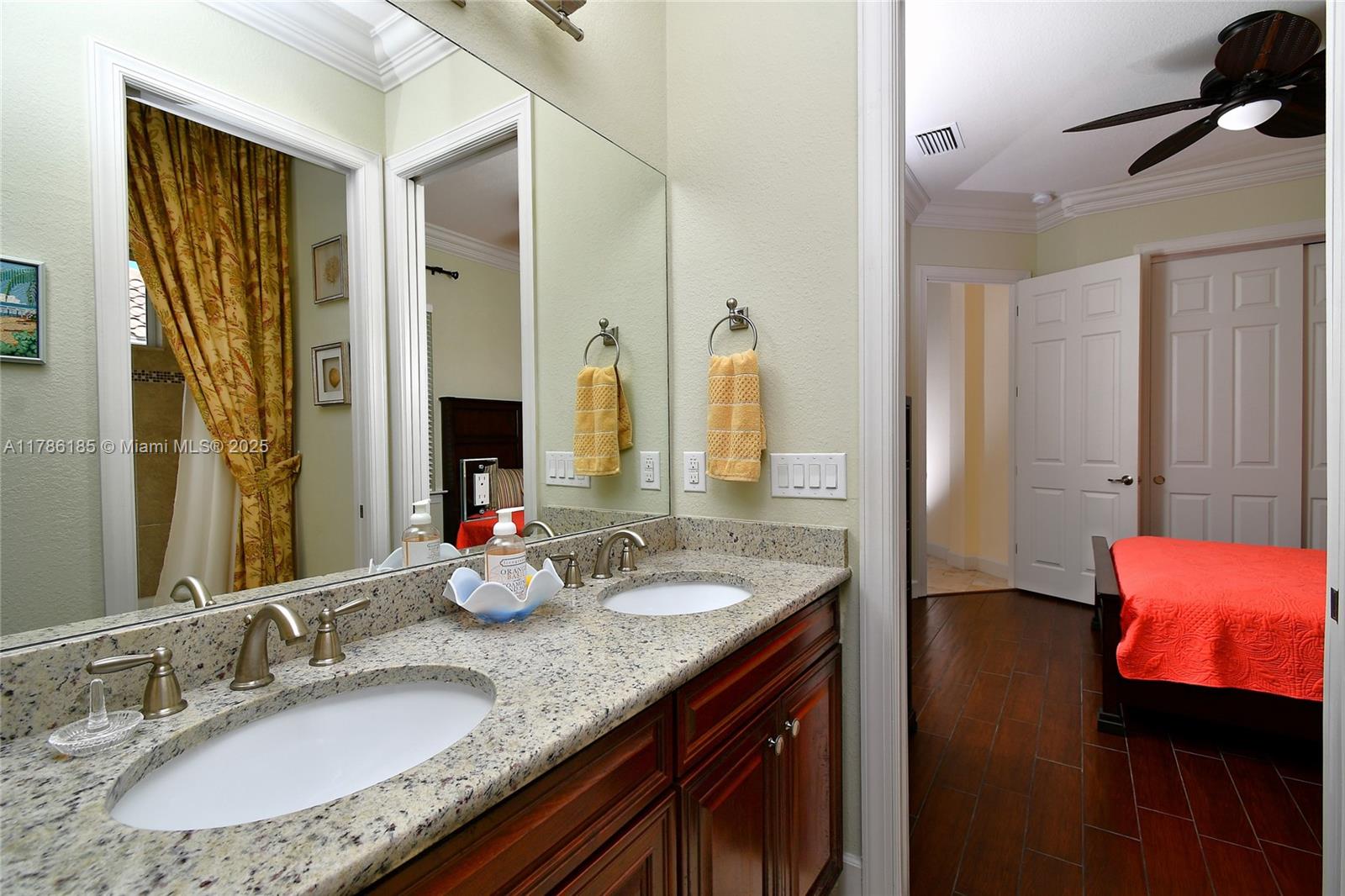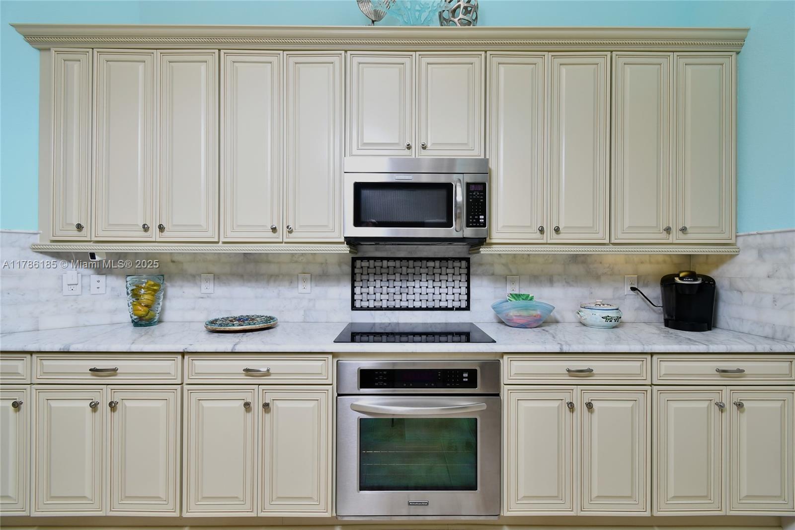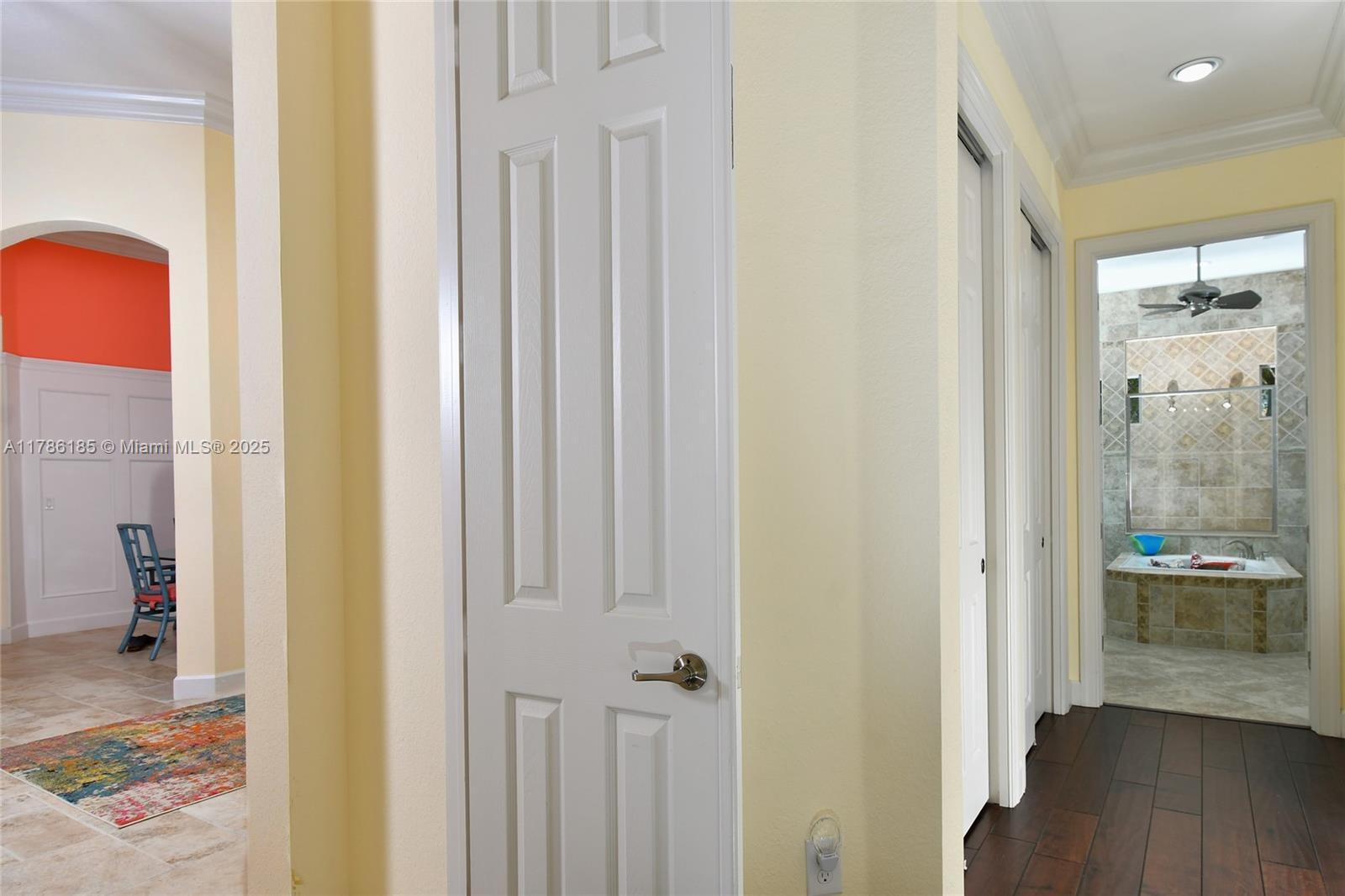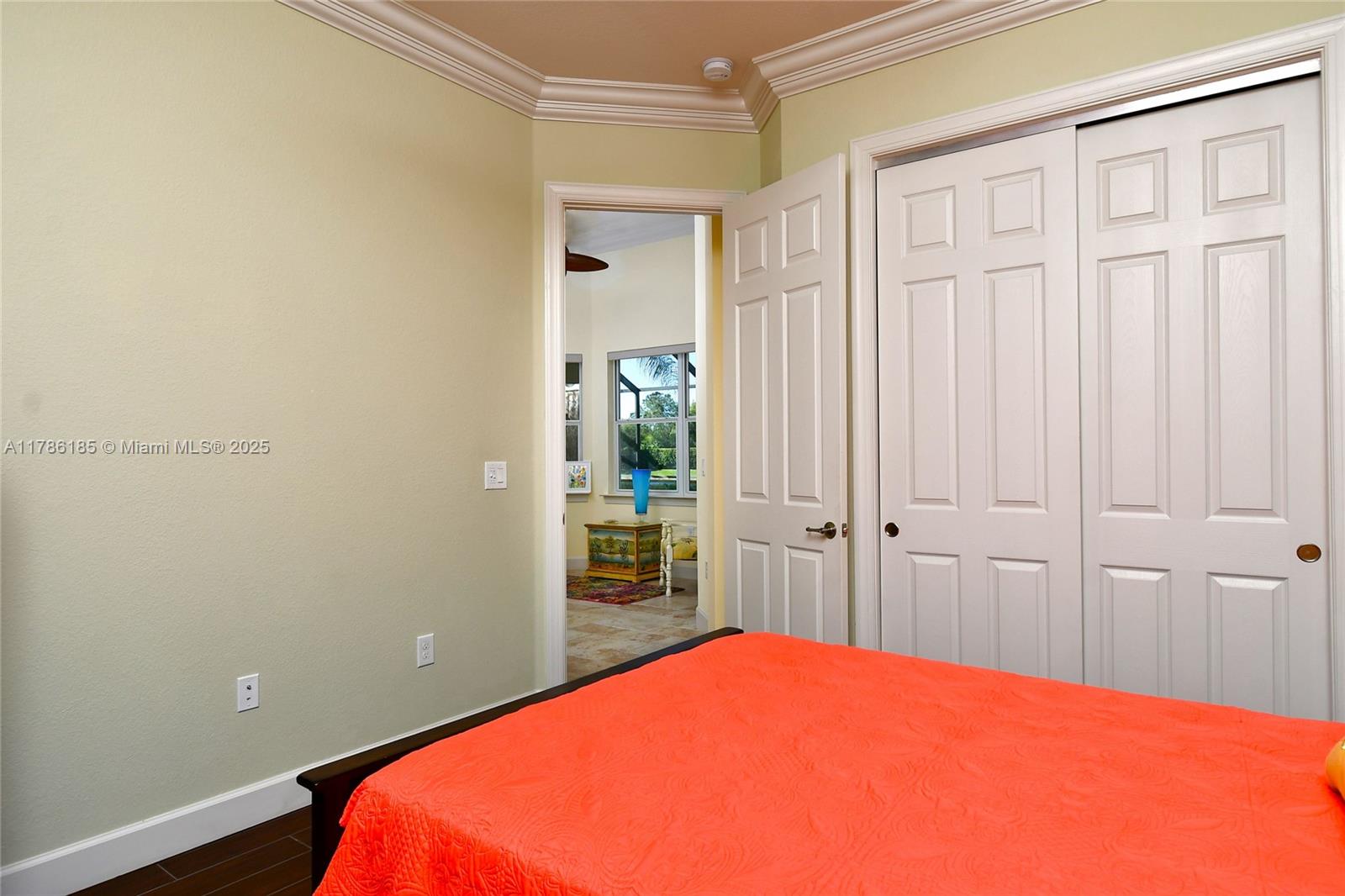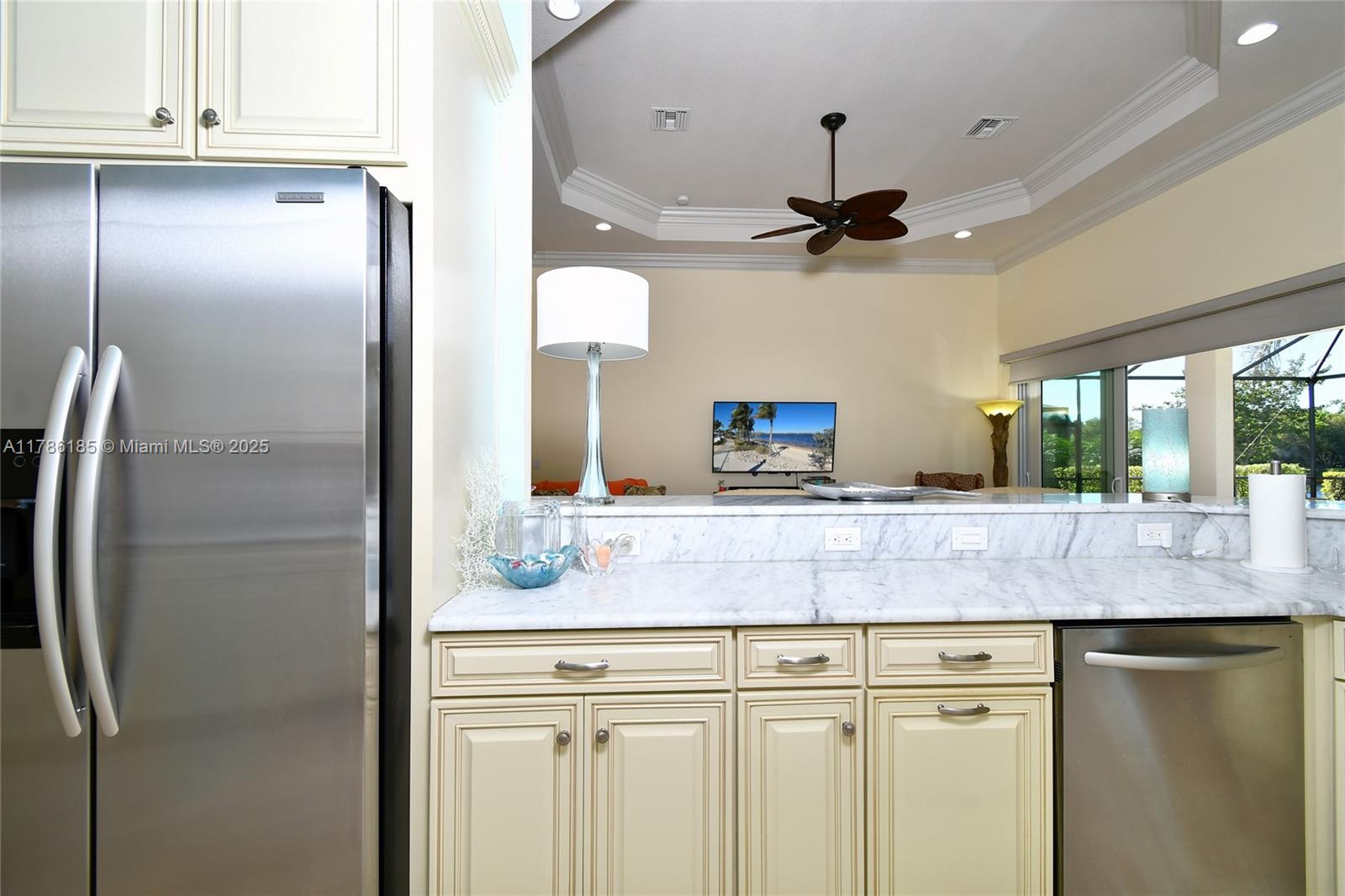 Upgrades galore! Kitchenaid appliances. Carrea marble countertops, hurricane impact windows throughout, custom cabinetry and a walk-in pantry. The great room is spacious thanks to the removal of the interior partition. Enjoy dinner on the oversized covered lanai by your solar heated saltwater pool and watch the sunset across the lake. The dramatic master suite opens to the lanai. The stunning wainscot dining room overlooks the newly landscaped garden. Upscale features include 12 ft. ceilings, tray ceilings, large crown molding, solid wood cabinetry, custom closet cabinetry in every closet, granite and wood floors with upgraded tiles, epoxy garage floor & extended garage. This is your dream home!