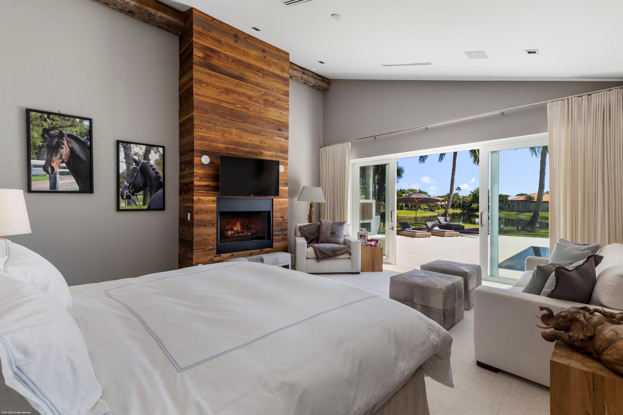 Stunningly remodeled lakefront home with expansive water views in Palm Beach Polo. The home boasts wood floors throughout, center-island kitchen with high-end appliances, and 300-year old Australian wood beams which accent the volume ceilings. Every bedroom has an in-suite bathroom and the den/office also has a full bathroom & closet which could be a 5th bedroom suite. The luxurious primary suite features water views, gas fireplace, dressing room, breakfast bar, spa like bathroom and outdoor showering courtyard. The expansive pool & patio area is perfect for entertaining with lounging areas, gas fireplace, BBQ & dining spaces. The garage has a mini-split air-conditioner & a second set of washers & dryers. If you're looking for that move-in ready home, this is the one!