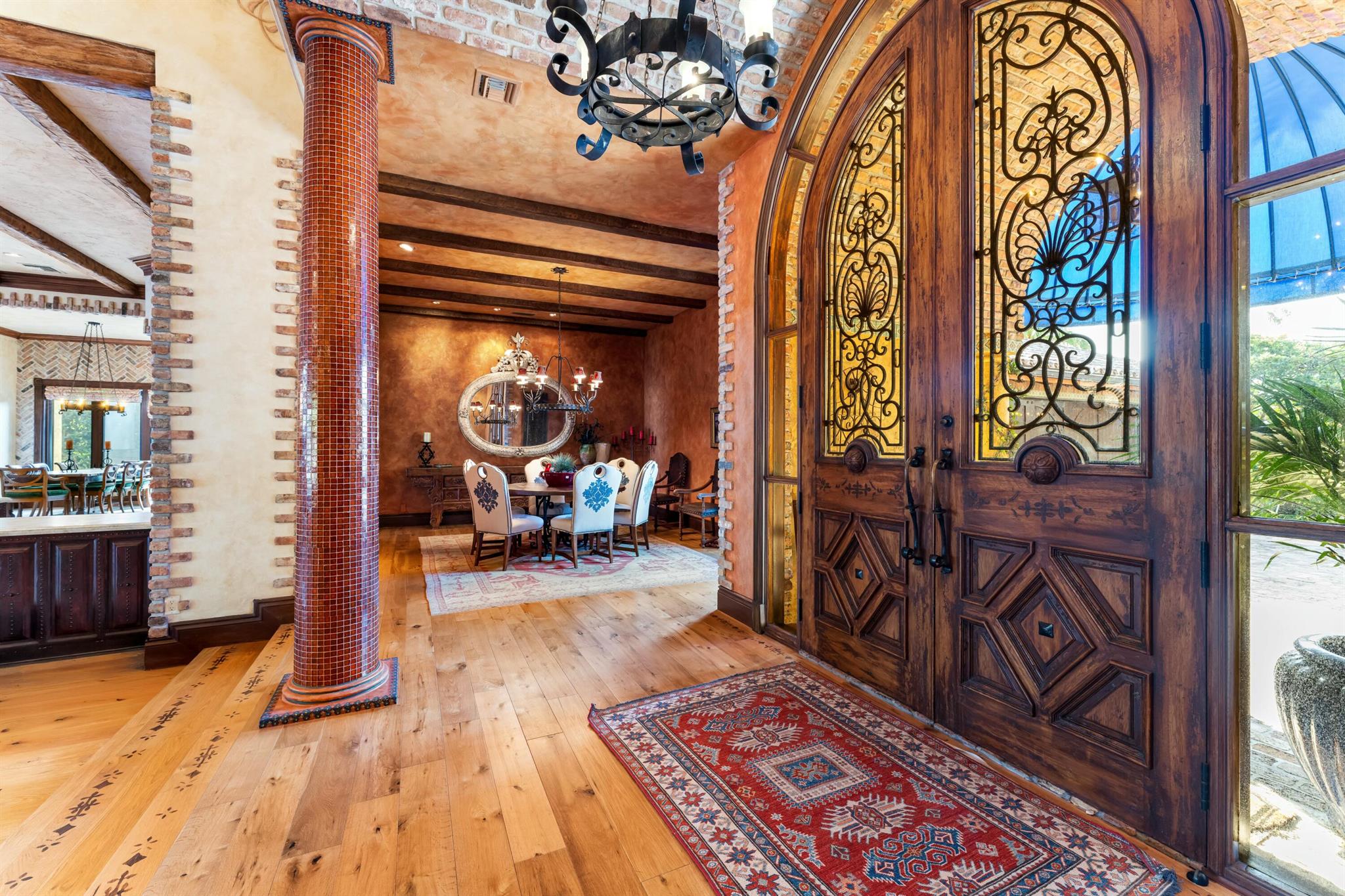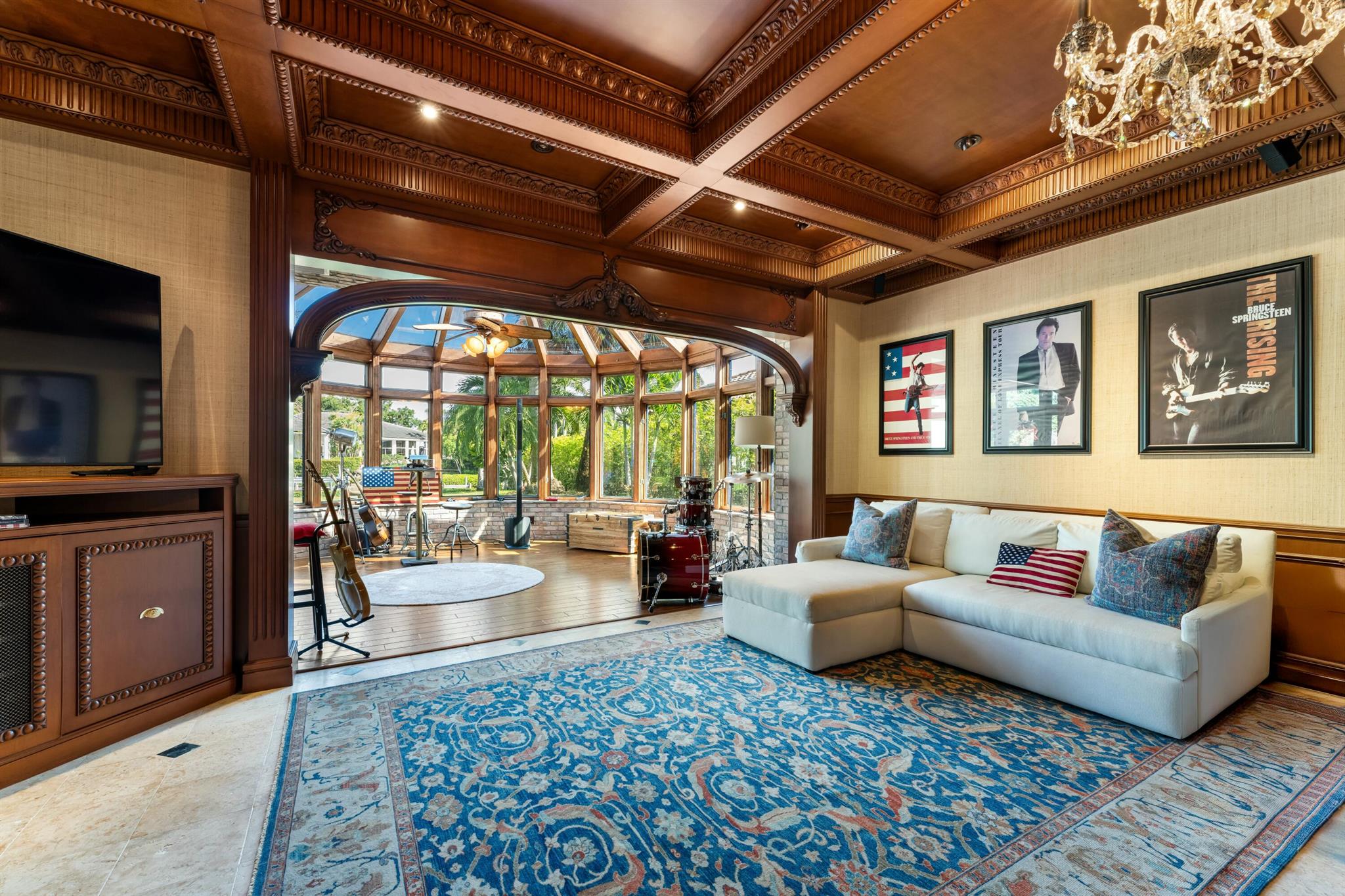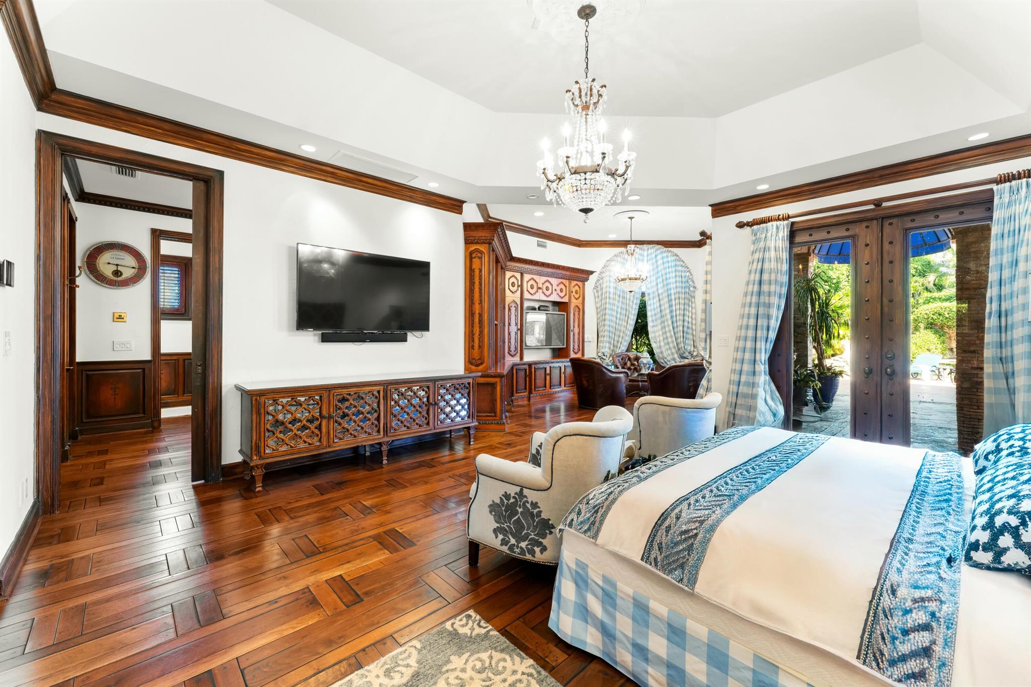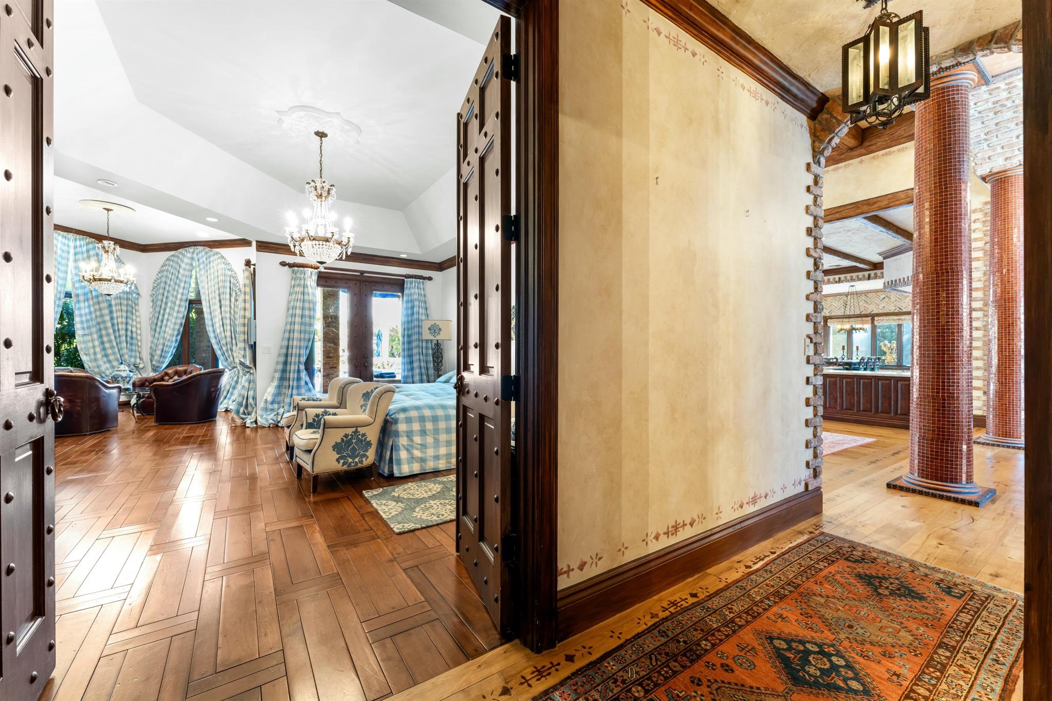 Located in the prestigious Frenchman's Creek Golf Club, this exceptional Old Spanish-style estate combines timeless elegance with modern comfort. Situated on a 30,000 sq ft lot with 107 feet of navigable waterfront and a private boat lift, this is a rare opportunity for boaters and luxury seekers alike.This single-story residence offers 7,840 total square feet, with 5,539 sq ft under air. The home features 5 bedrooms, 5 full bathrooms, and a powder room. One of the bedrooms is a detached guest house with stunning views of the water--ideal for guests seeking privacy and tranquility. The primary suite includes two private offices, creating a versatile space for work or relaxation.The interior boasts authentic Old Spanish character with expansive ceilings with pecky cypress beams.