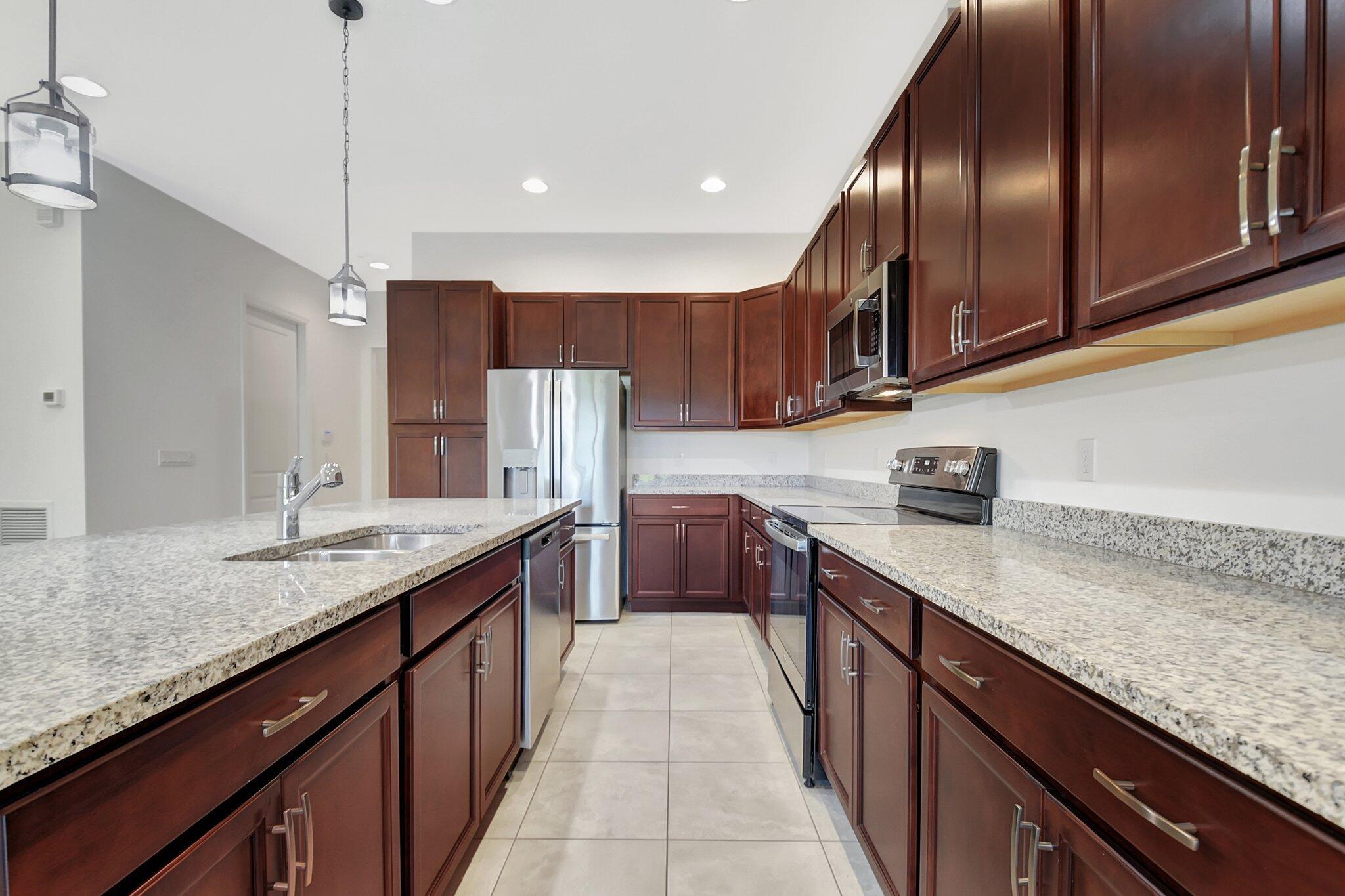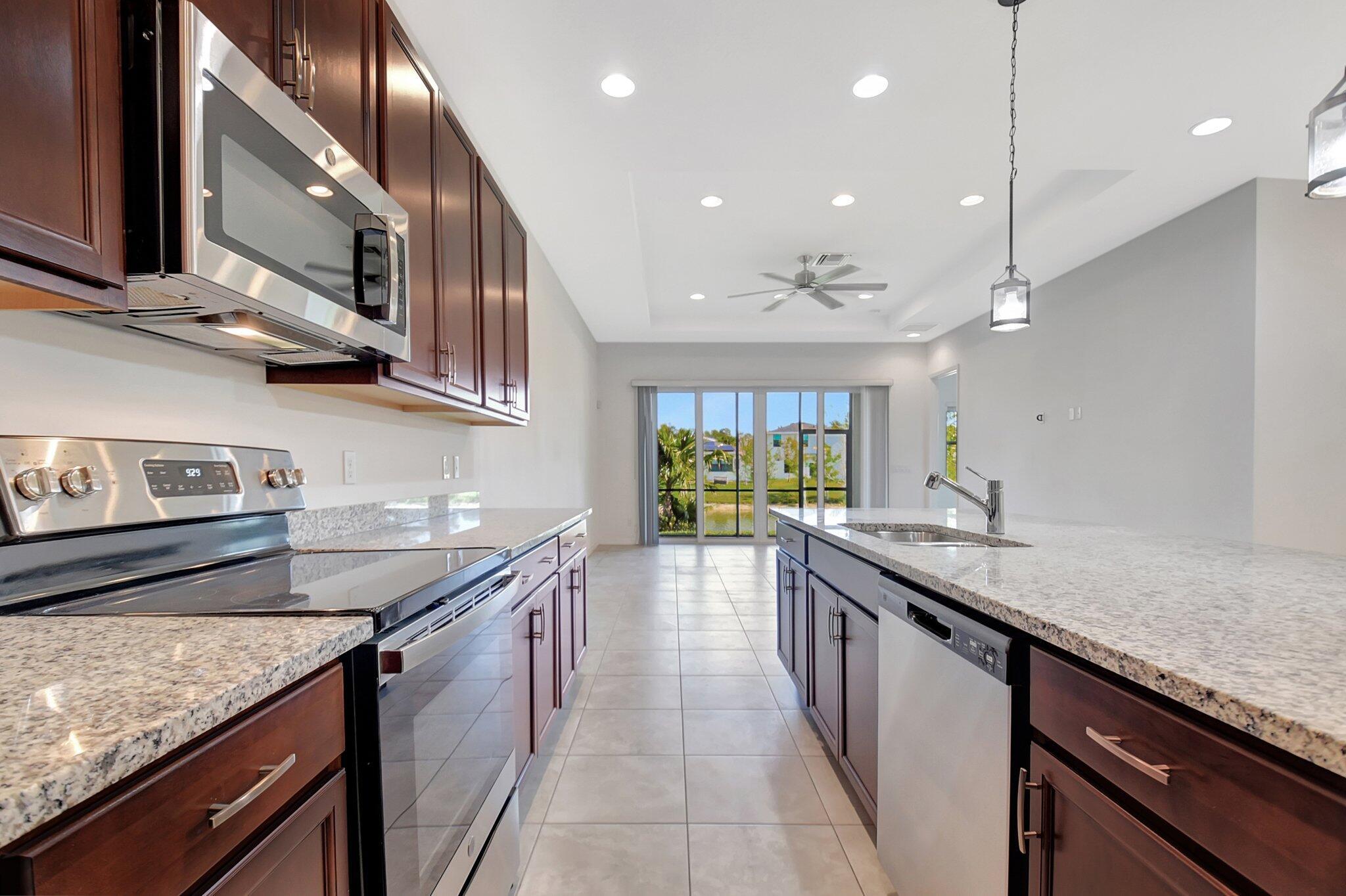 This Waterfront, 3 way split bedroom plan, 3 full bathroom home is clean and ready for you to move in today! Modern styling meets Spanish Main flair in this 2021 built home. Granite Countertops, Stainless Steel Appliances, Designer Fans and Lighting and High End Manufactured Flooring give this home an air of Luxury. CBS Construction and Impact Windows lend to its sense of security. Located on a serene lake allowing you to enjoy the natural beauty of the surroundings.