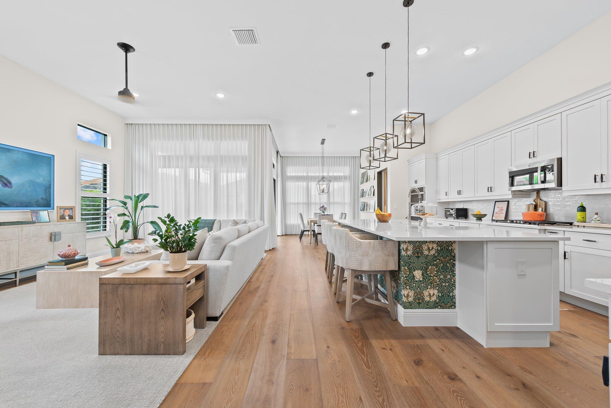 Welcome to the stunning and professionally decorated Upgraded Cerelia Model located at 8944 Bastille Circle East in the highly sought-after Parkland, FL. This exquisite single-story single-family home boasts 2,300 square feet of luxurious living space designed for comfort and style, with 2 bedrooms plus Den, 2.5 bathrooms, and a host of premium features. Upon entry, you'll be captivated by the 9'' wide plank engineered wood flooring that flows seamlessly throughout the home. The impact windows and doors not only offer security but also allow for an abundance of natural light to fill the space. Central to this home is the gourmet kitchen, where culinary enthusiasts will appreciate the white shaker kitchen cabinets, quartz countertops, and top-of-the-line gas cooktop.