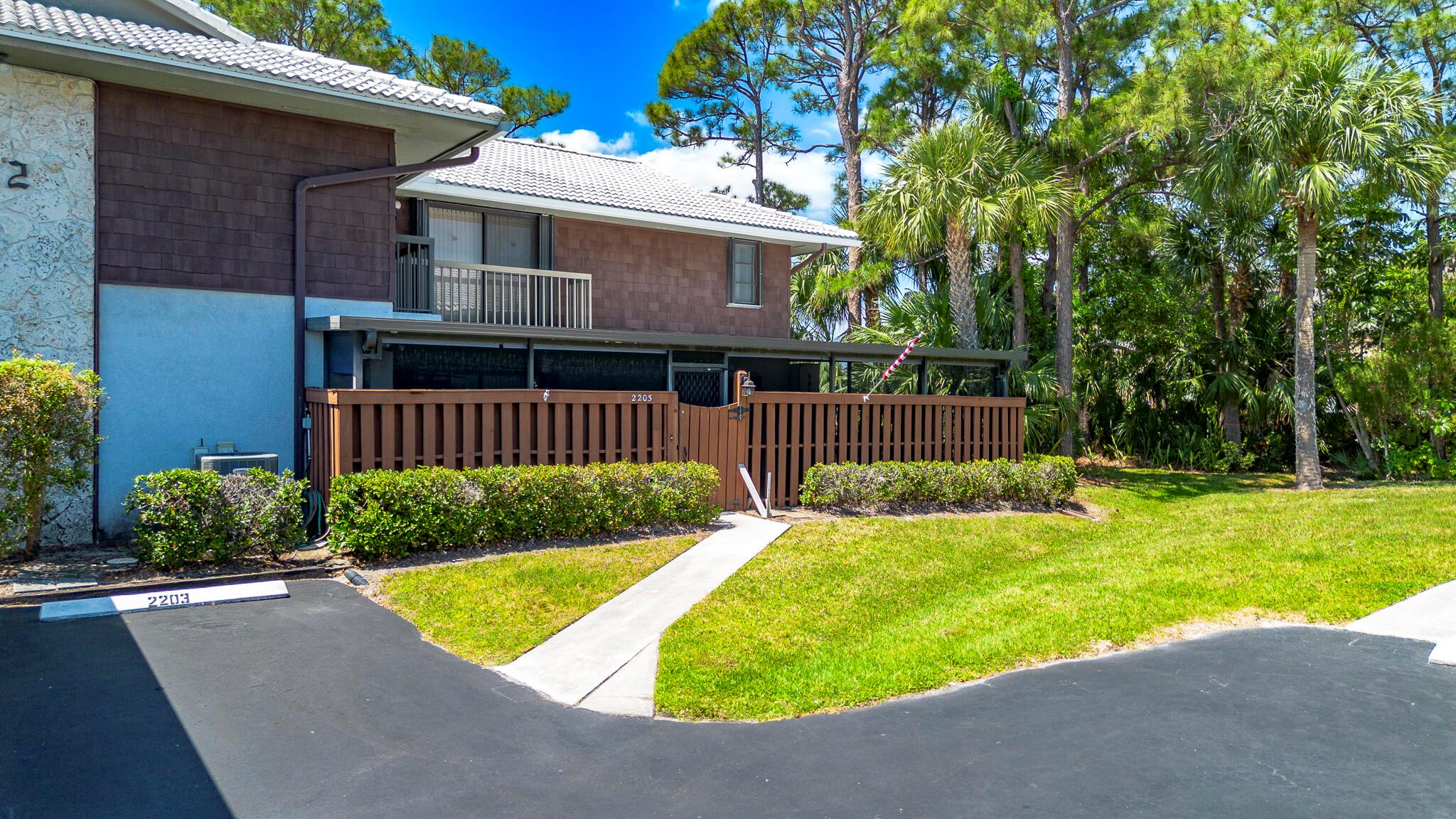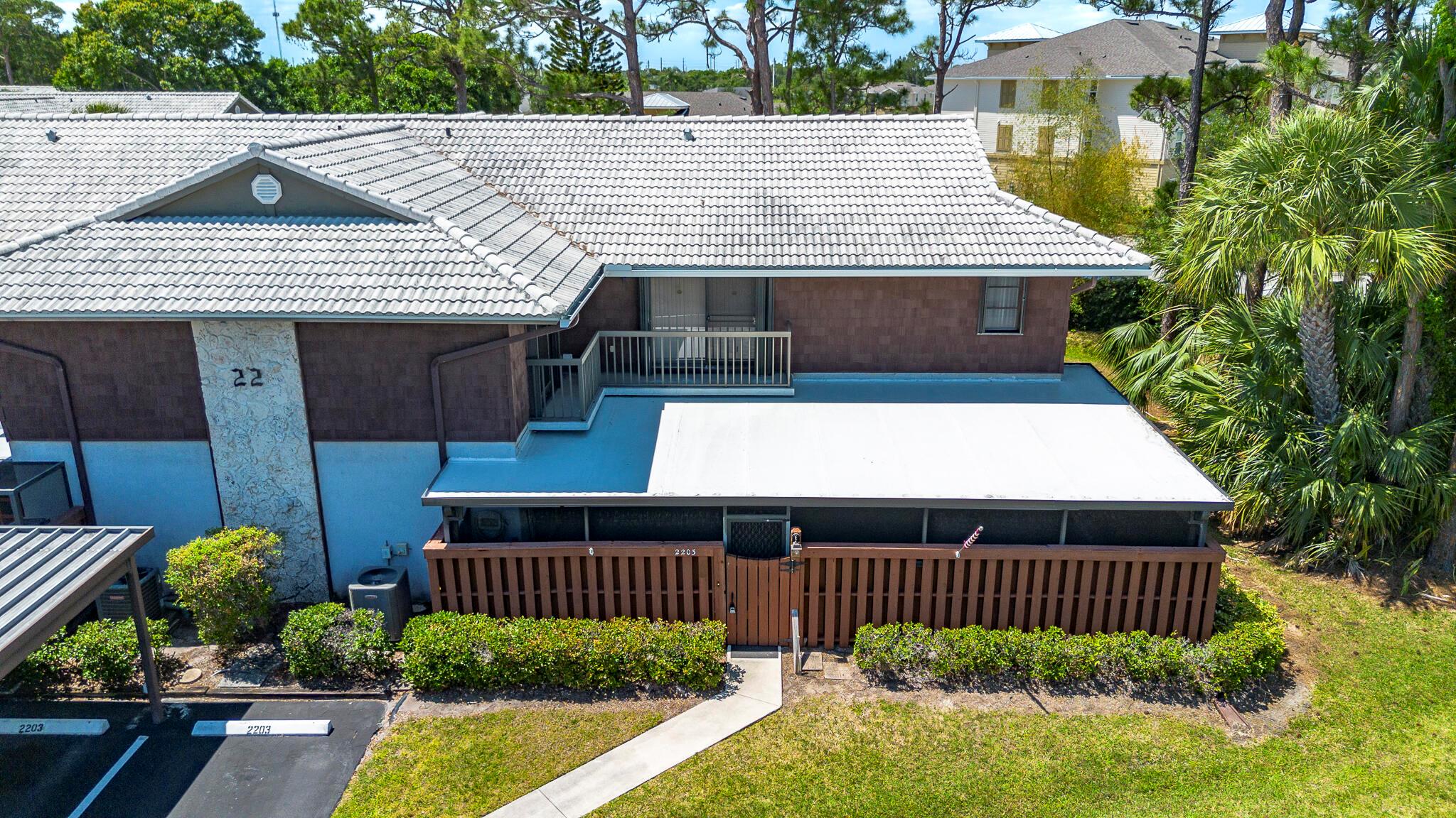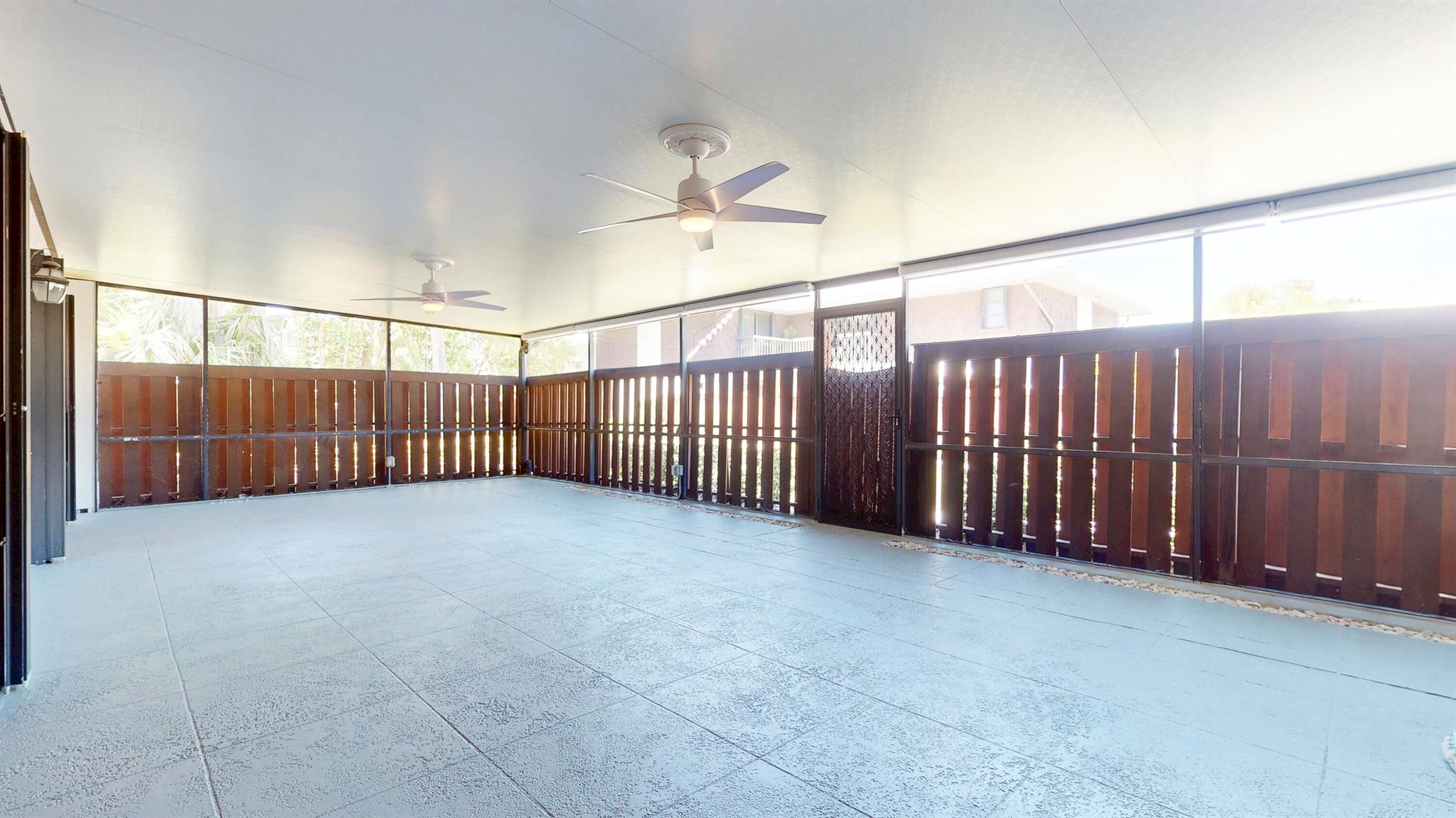 Price Drop! Beautiful End-Unit Townhome in Sought-After Camelot Gardens! This unit is the only one for sale with an additional main floor den which easily converts to a 3rd bedroom This spacious 2-bedroom, 2.5-bath townhome offers the ideal blend of comfort, privacy, and low-maintenance living. Step inside to discover natural light, vaulted ceilings, updated kitchen appliances, and a breakfast bar. Multiple sliding doors lead to a massive screened and covered lanai, ideal for entertaining or enjoying Florida's indoor-outdoor lifestyle year-round. Upstairs, you'll find two generously sized ensuite bedrooms each with balcony access and accordion shutters for storm protection. The primary suite boasts a walk-in closet and private bath, while the