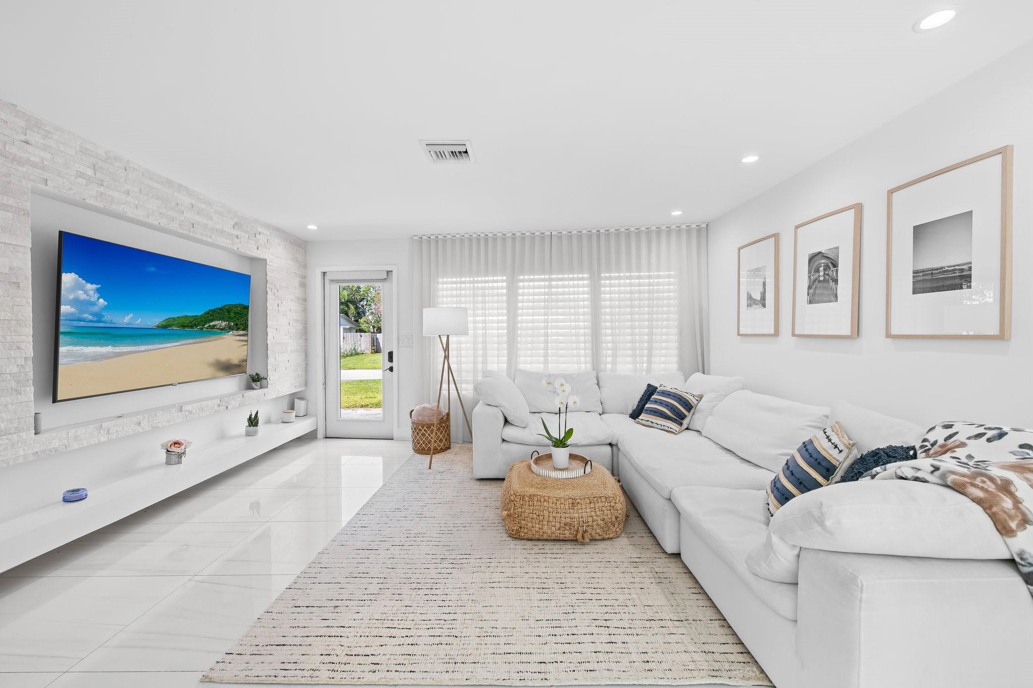Stunning fully renovated two bed, two bath home in Pompano Beach! Upgraded top to bottom with high-end finishes, this home features a new roof, updated electrical and plumbing, impact windows, fresh paint, LED lighting, and sleek 24x48 Italian porcelain tile throughout. The chef’s kitchen includes custom cabinets, quartz counters, stainless steel appliances, and a built-in wine cooler. Both bathrooms are beautifully redone with quartz and modern finishes. Custom built-ins in both closets offer luxury and function. Enjoy a maintenance-free turfed backyard, mature landscaping, and a sparkling pool—your private resort-style oasis. This home is centrally located in Pompano Beach giving easy access to all restaurants, shops, beaches and highways.